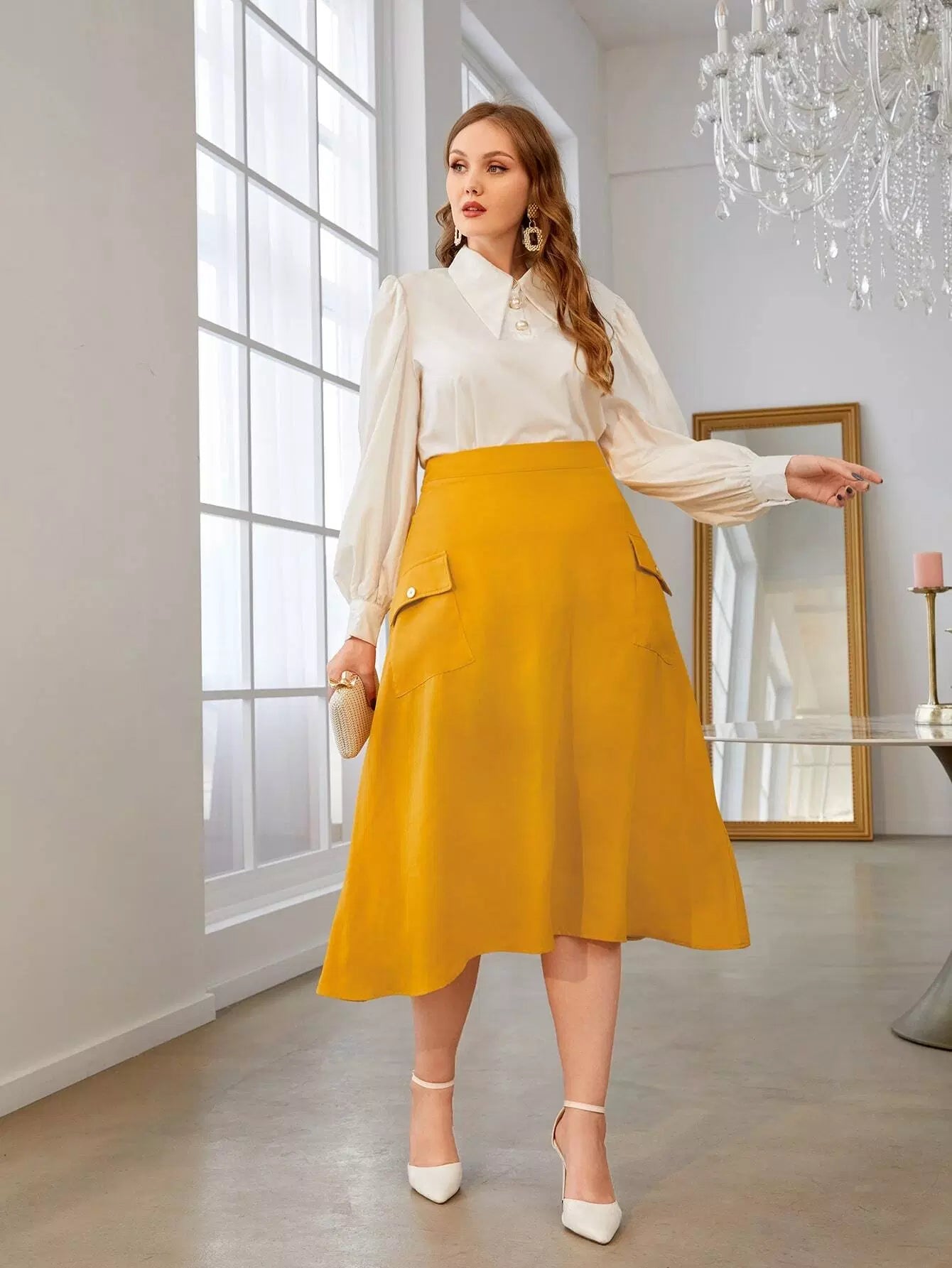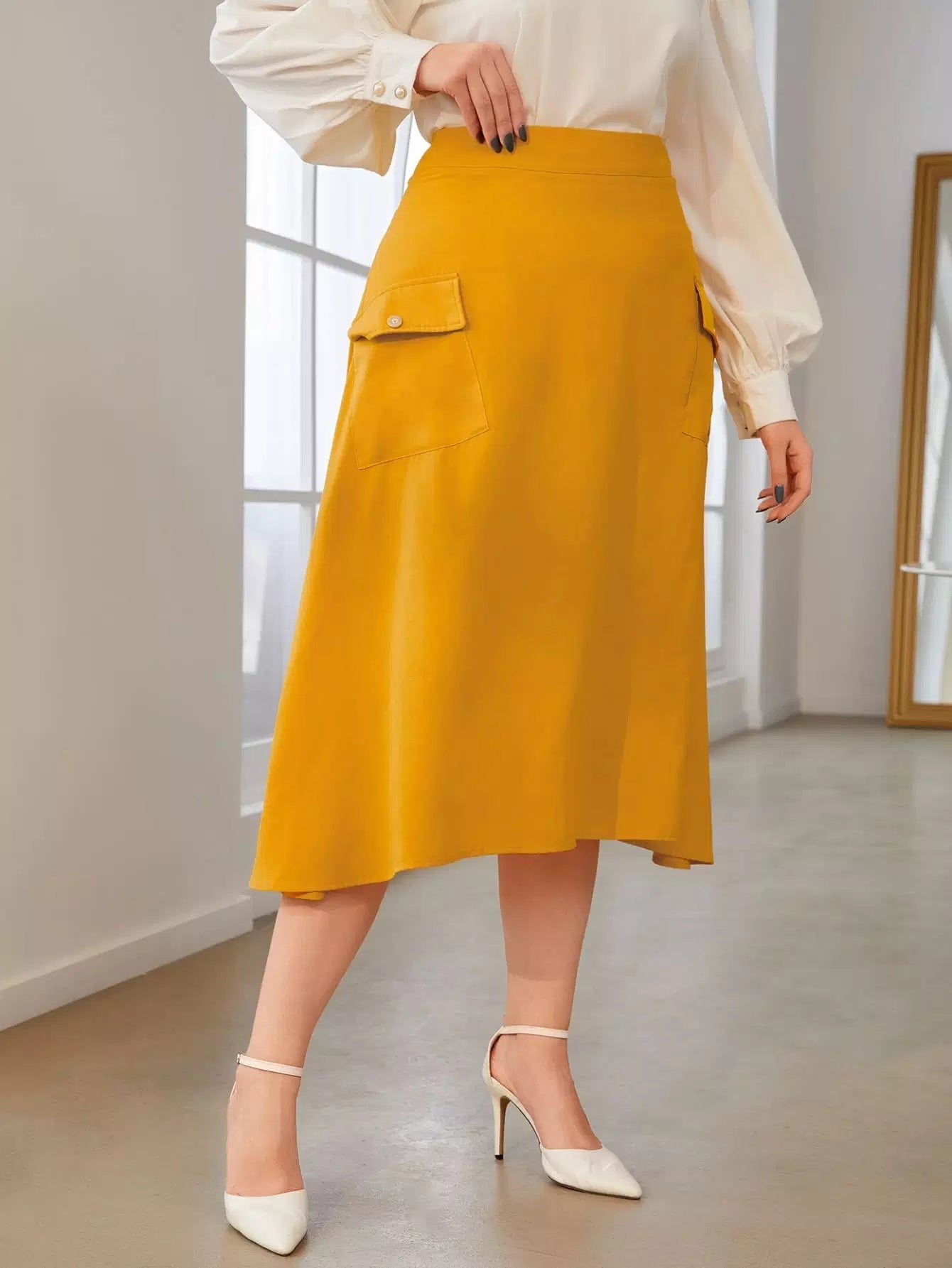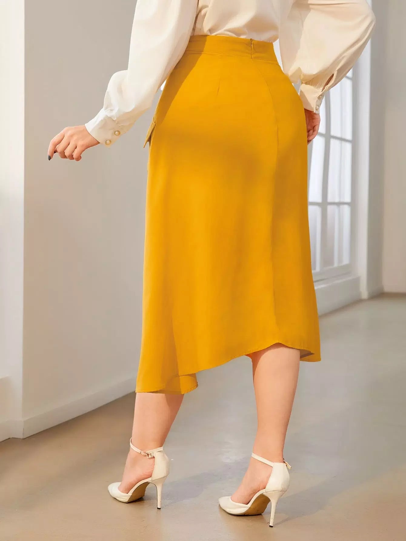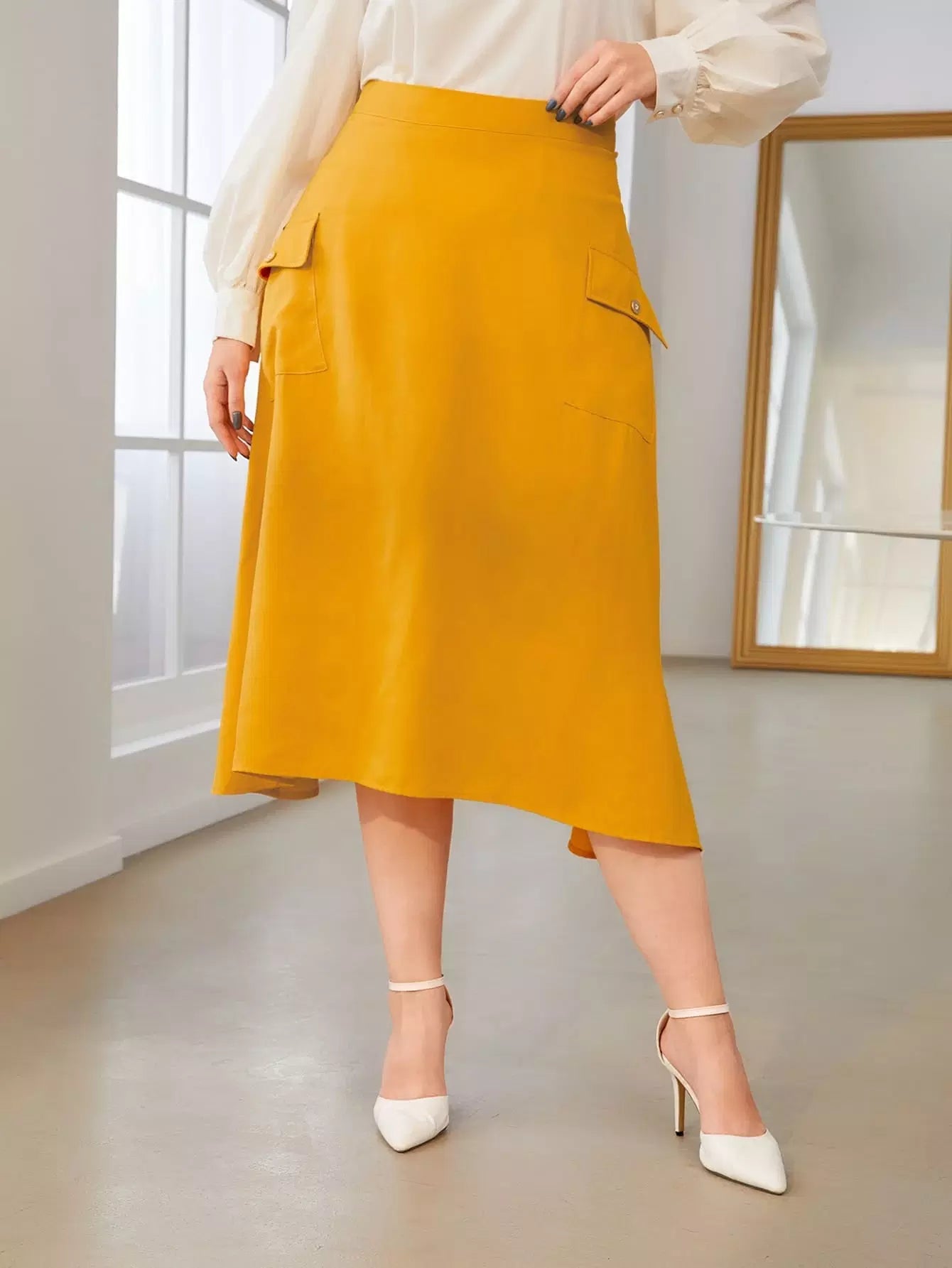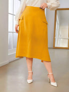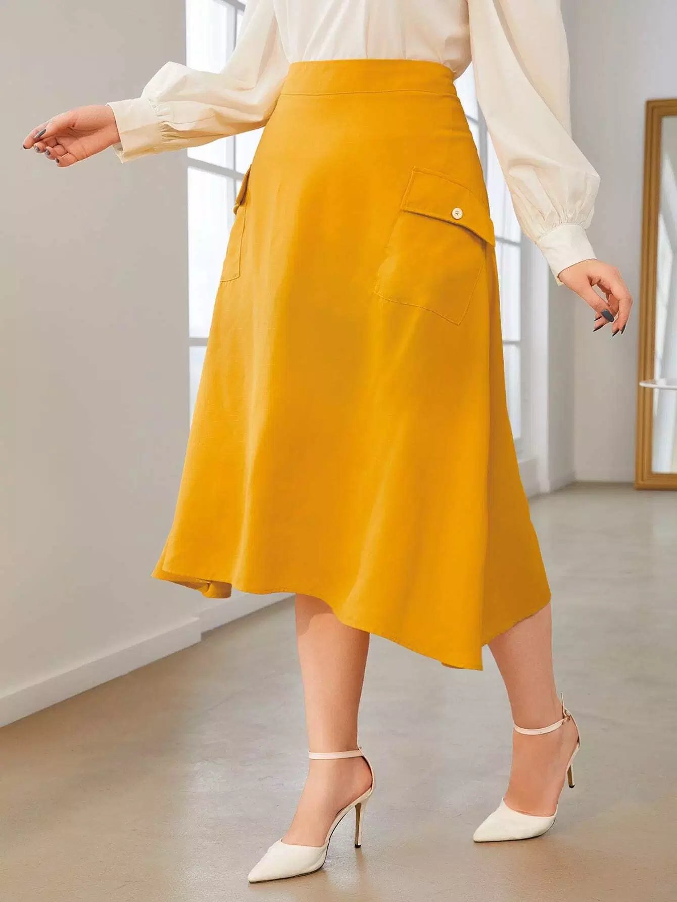 تنورة بحافة غير متماثلة ذات جيب بغطاء بلاس زائد