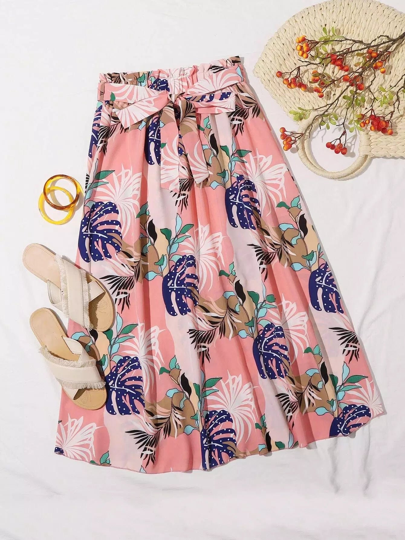 نحيف - مقاس كبير الأزهار طباعة مربوط تنورة