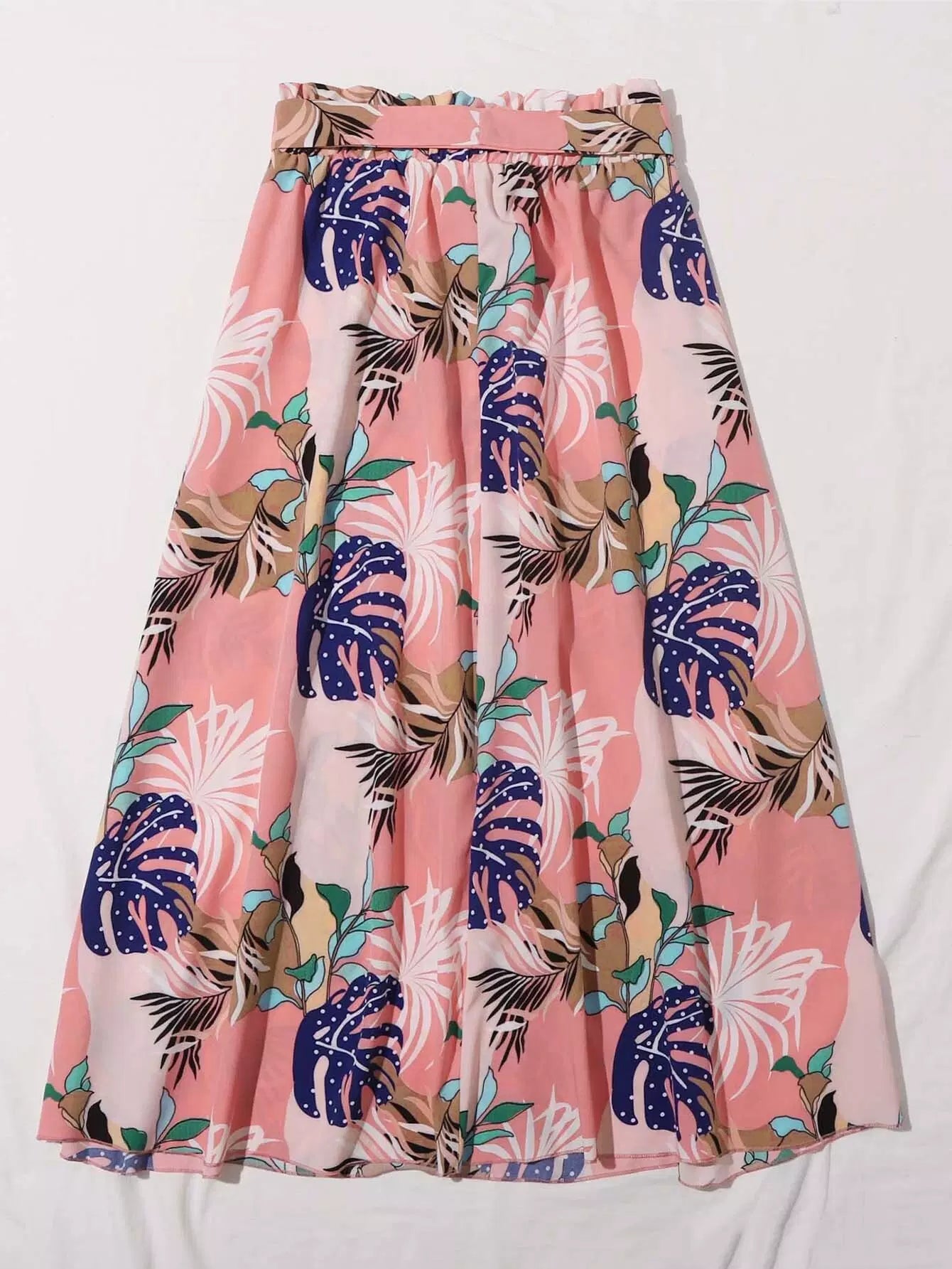 بالإضافة إلى تنورة بطبعات الأزهار بدون حزام