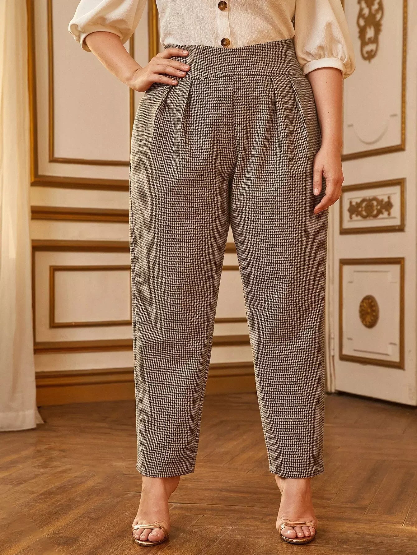 بنطلون بطية مطوي بطيات كبيرة مطوية