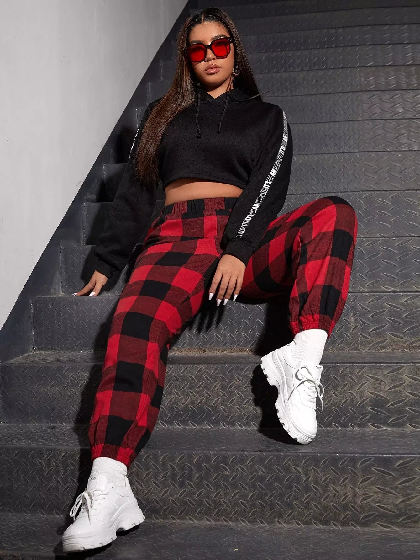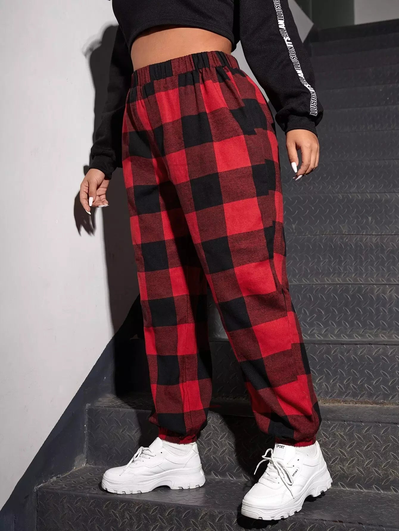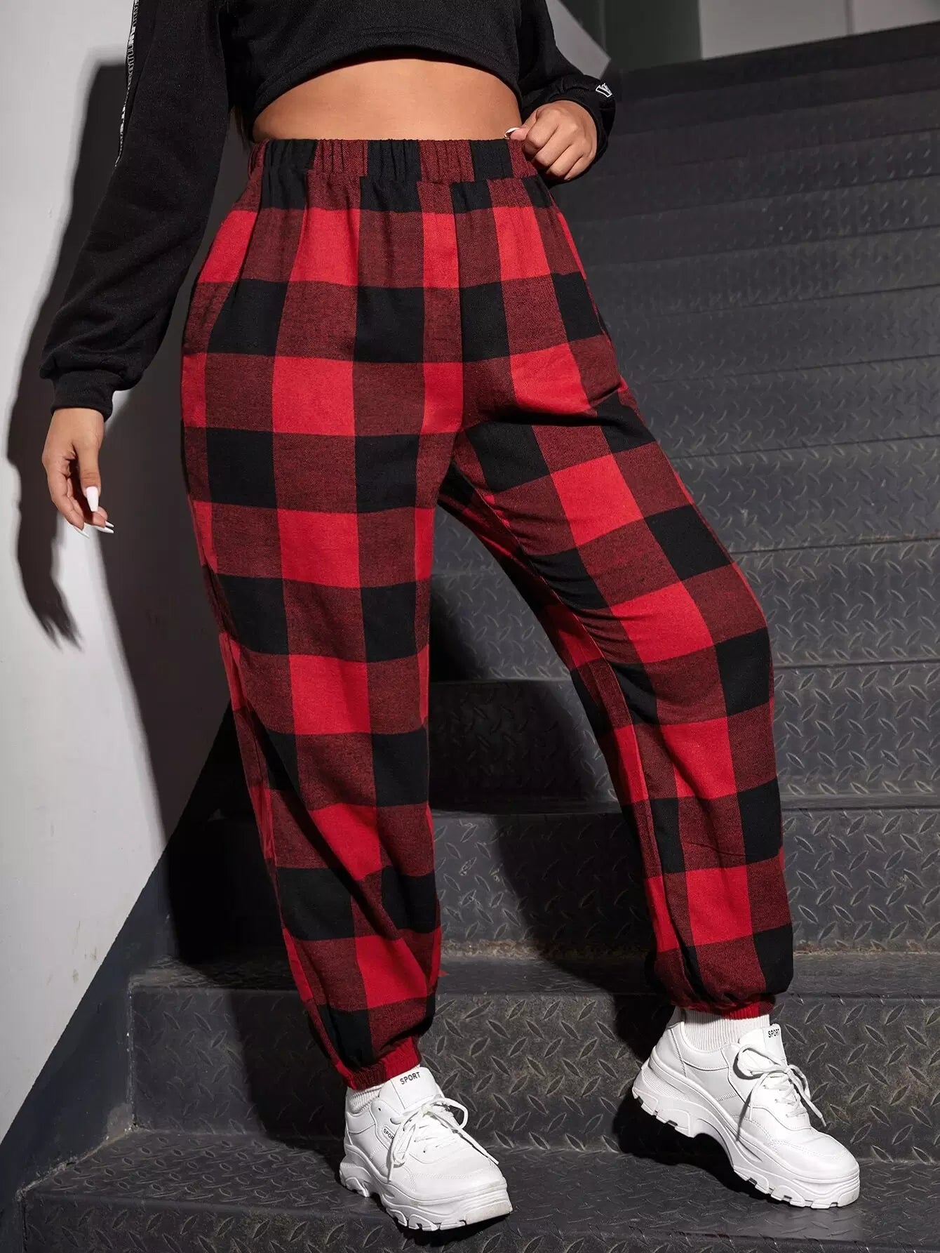 بنطلون ضيق بخصر عالٍ من القماش القطني الزائد
