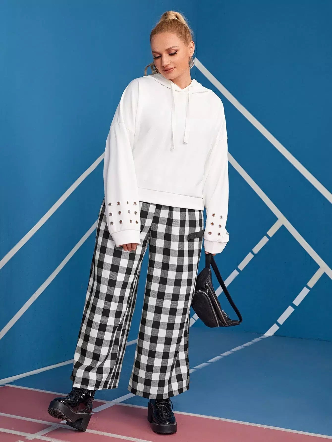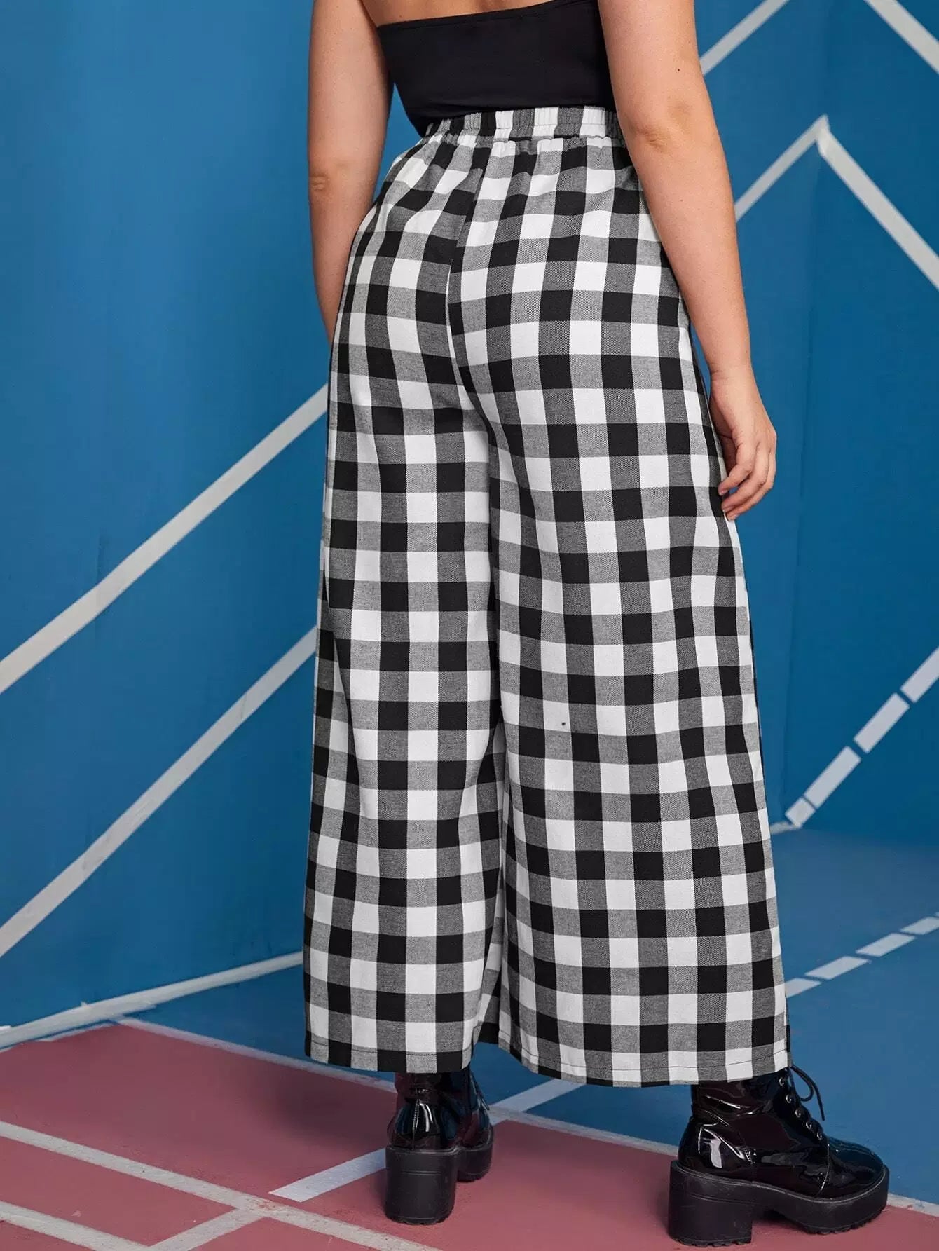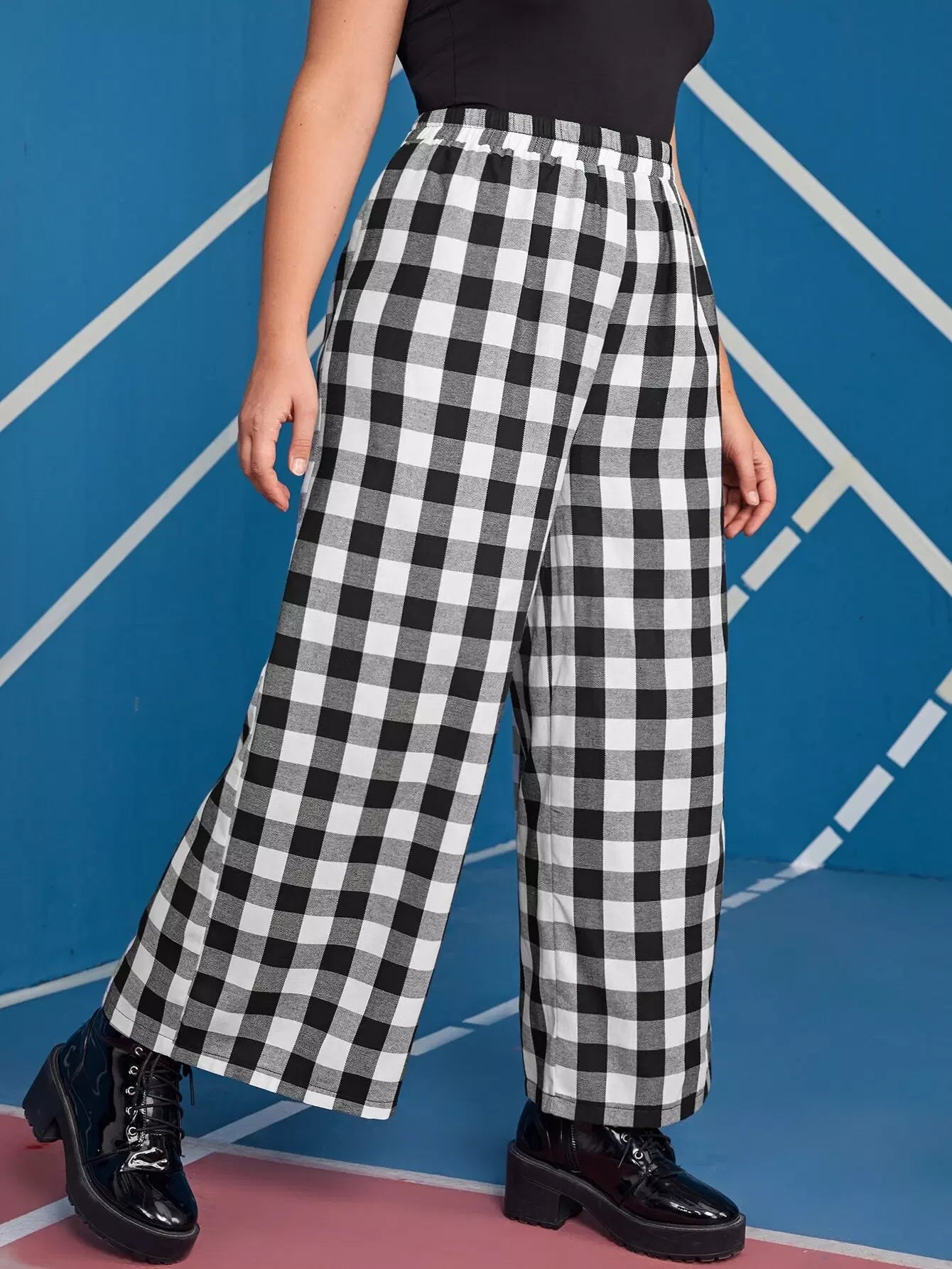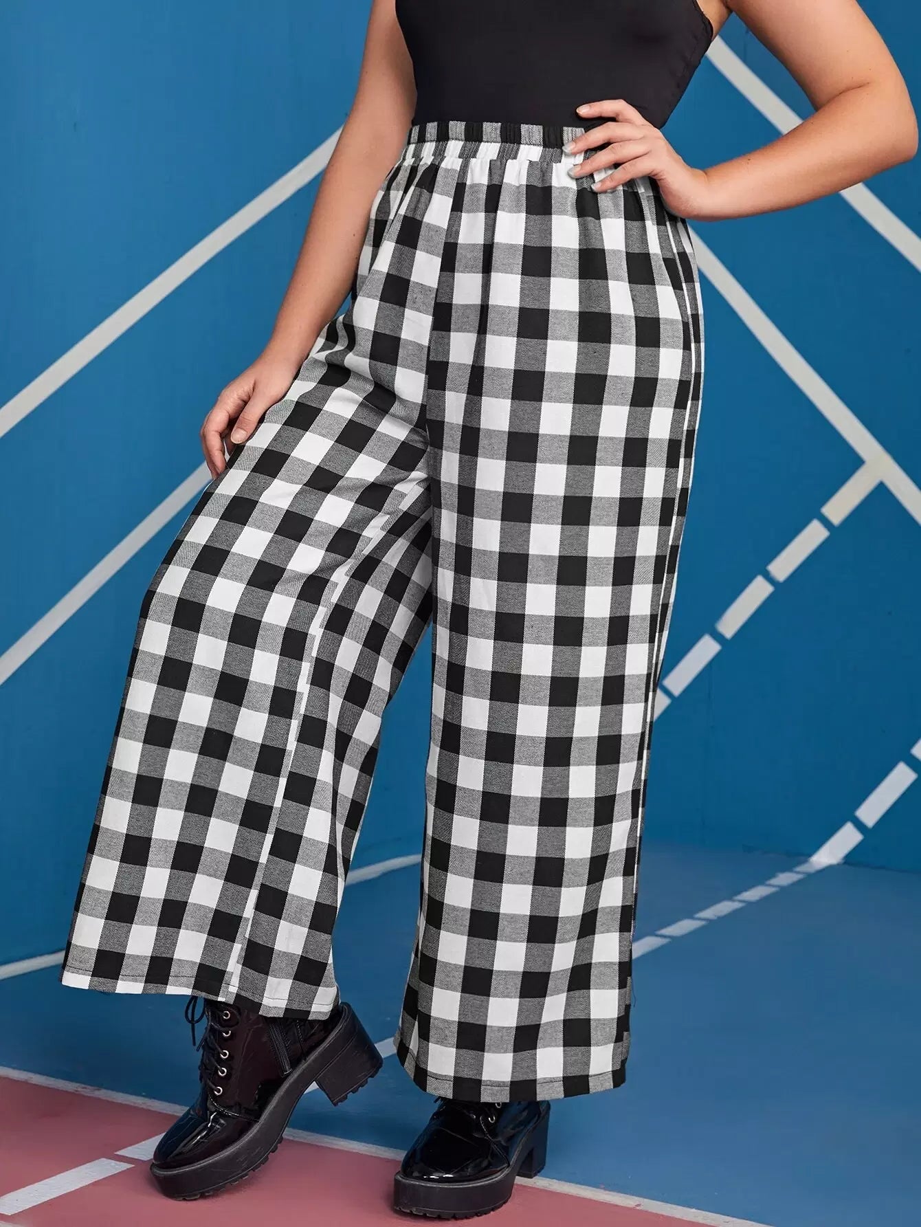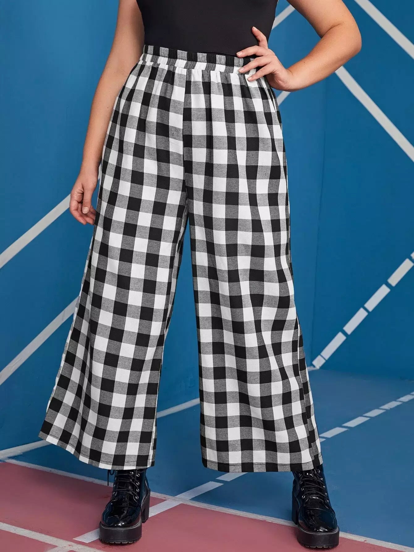 نحيف - مقاس كبير بنطال واسع الساق بطبعات جينغهام