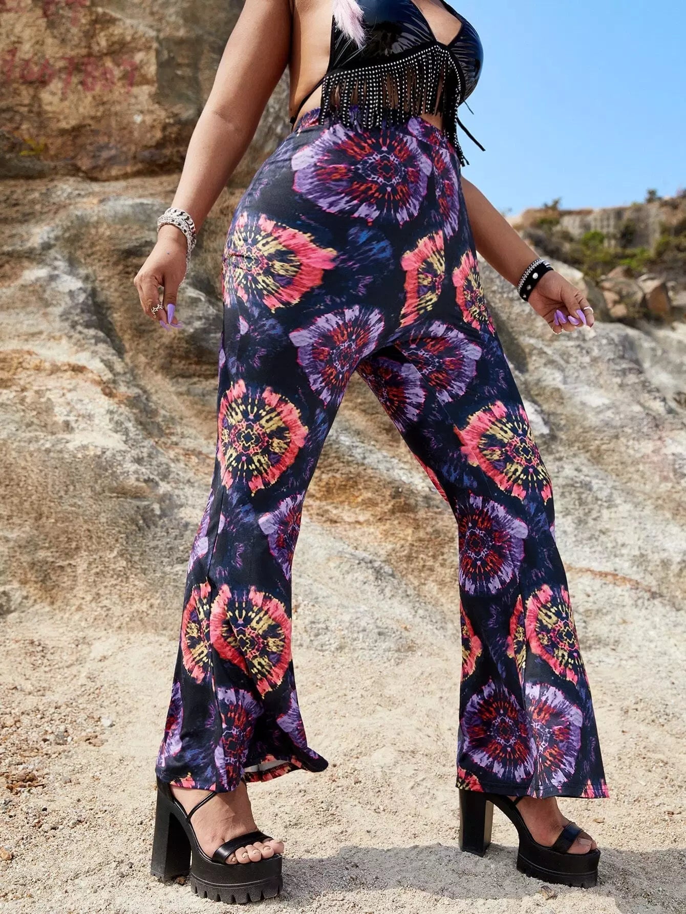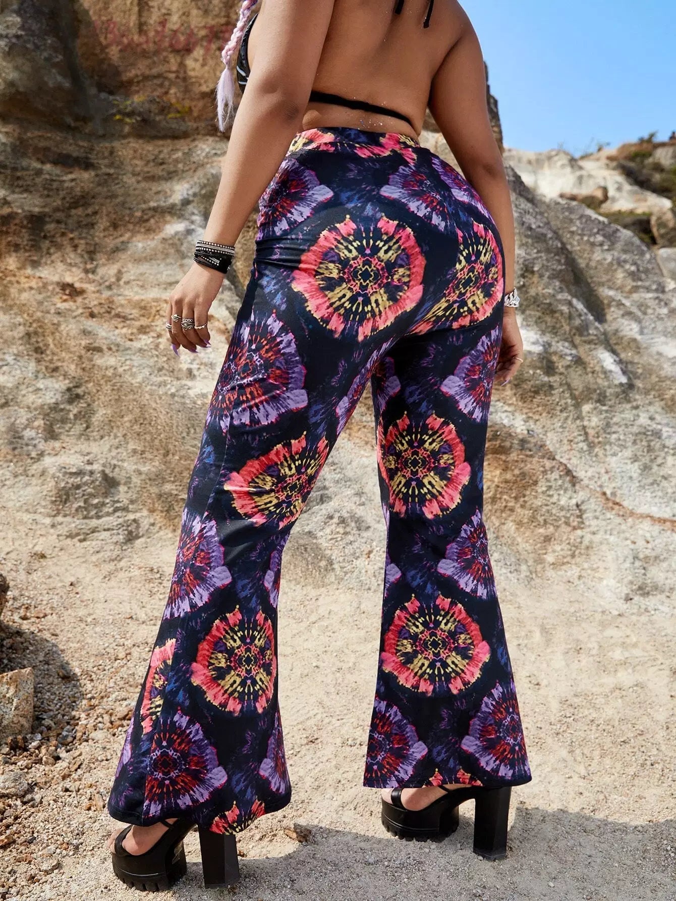 بنطلون واسع الساقين بطبعة جرافيك بلس