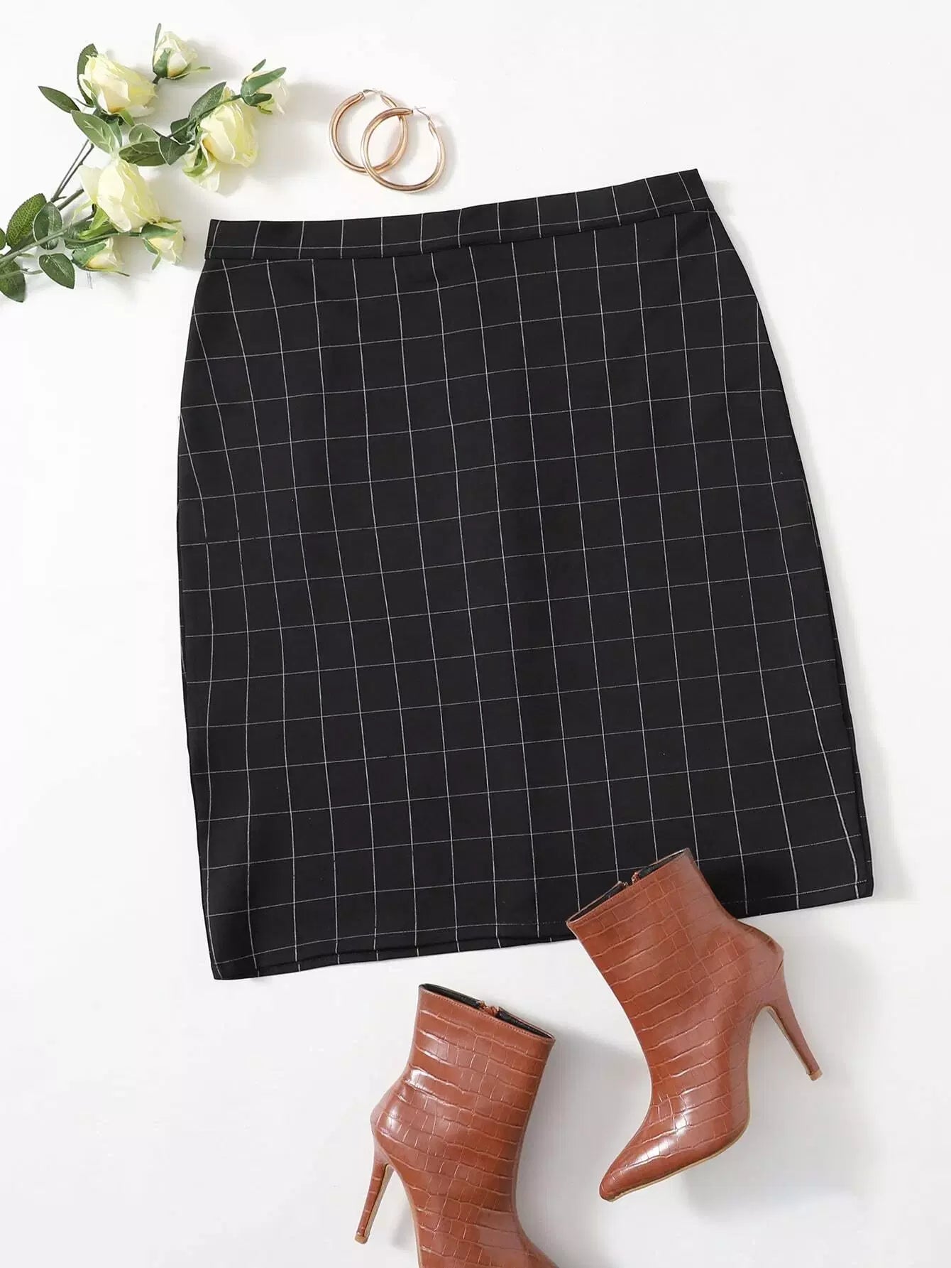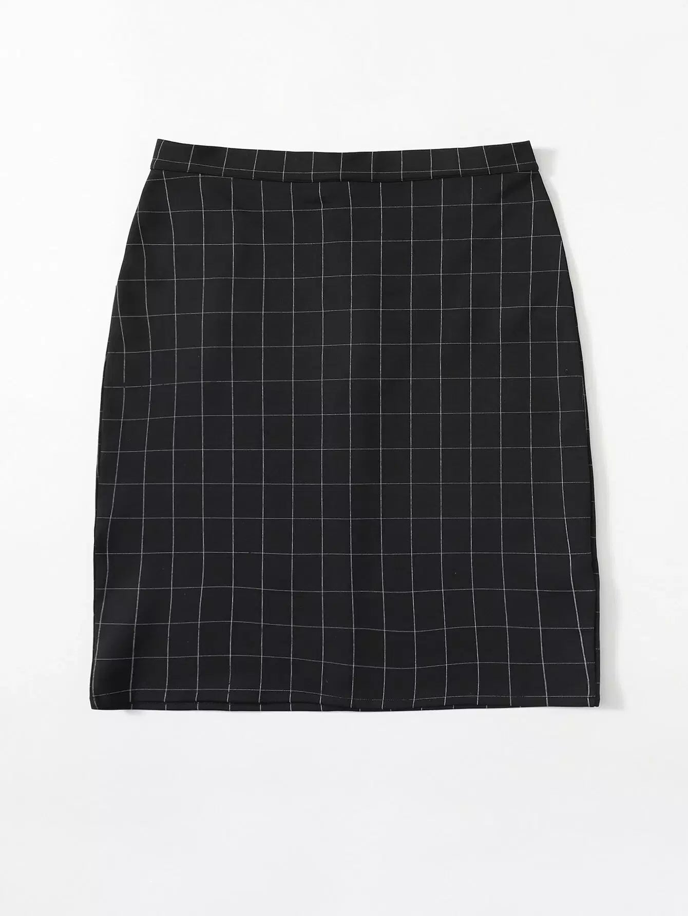 نحيف - مقاس كبير شبكة الرمز الخلفي تنورة مستقيمة