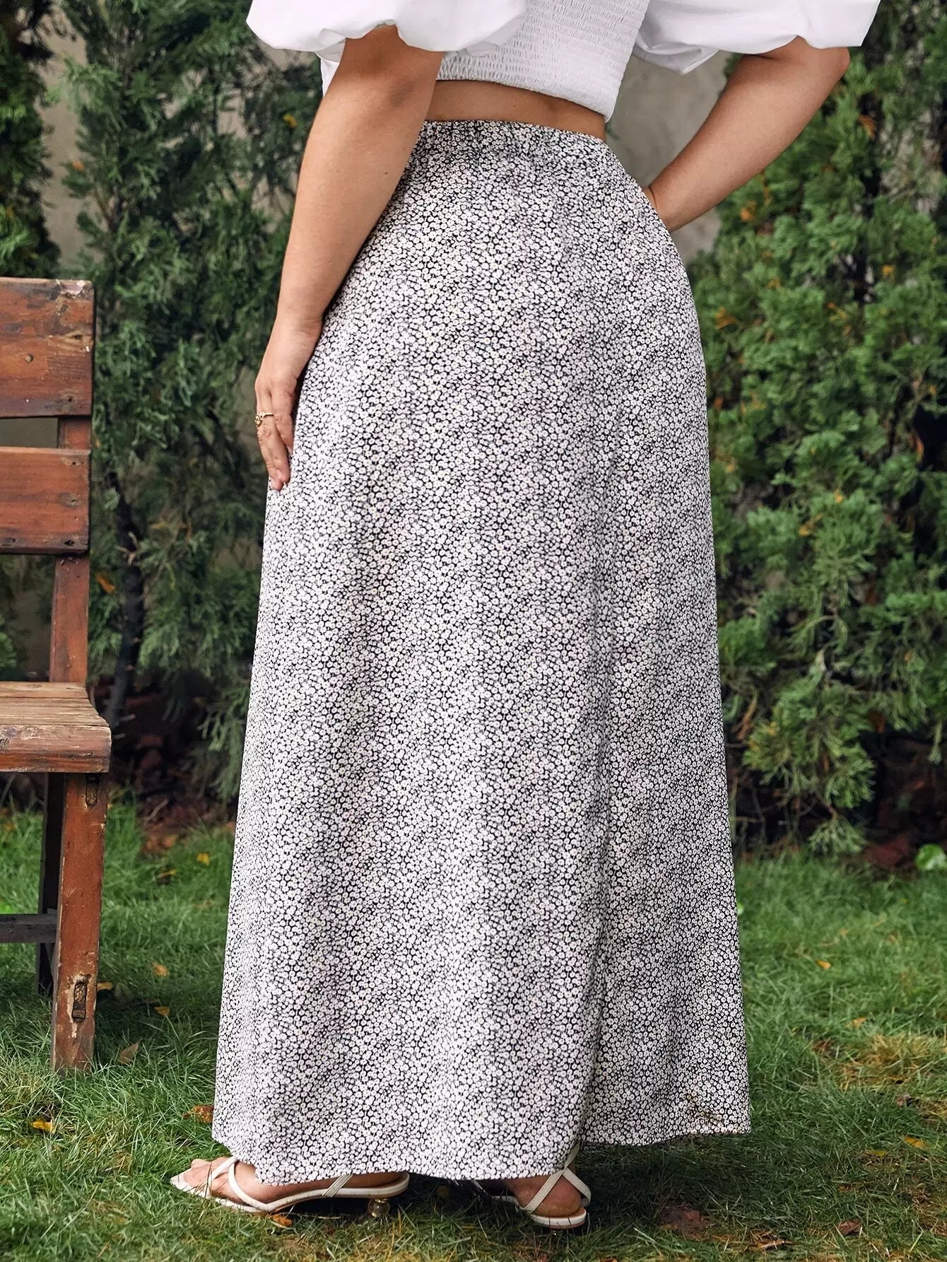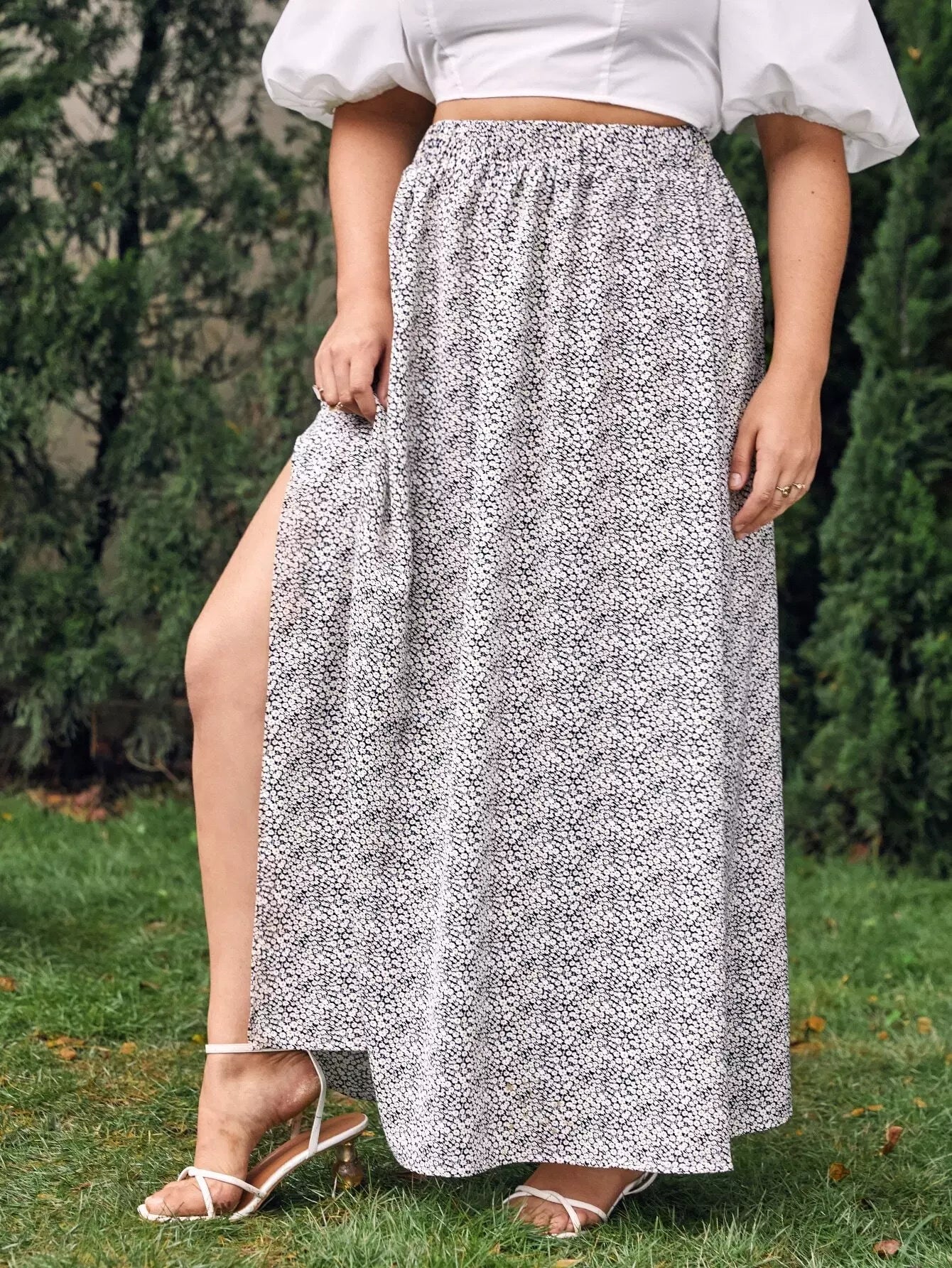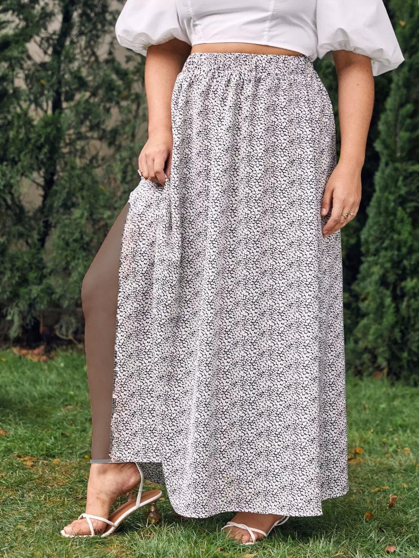 تنورة ديتسي مزينة بالورود ذات فتحة عالية زائدة