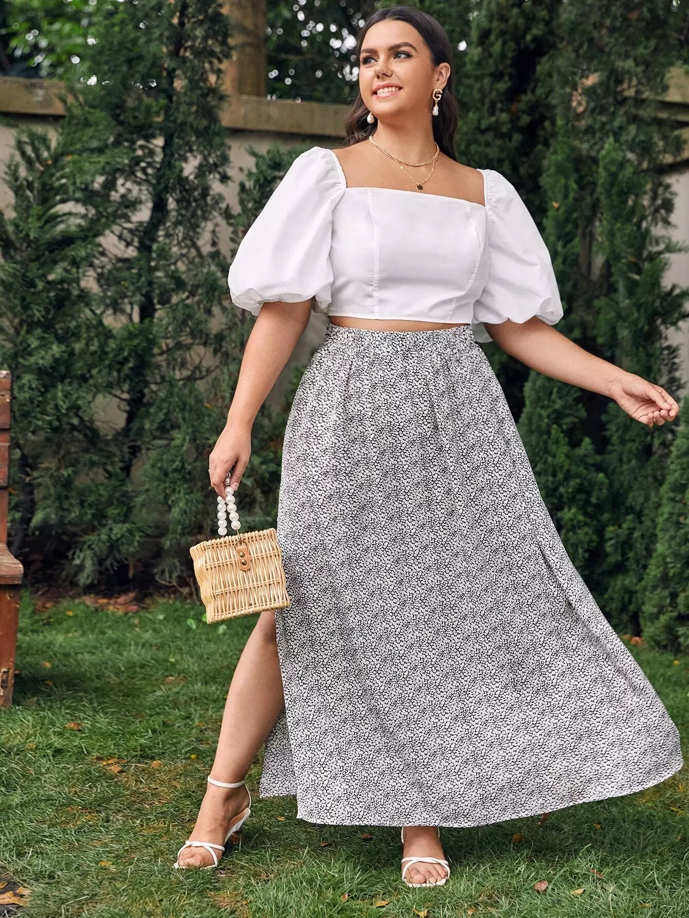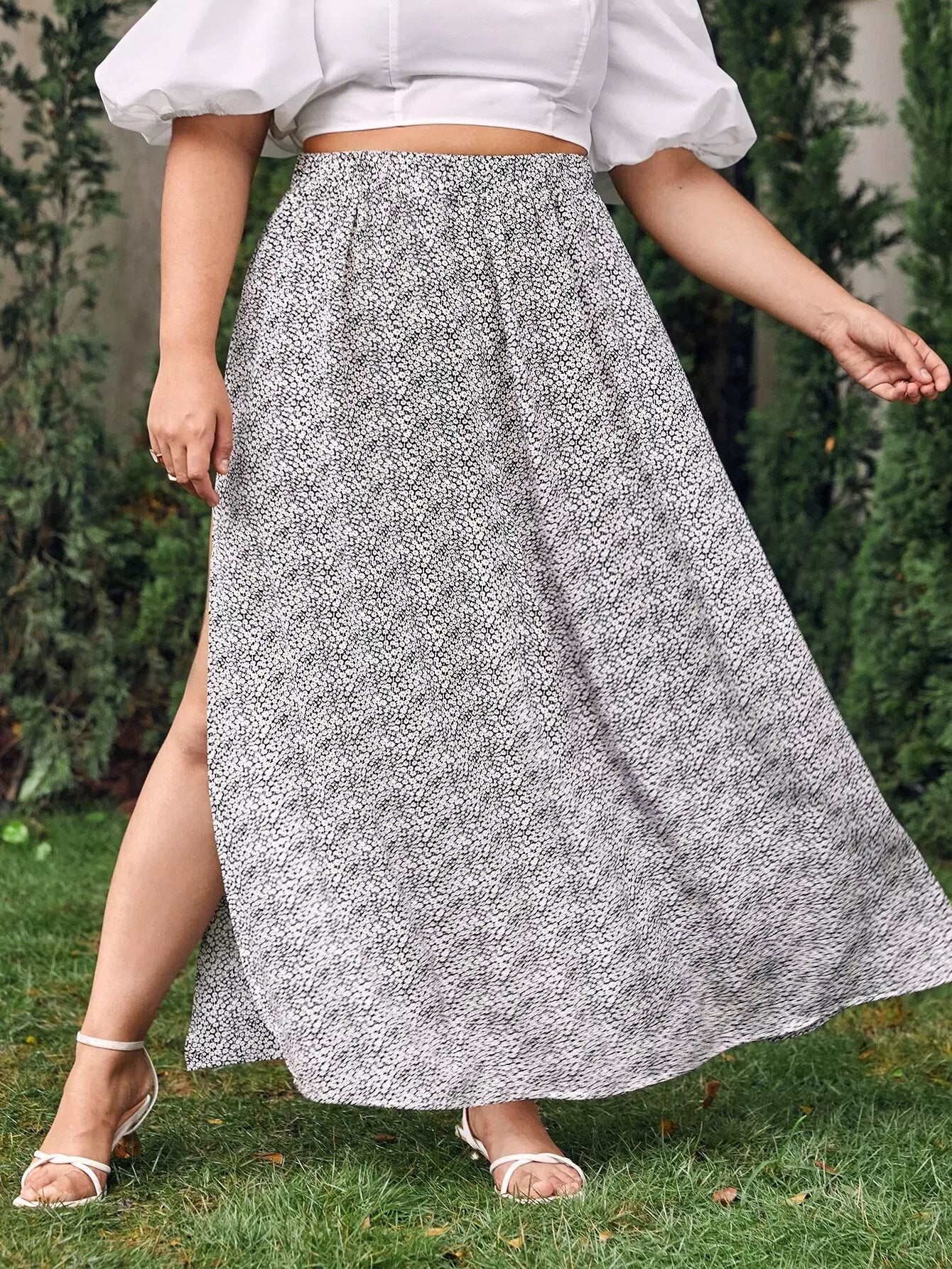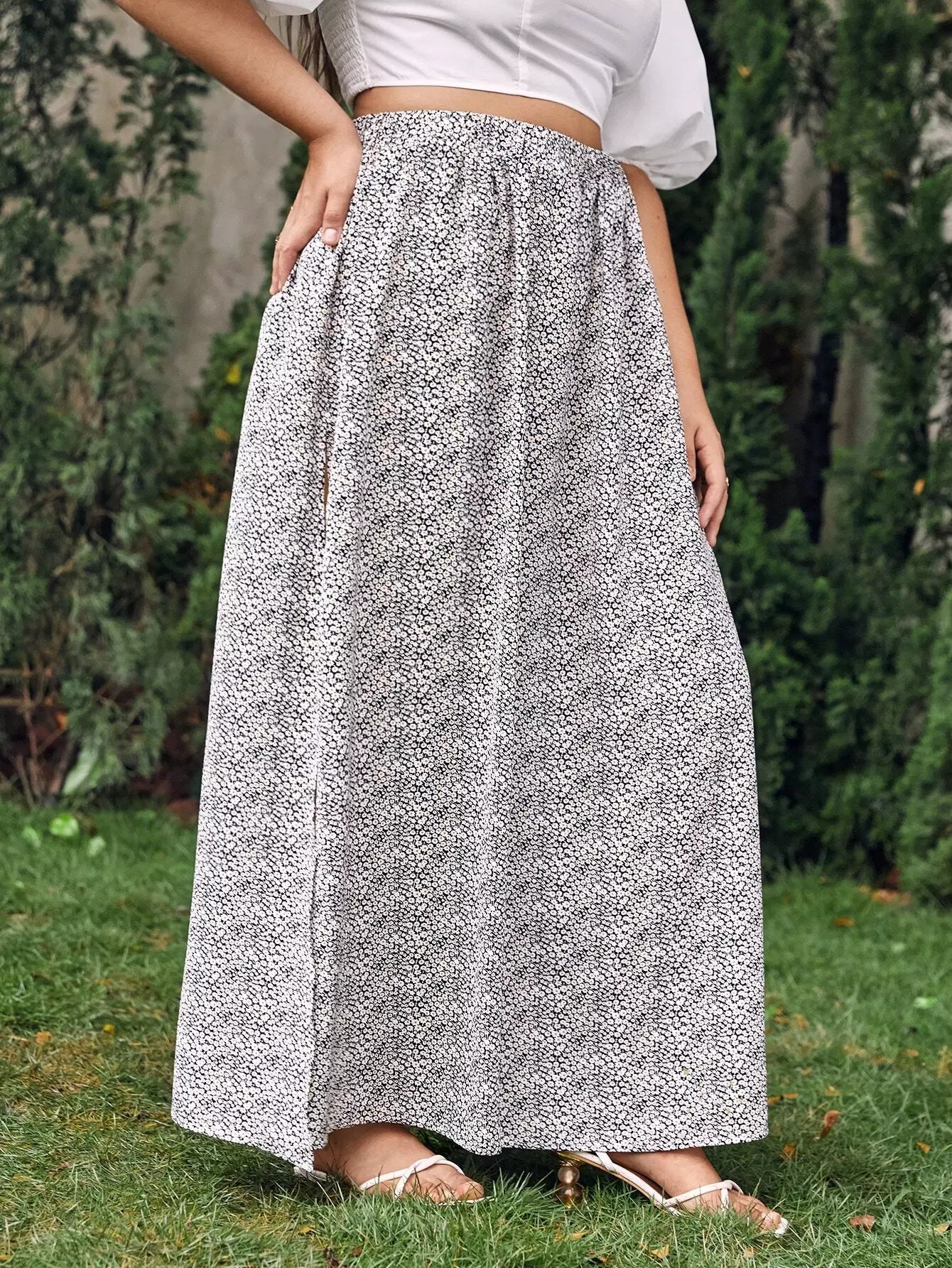 تنورة ديتسي مزينة بالورود ذات فتحة عالية زائدة