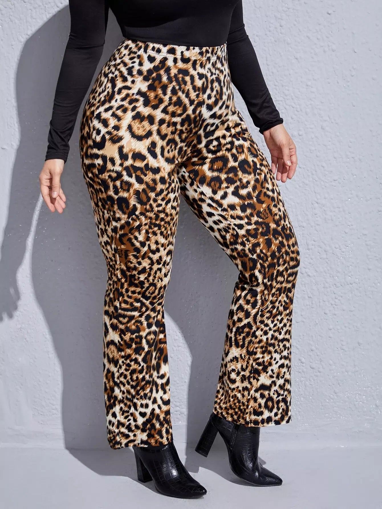 بنطلون بخصر عالٍ زائد بخصر عالٍ بساق واسعة بنقشة جلد الفهد