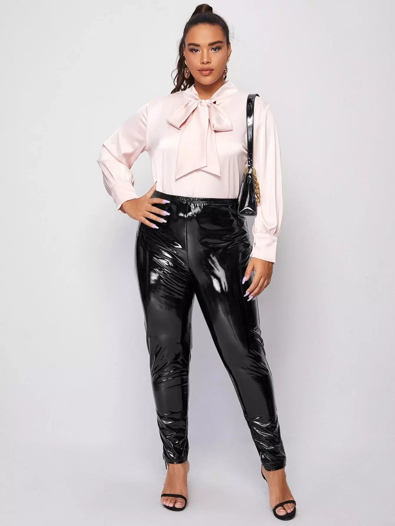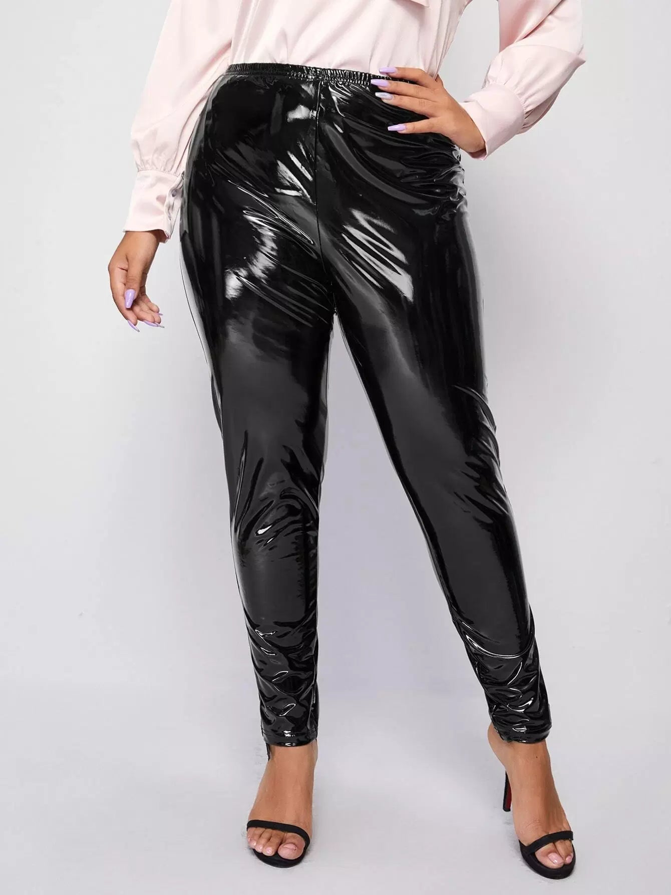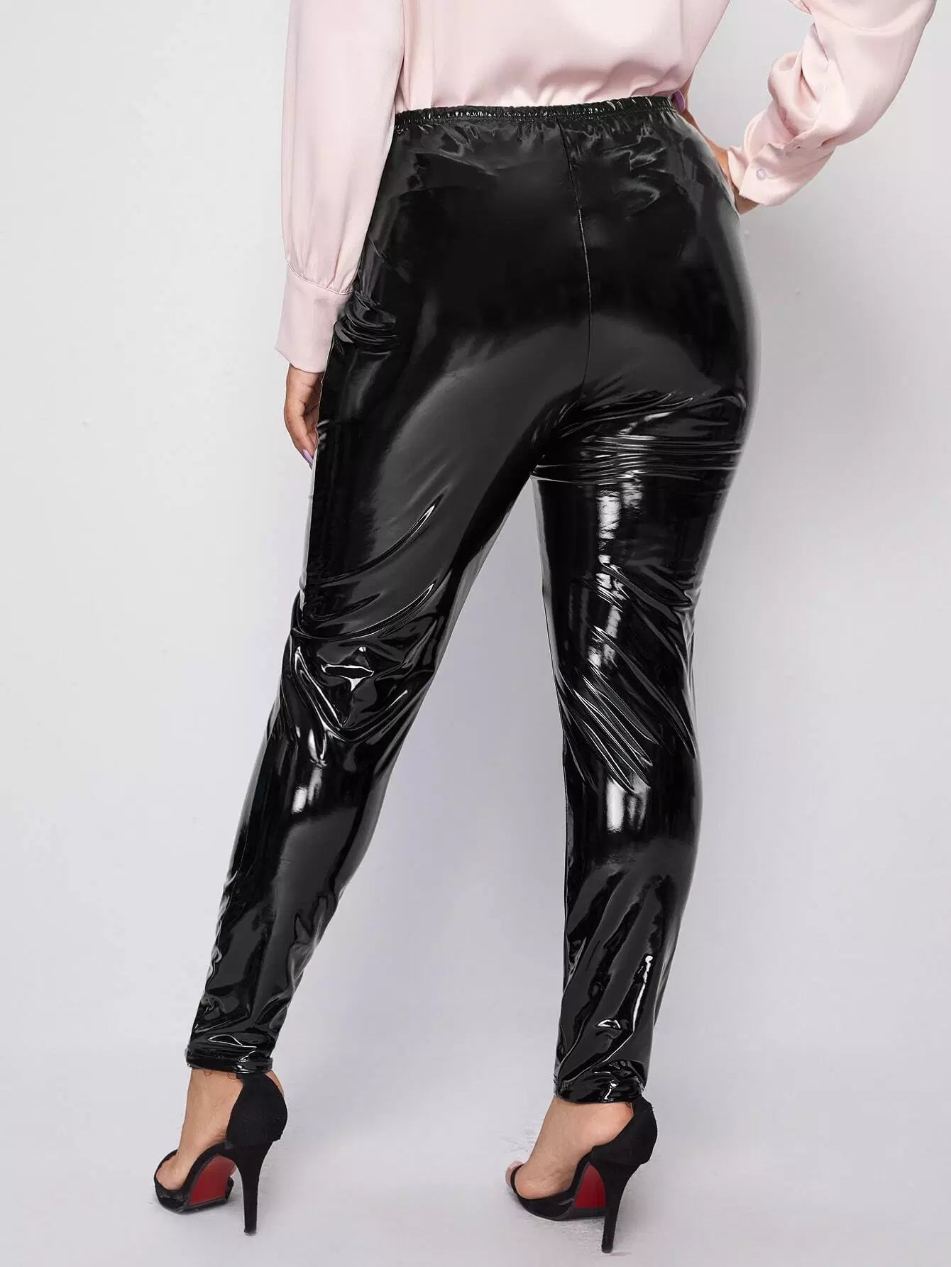 بنطلون جلدي عالي الخصر من جلد البولي يوريثان الضيق