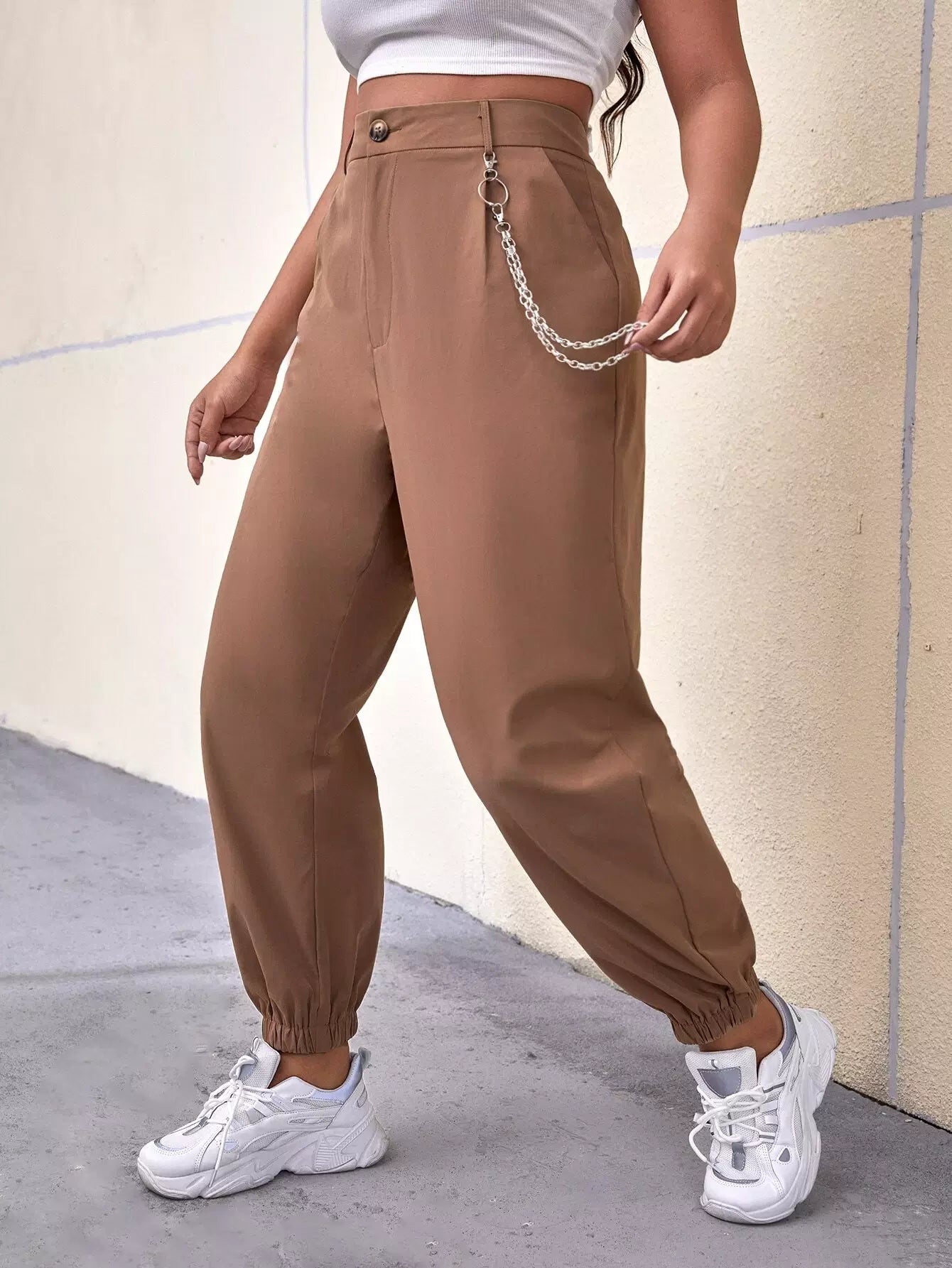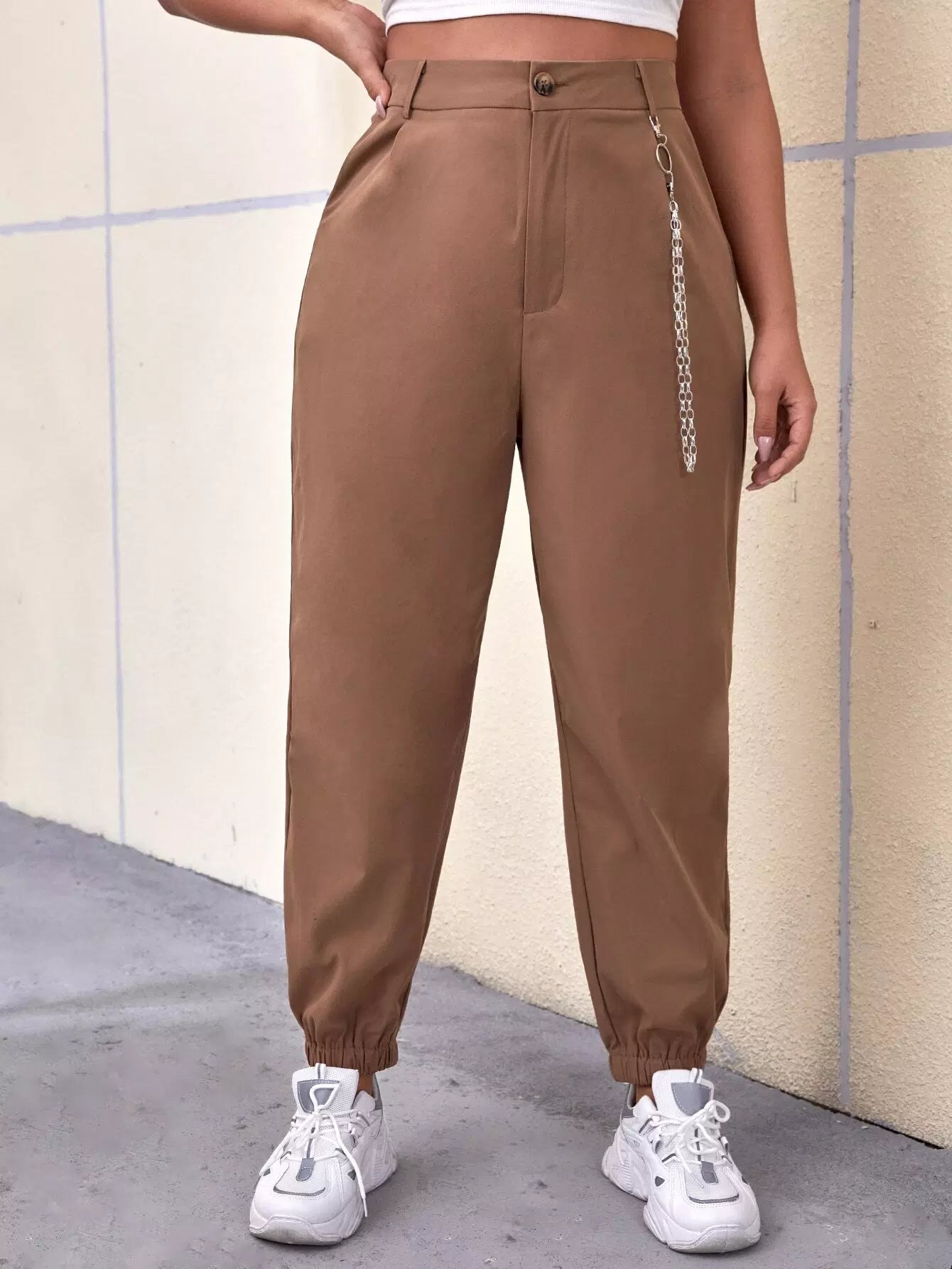 بنطلون بجيب مائل بخصر عالٍ مائل مع سلسلة