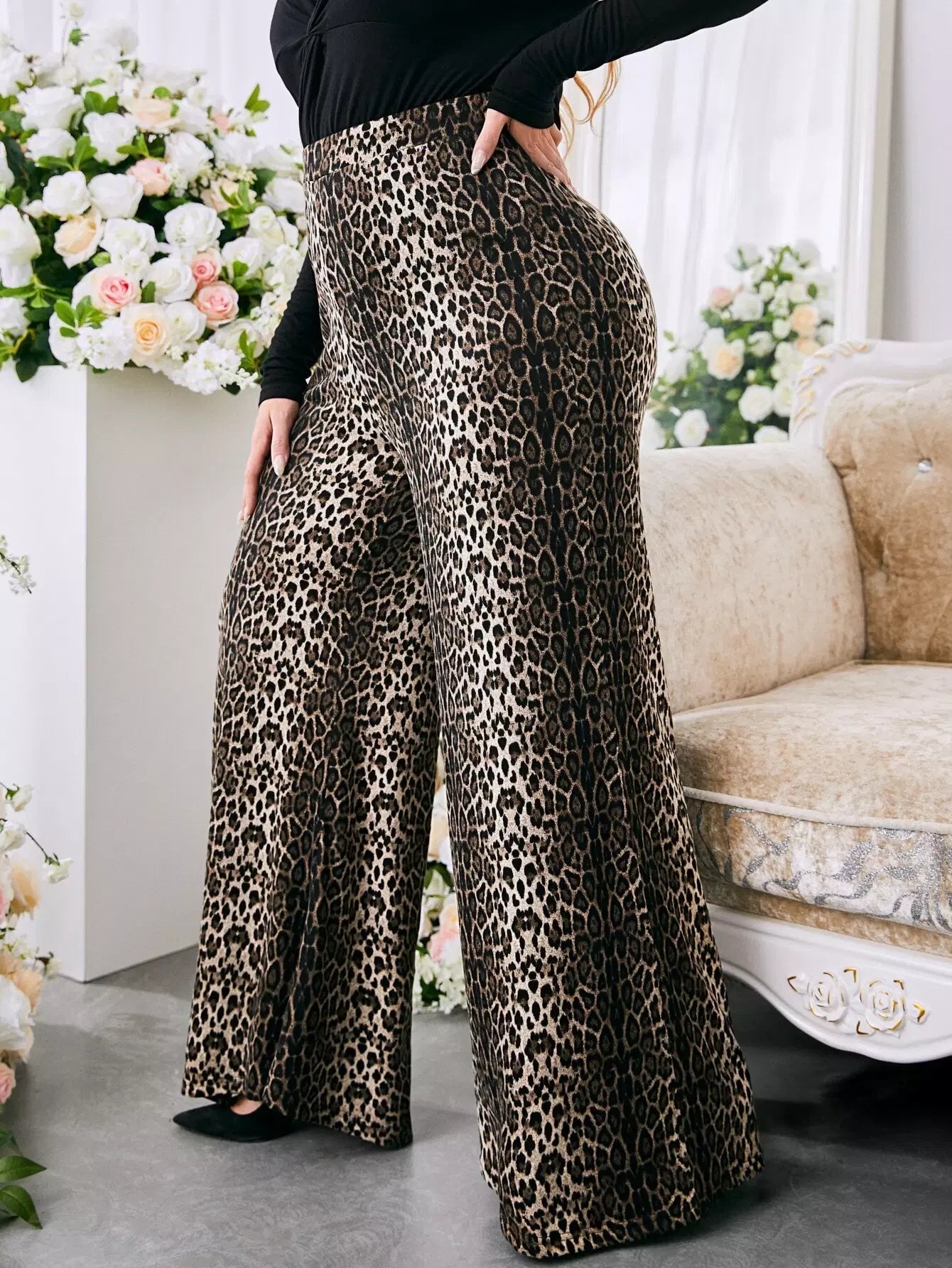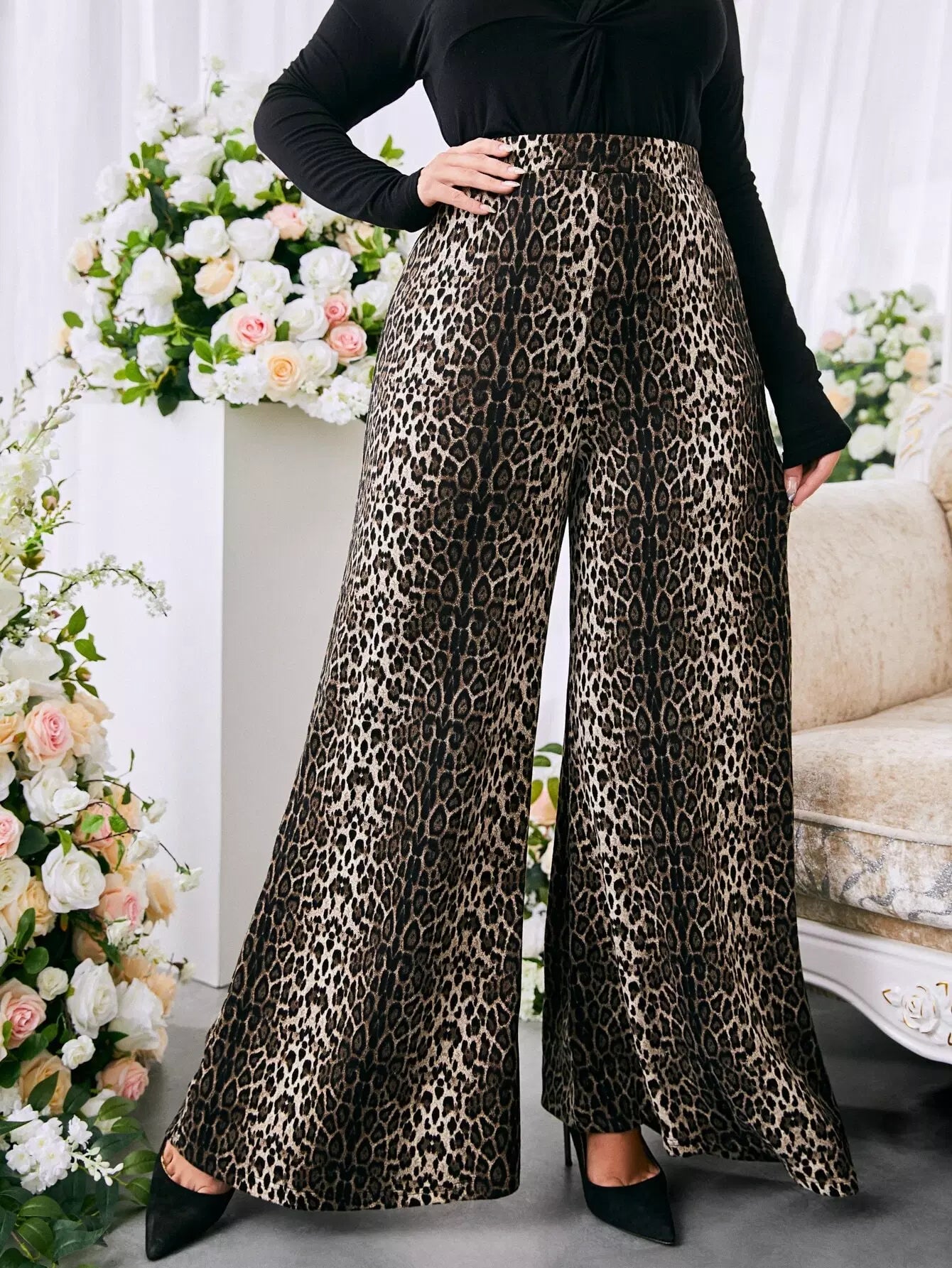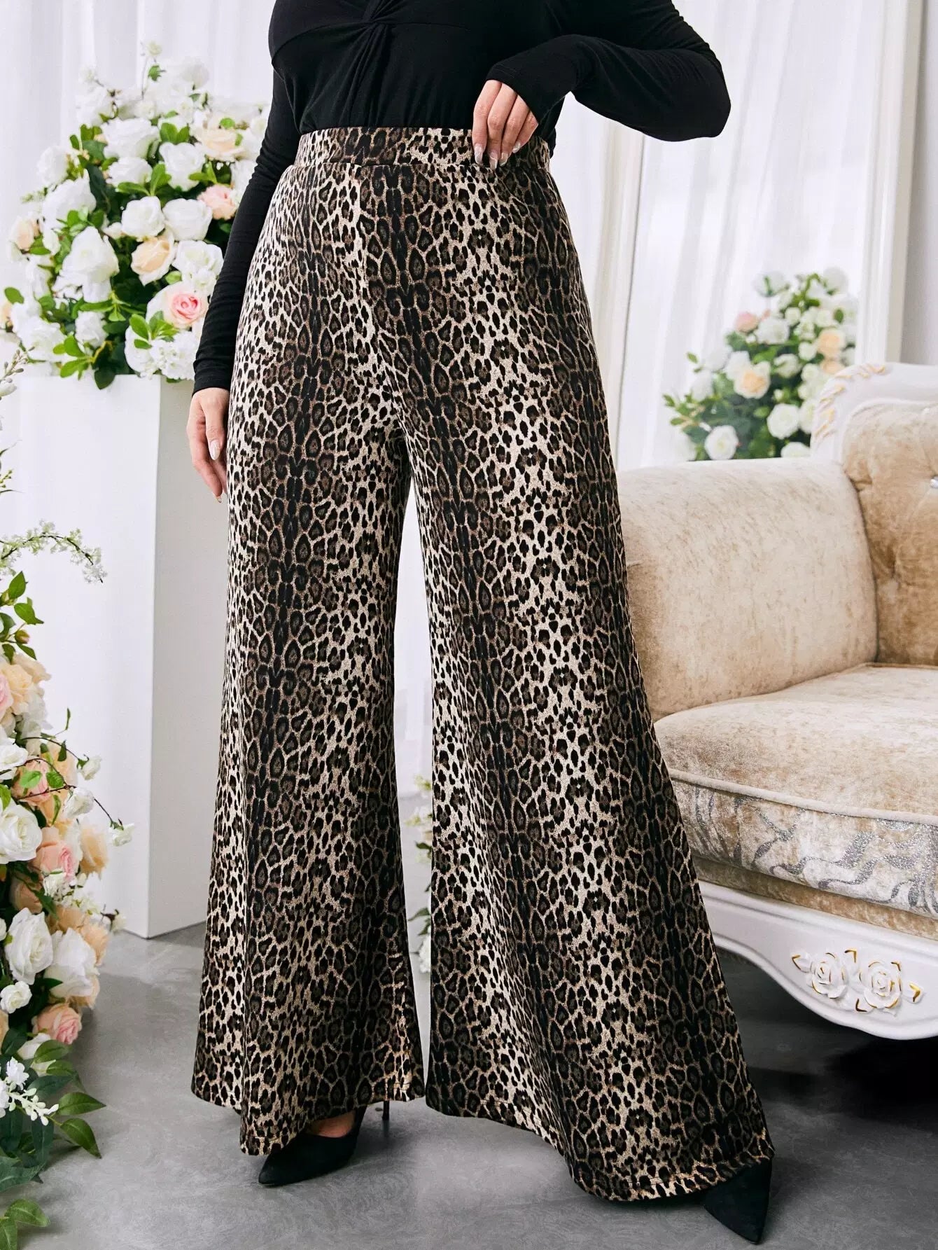 بنطلون بخصر عالٍ زائد بنقشة جلد الثعبان بخصر عالٍ وساق عريض