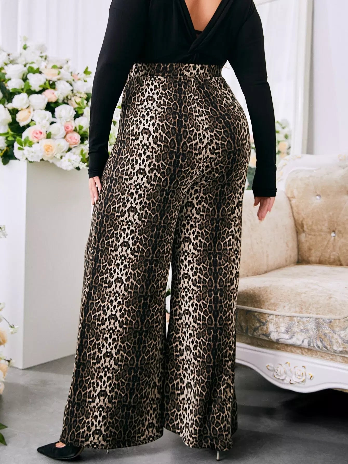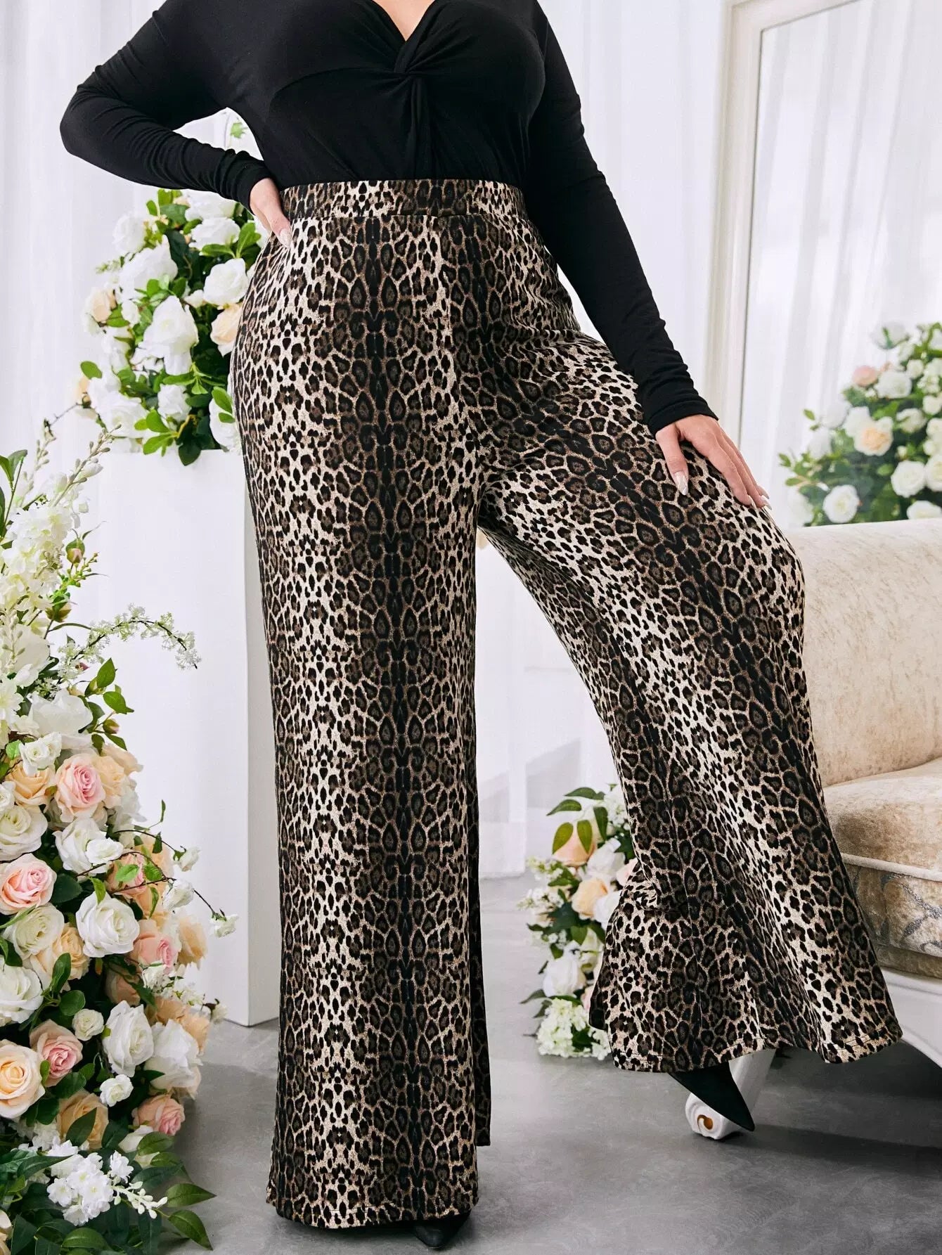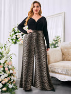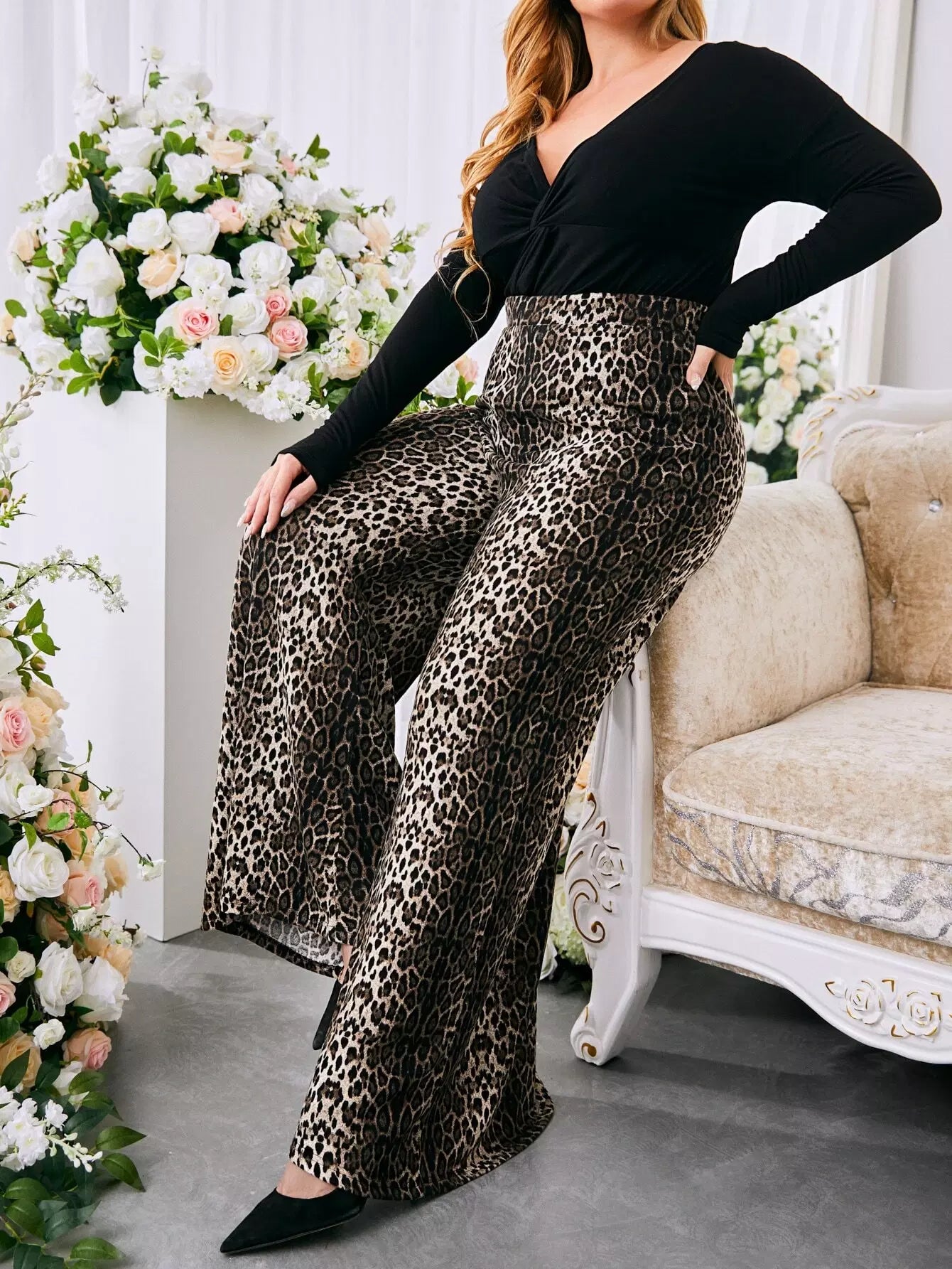 بنطلون بخصر عالٍ زائد بنقشة جلد الثعبان بخصر عالٍ وساق عريض