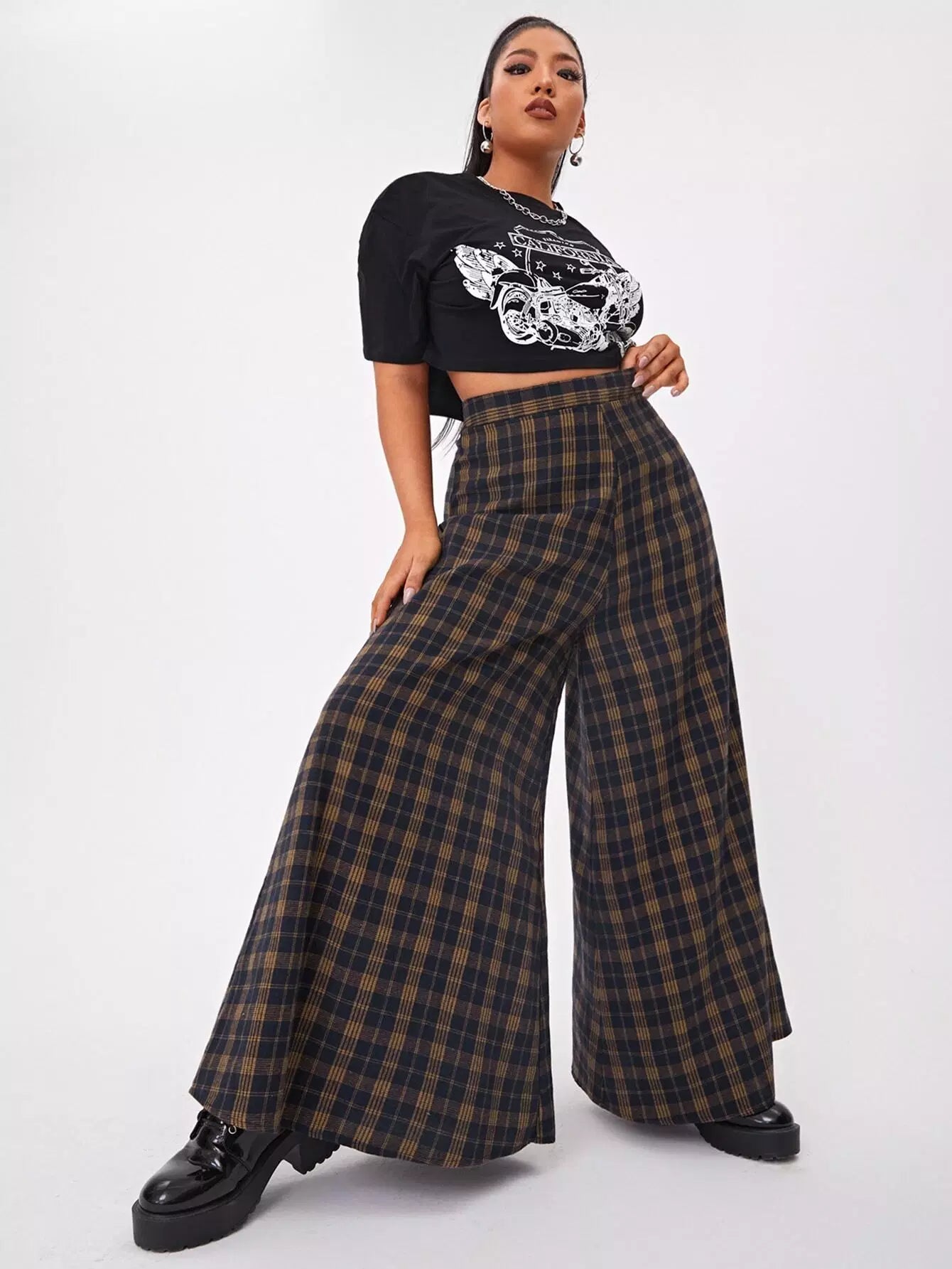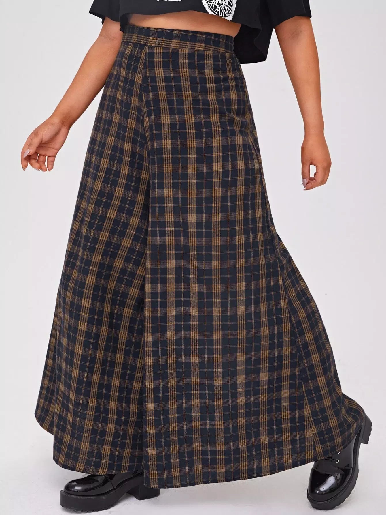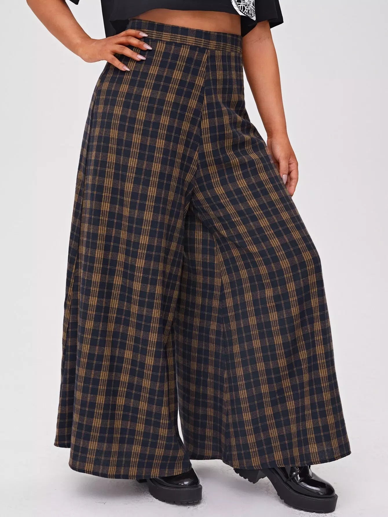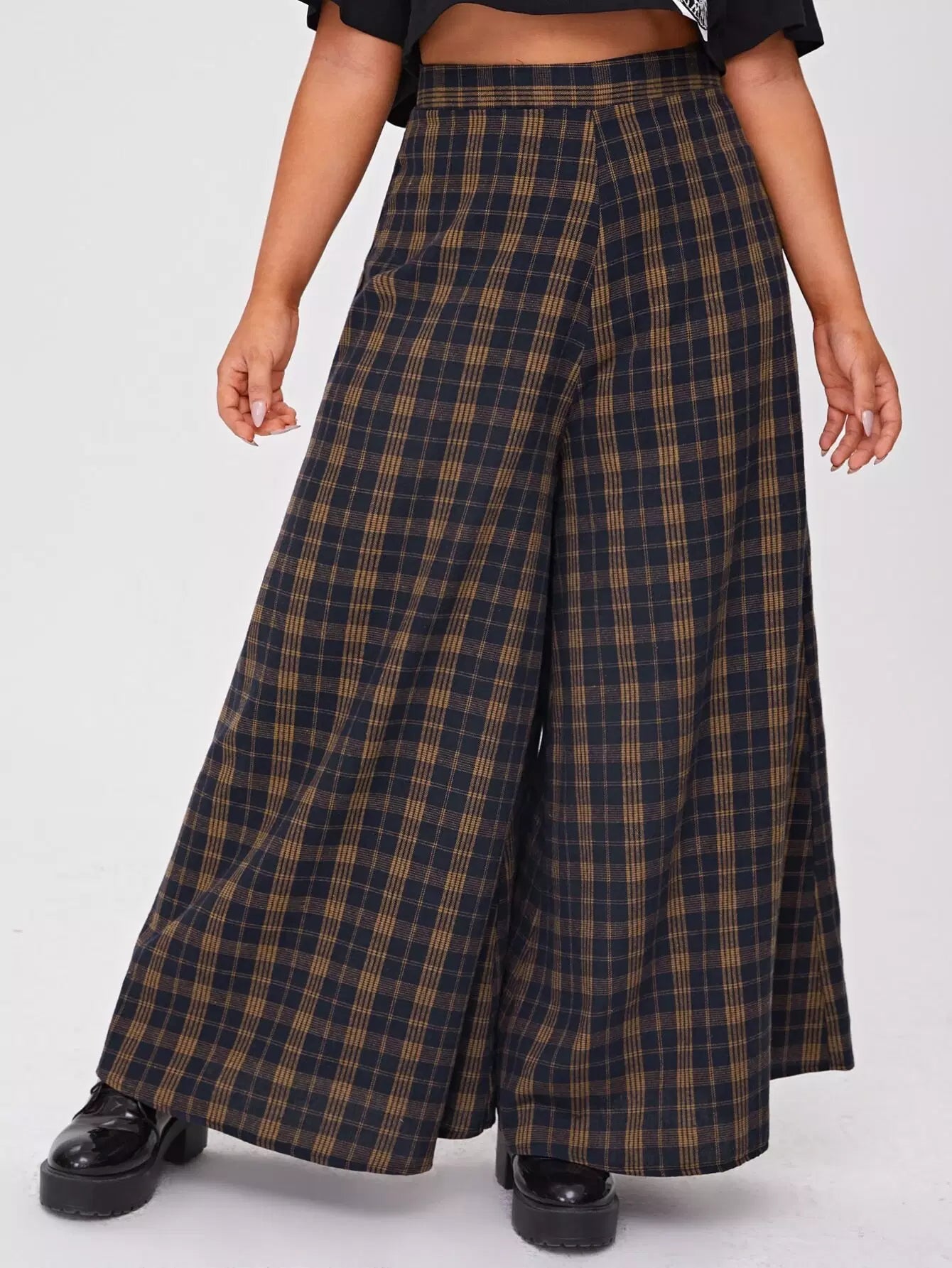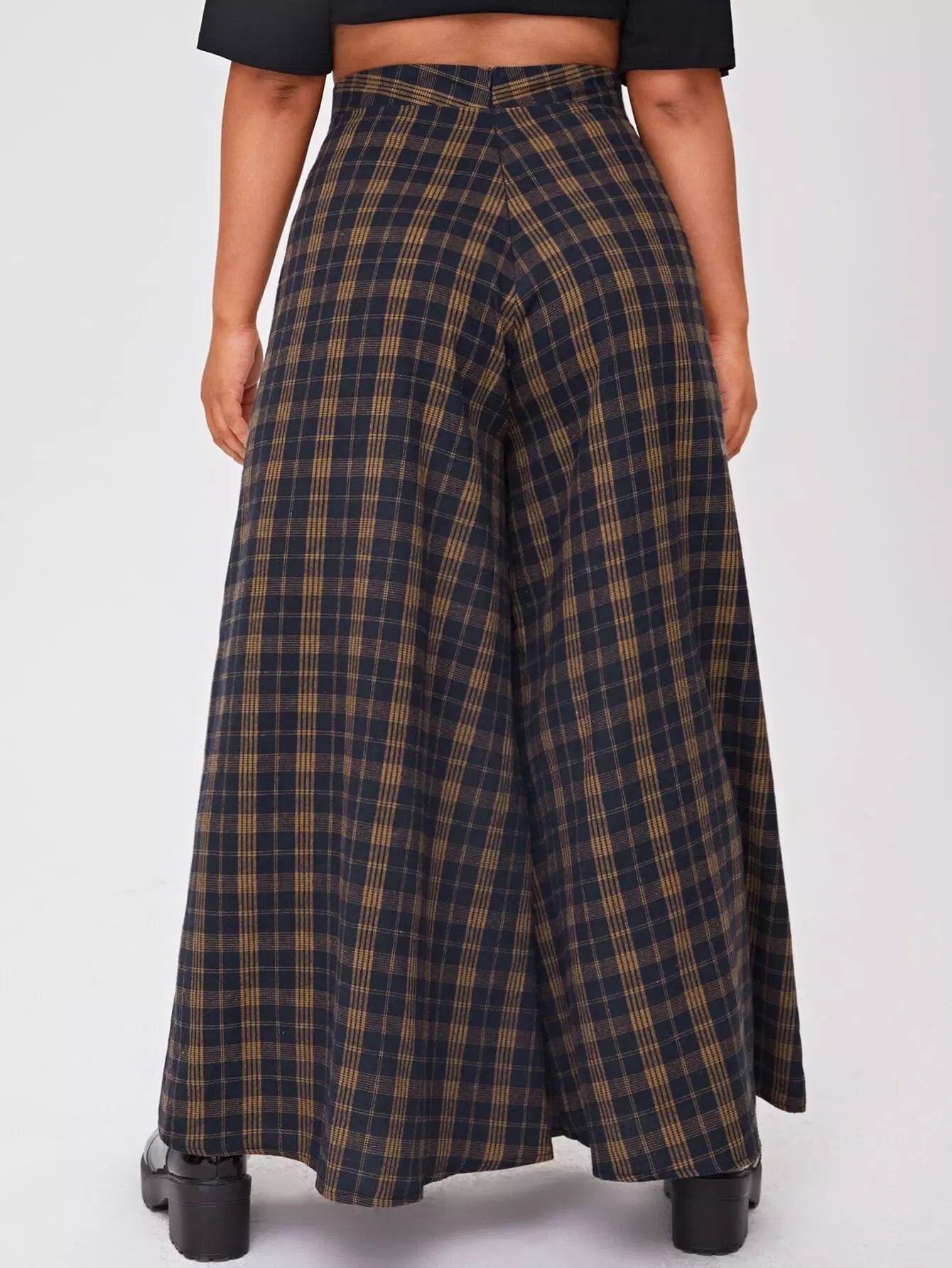 بنطلون بخصر عالٍ زائد بخصر عالٍ من الترتان واسع الساقين