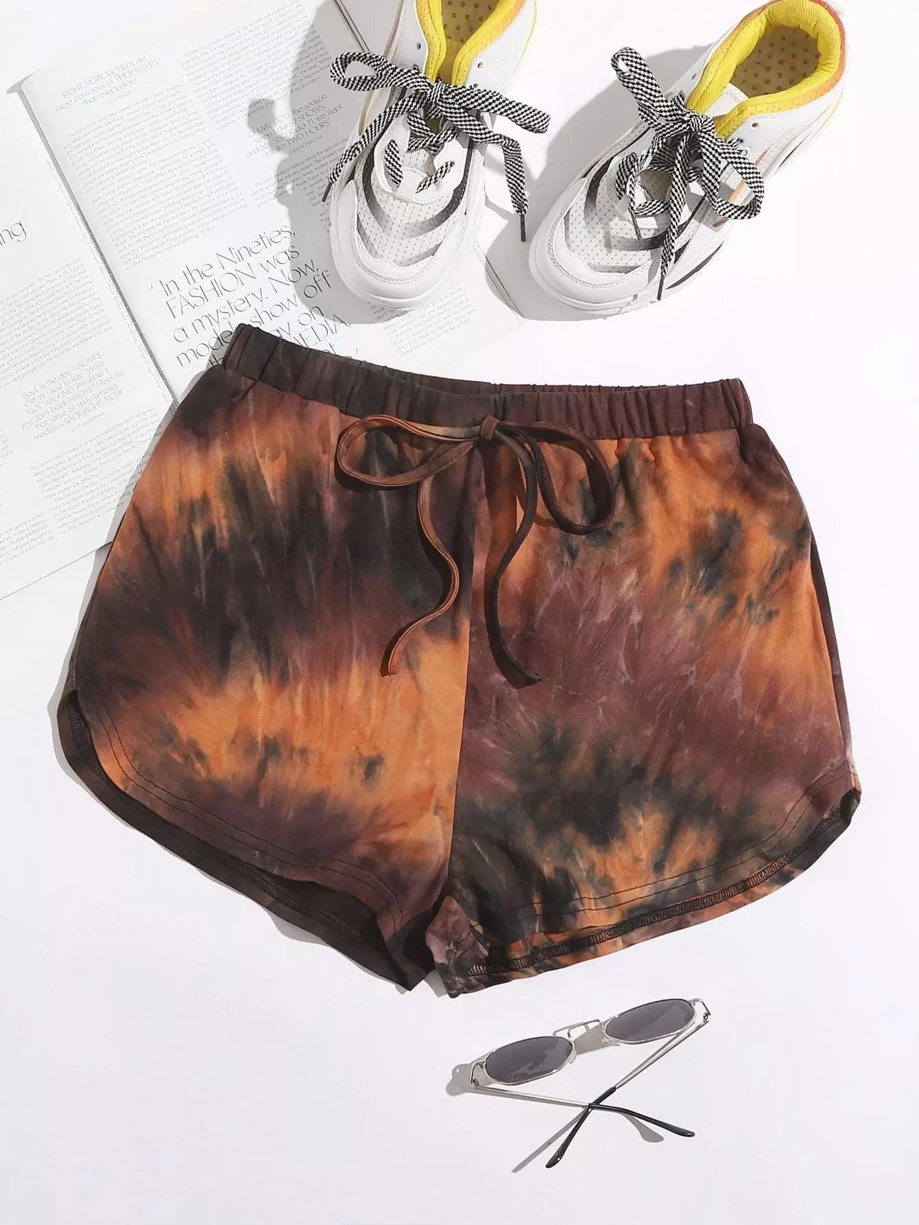 شورت رياضي مزين بعقدة على الخصر مع ربطات عنق على الخصر