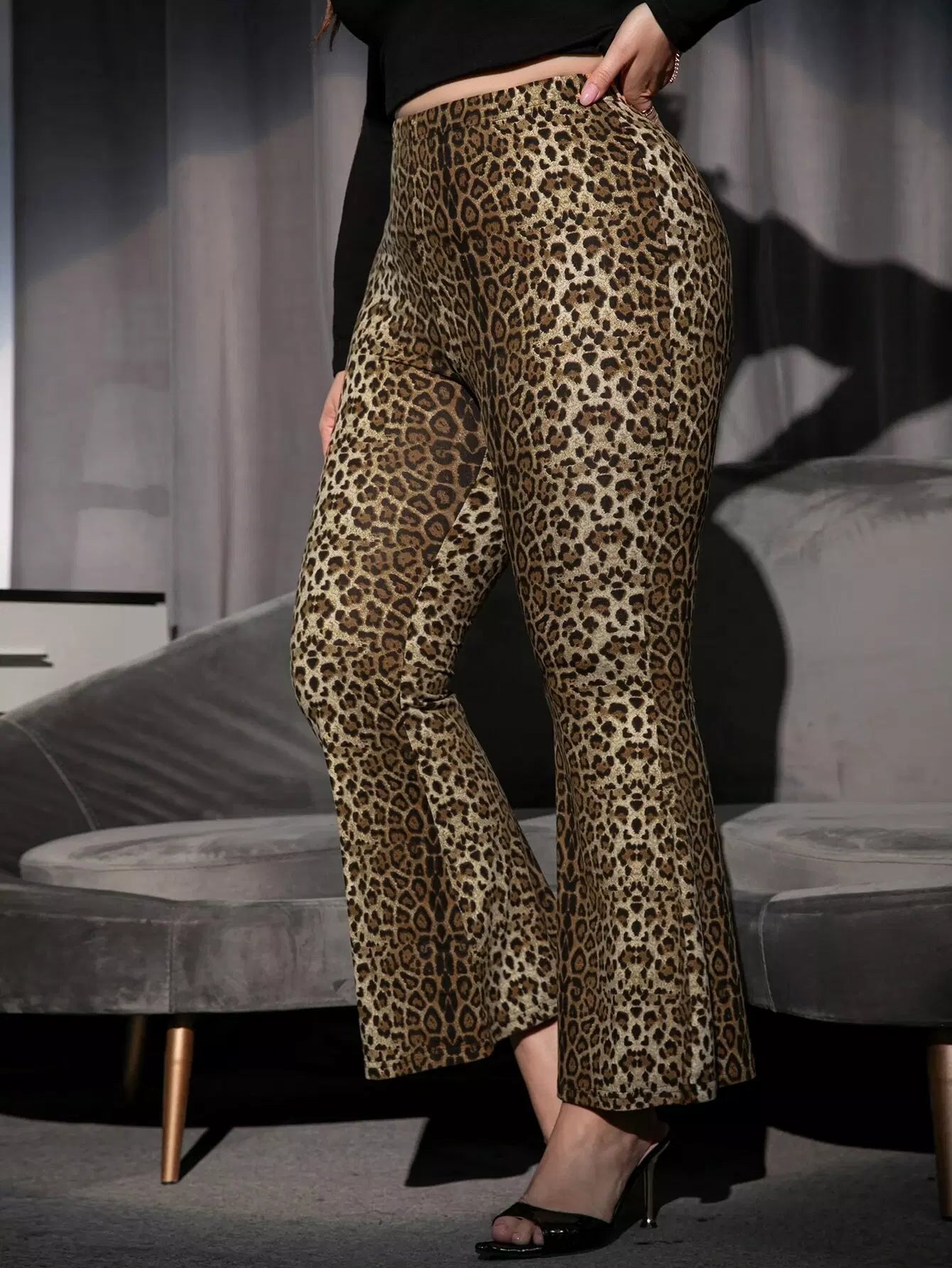 بنطلون بطبعة جلد الفهد زائد بساق واسعة