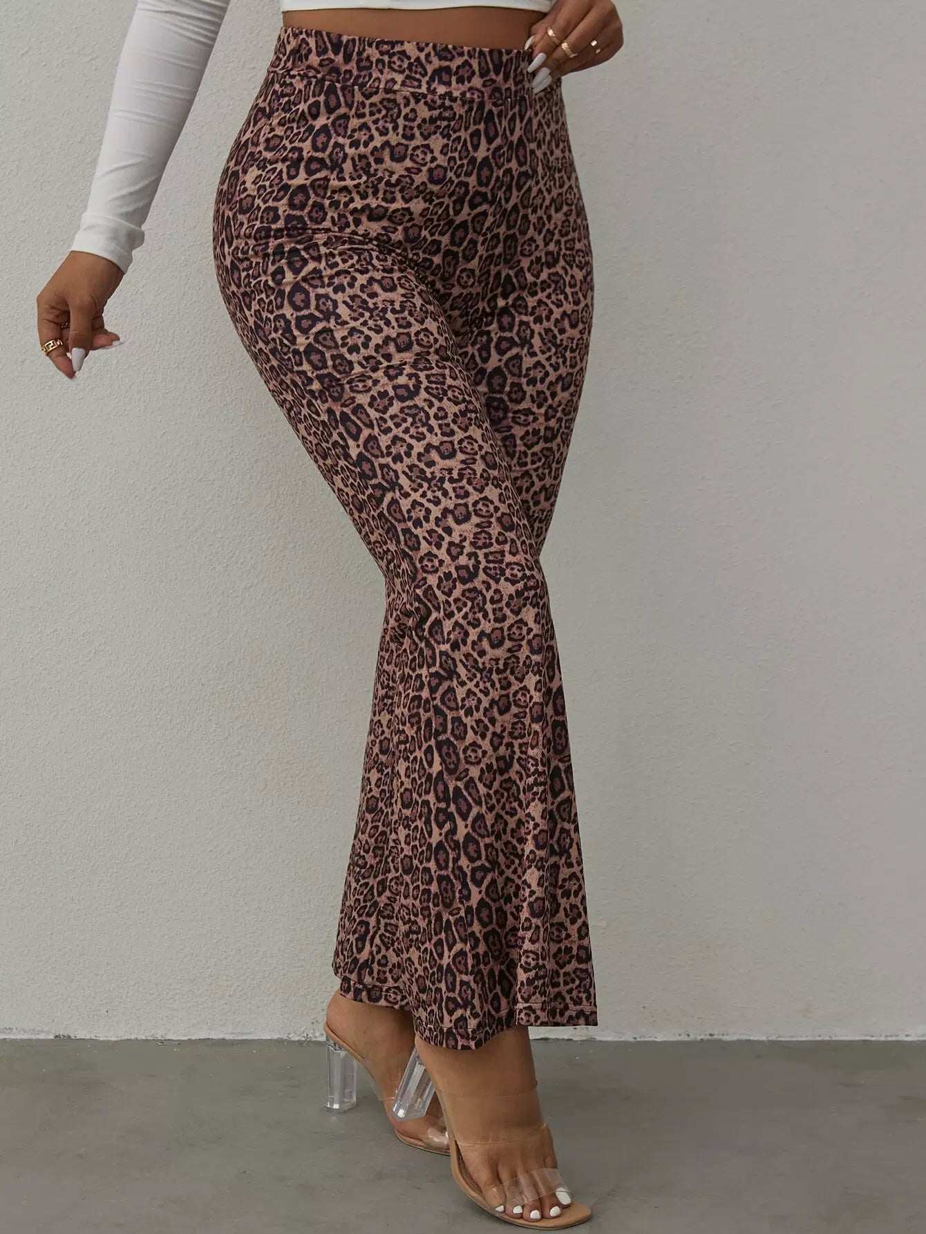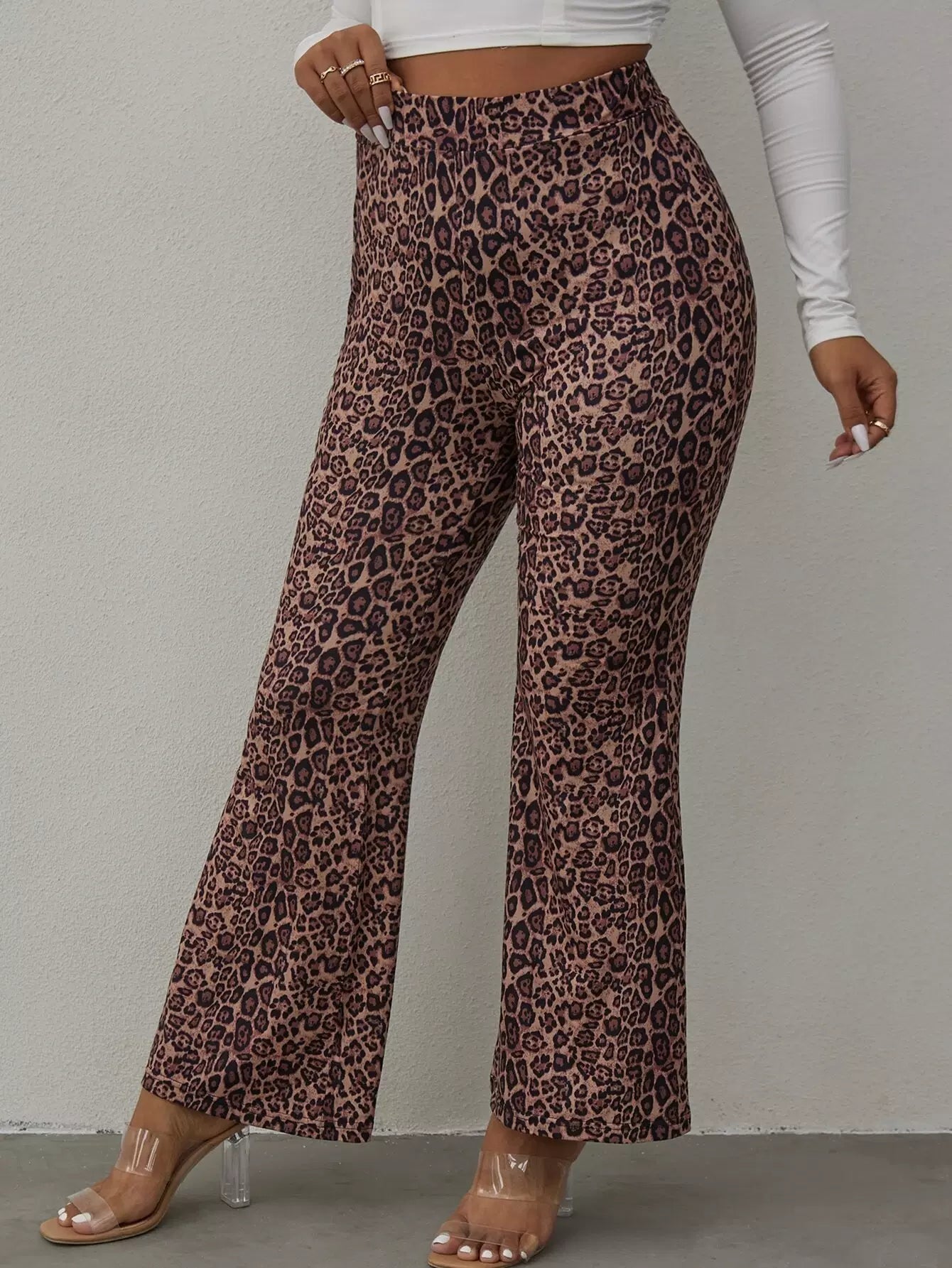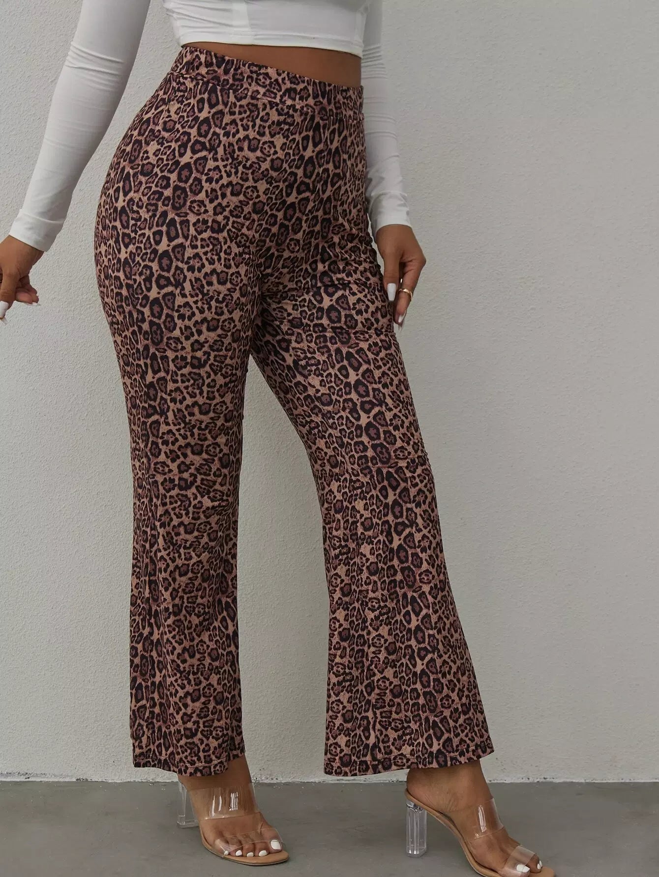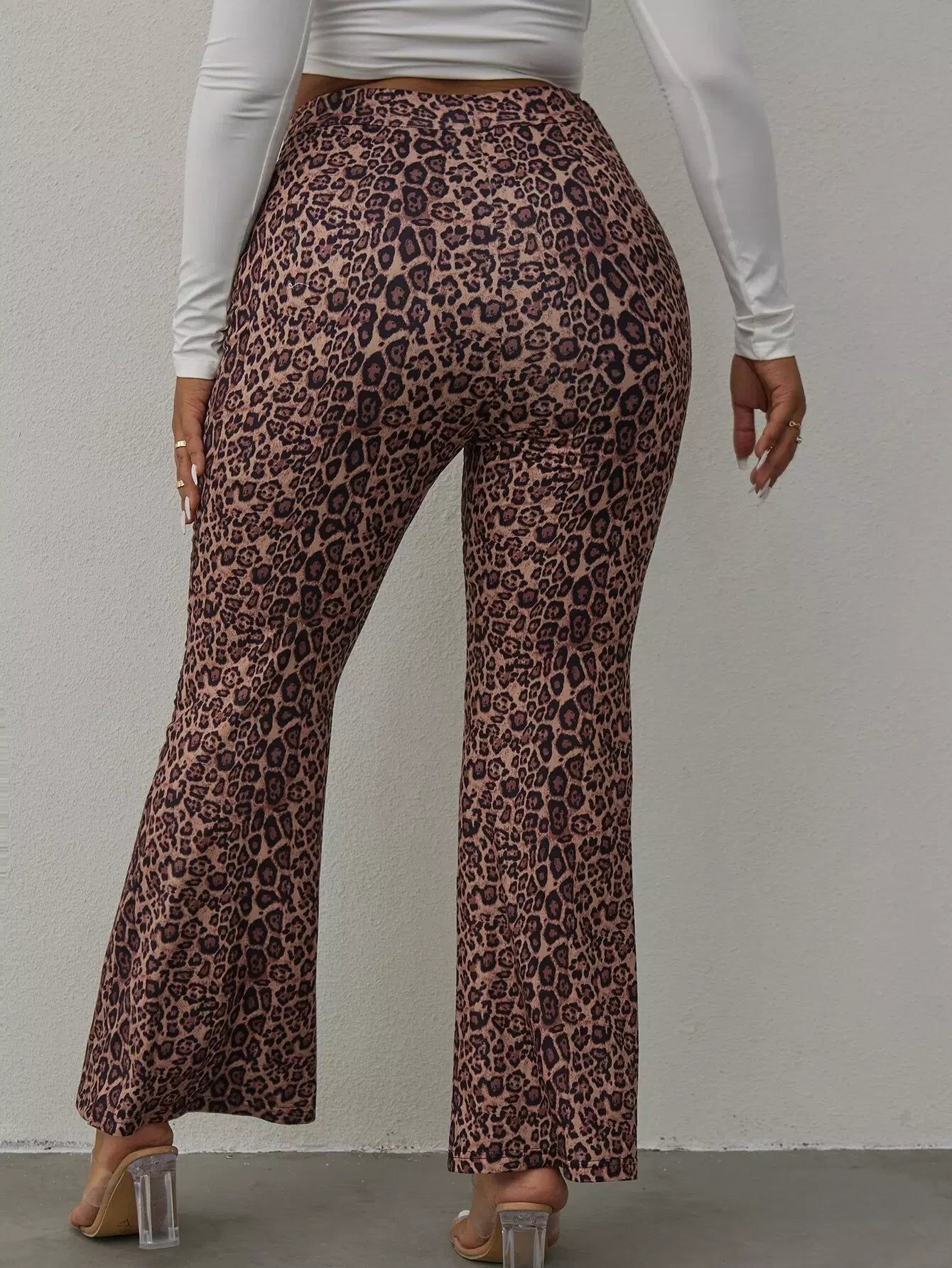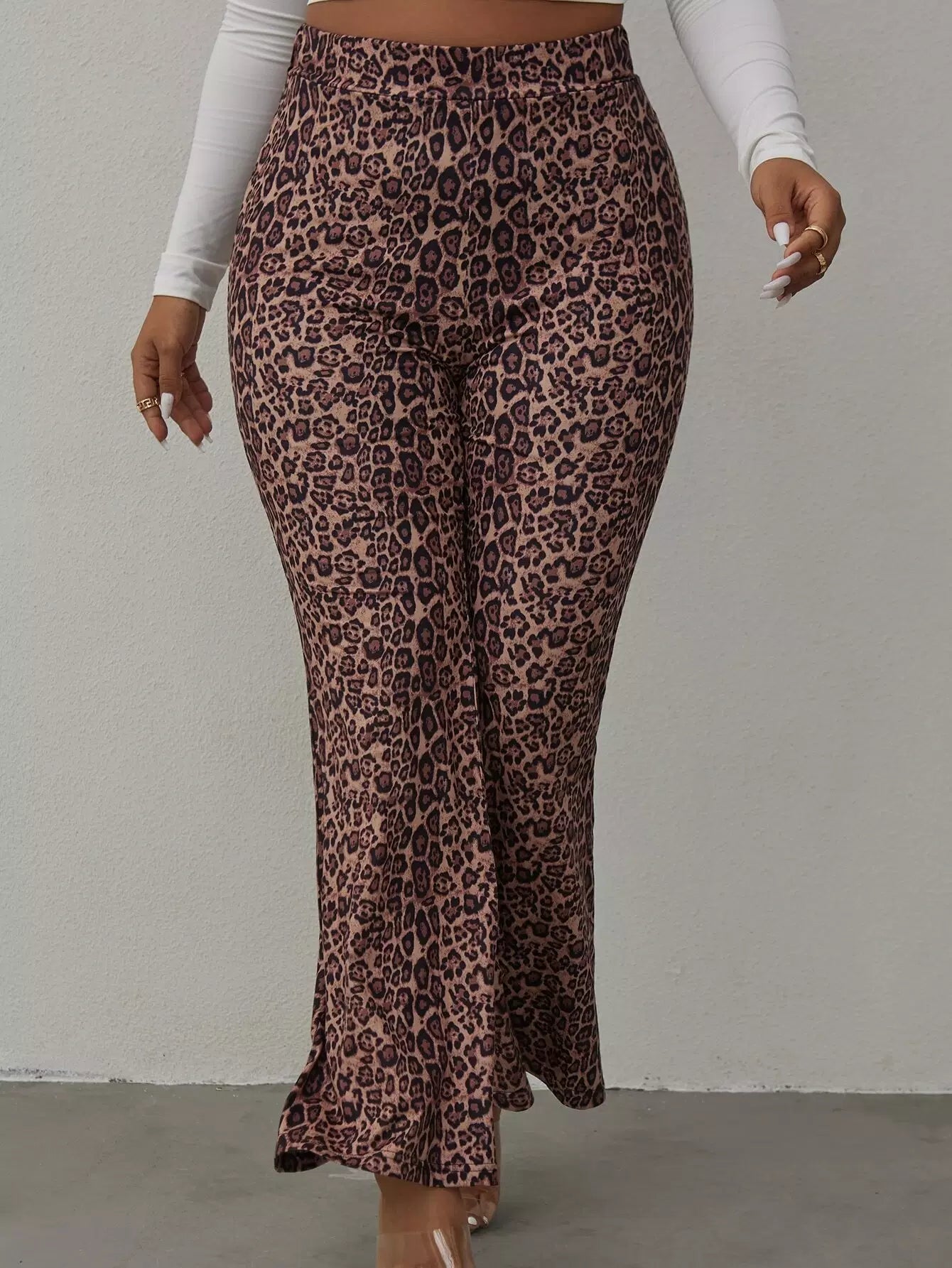 بنطلون بطبعة جلد الفهد زائد بساق واسعة