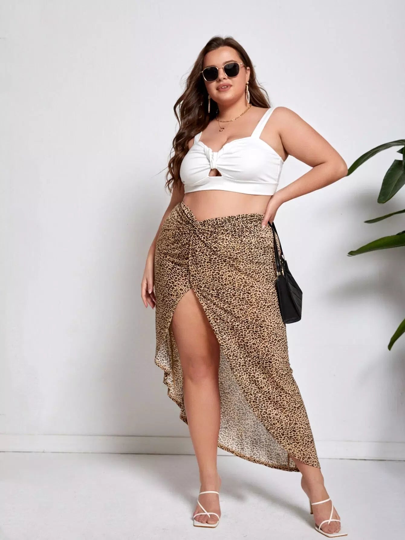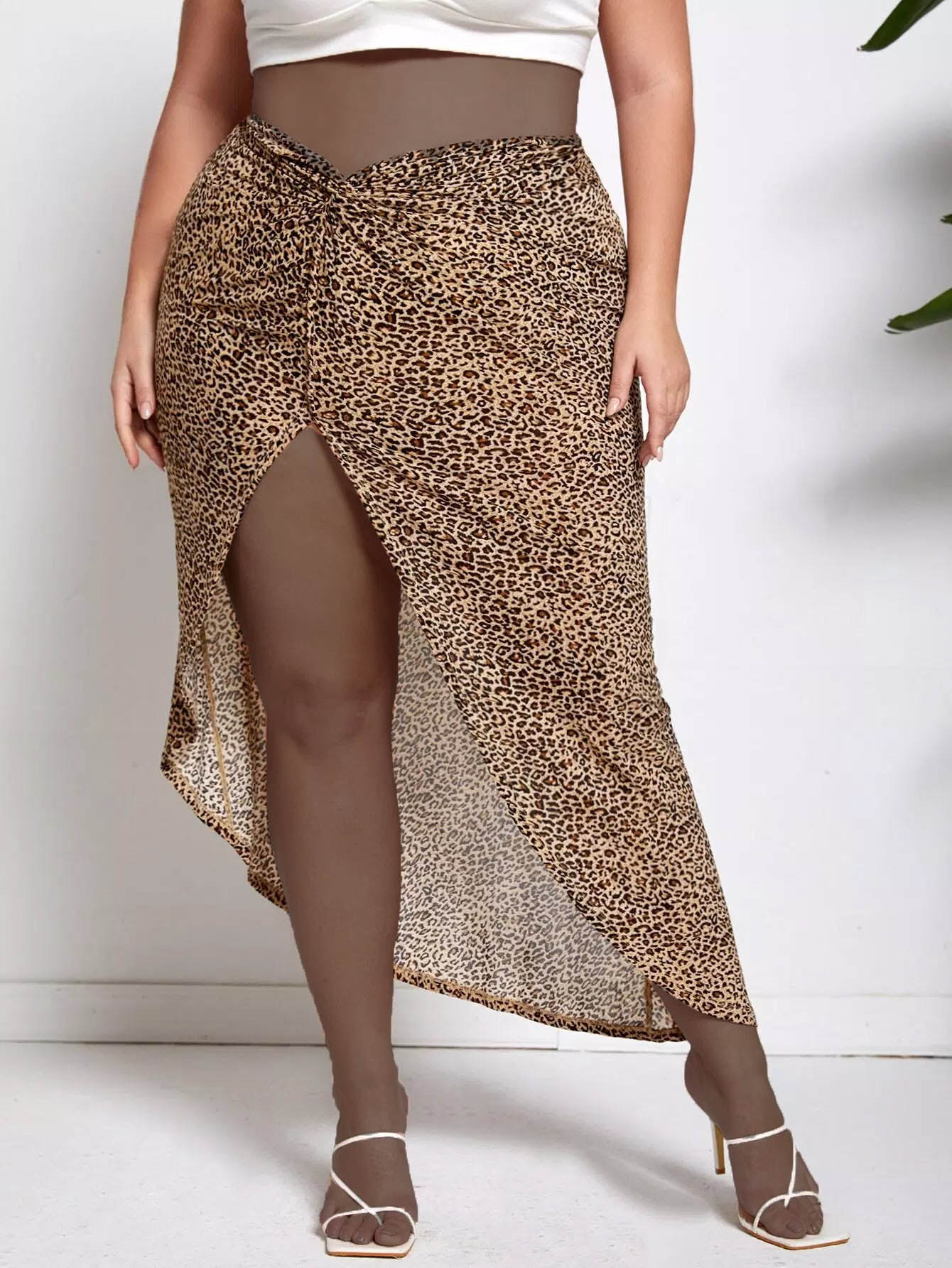 تنورة بقصّة بلس تويست أمامية عالية الحافة منخفضة من الفهد