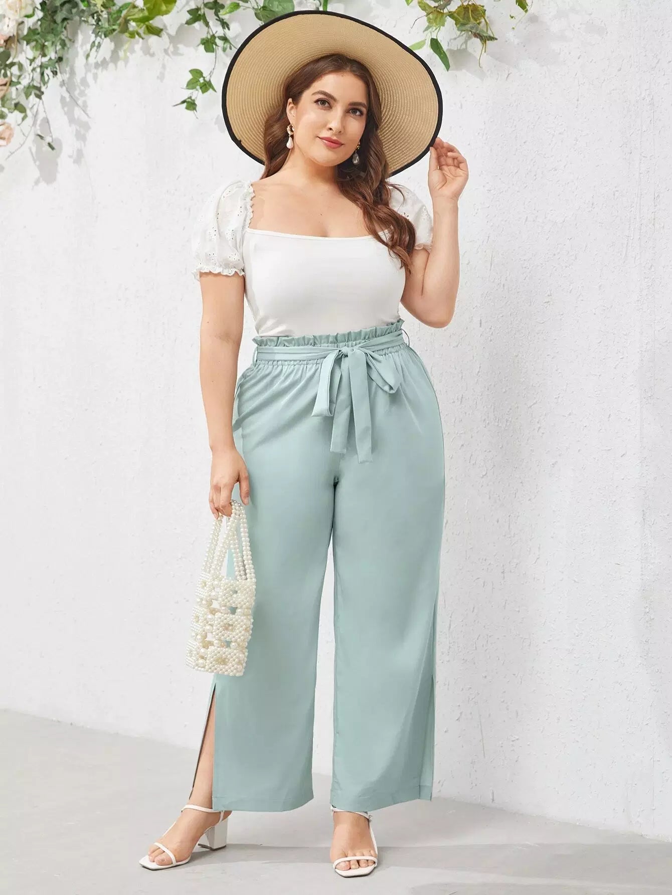 بالإضافة إلى بنطال كيس ورقي على الخصر بدون حزام