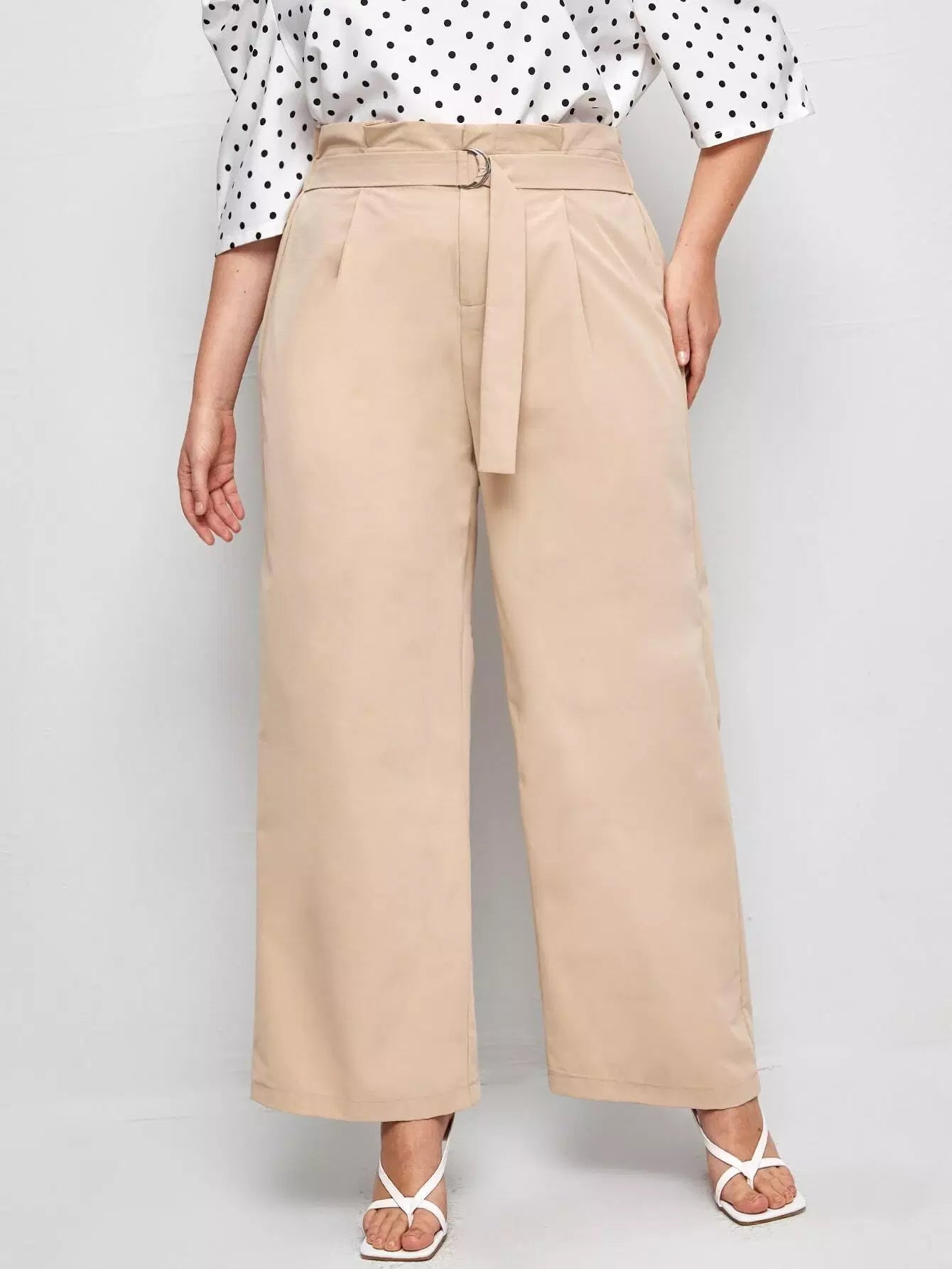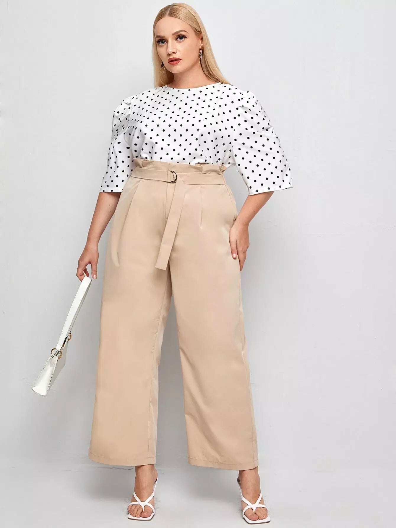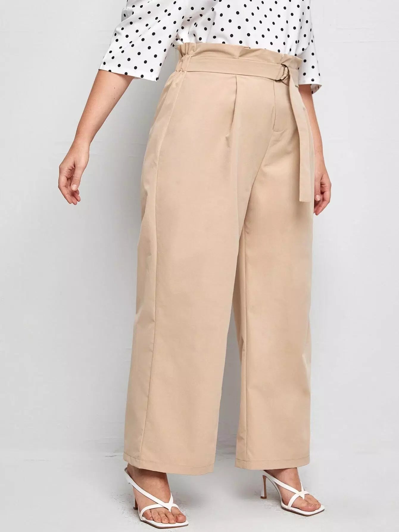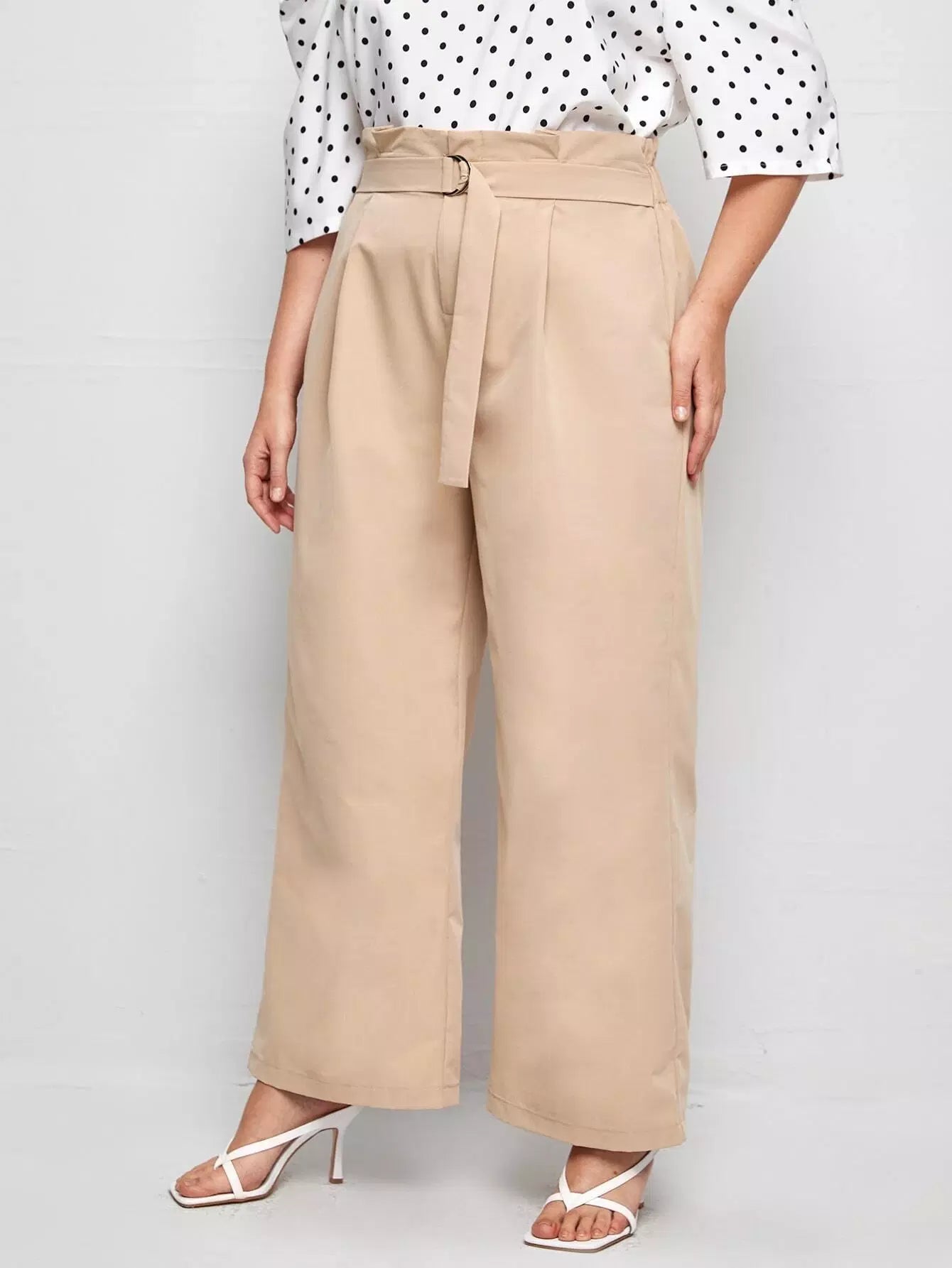 بالإضافة إلى حقيبة ورقية للخصر بنطال بأرجل واسعة بدون حزام