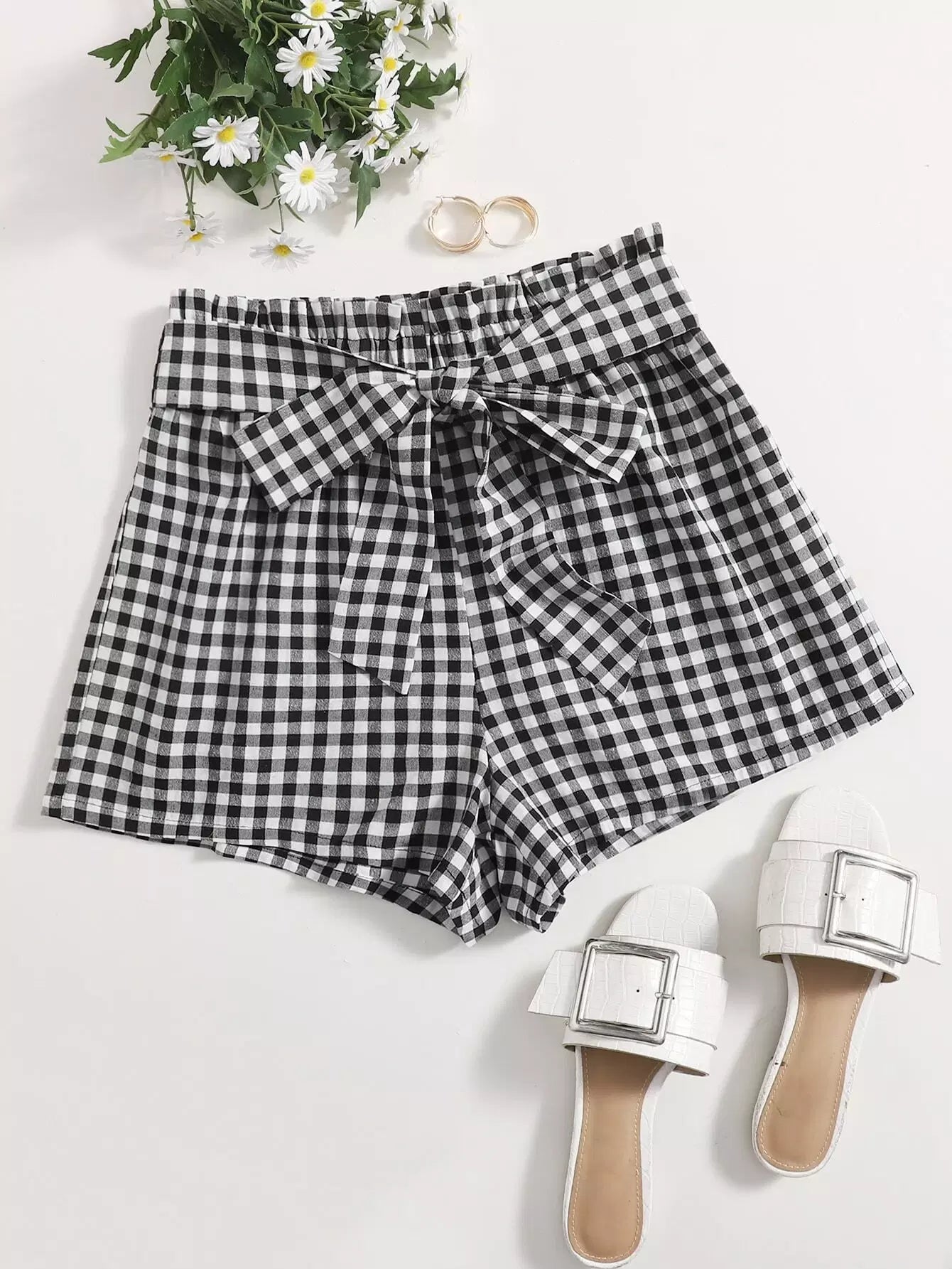 بنطلون قصير منقوش بالورق على الخصر زائد بافالو منقوش بالورق