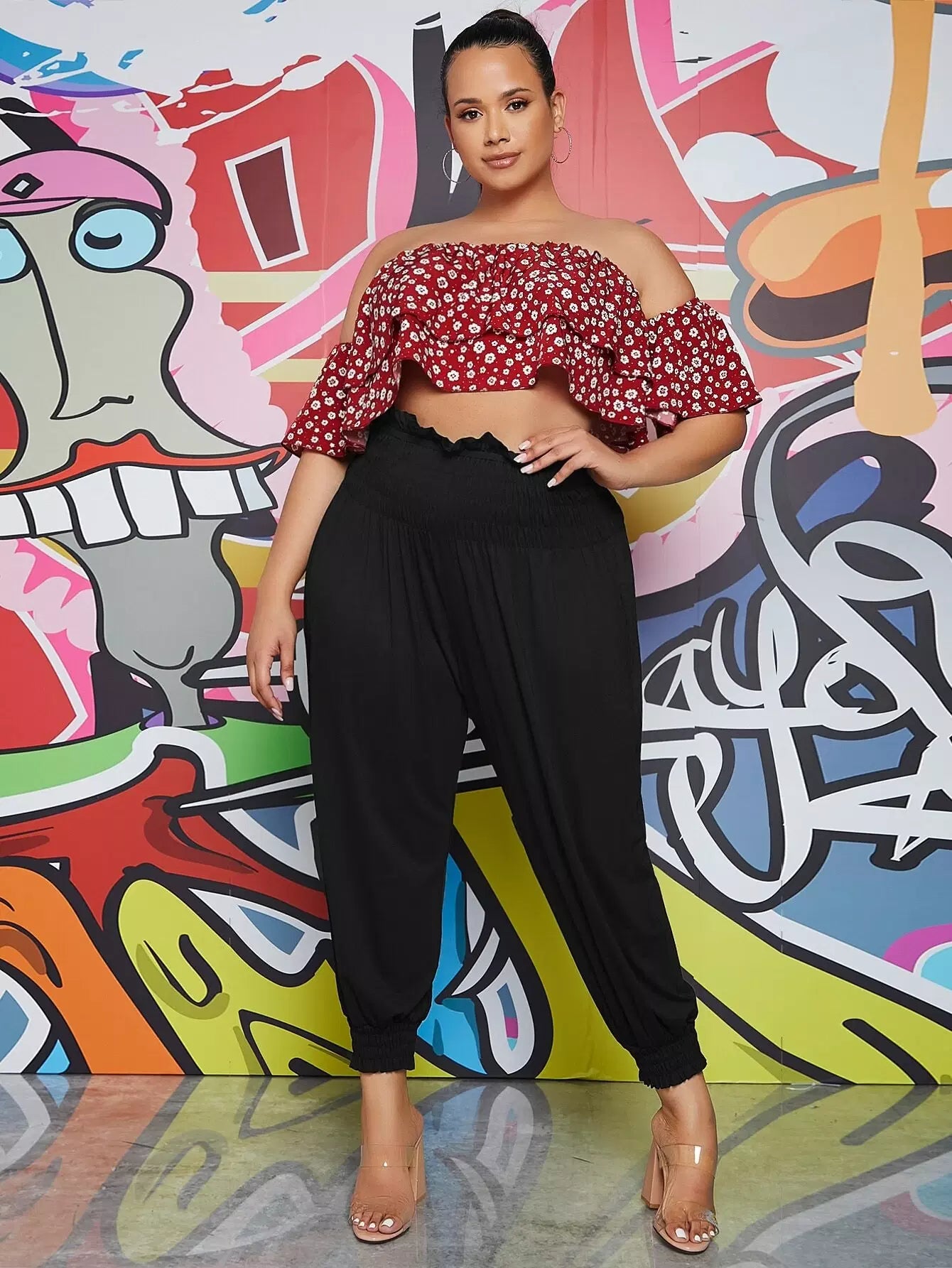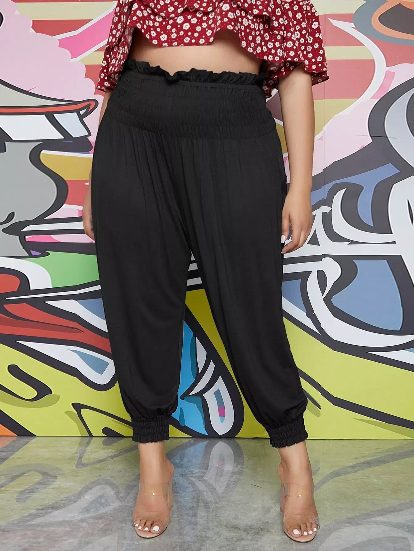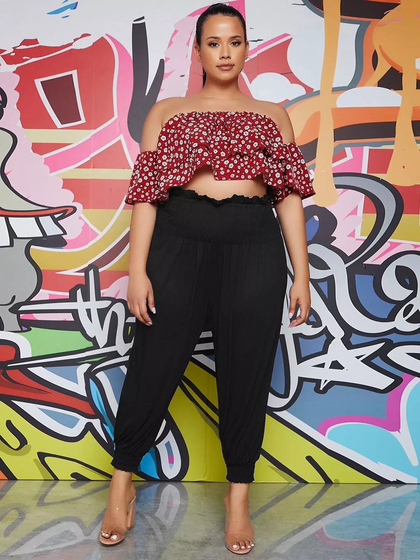 بنطلون بخصر كيس ورقي زائد مزين بشريط بتفاصيل دقيقة