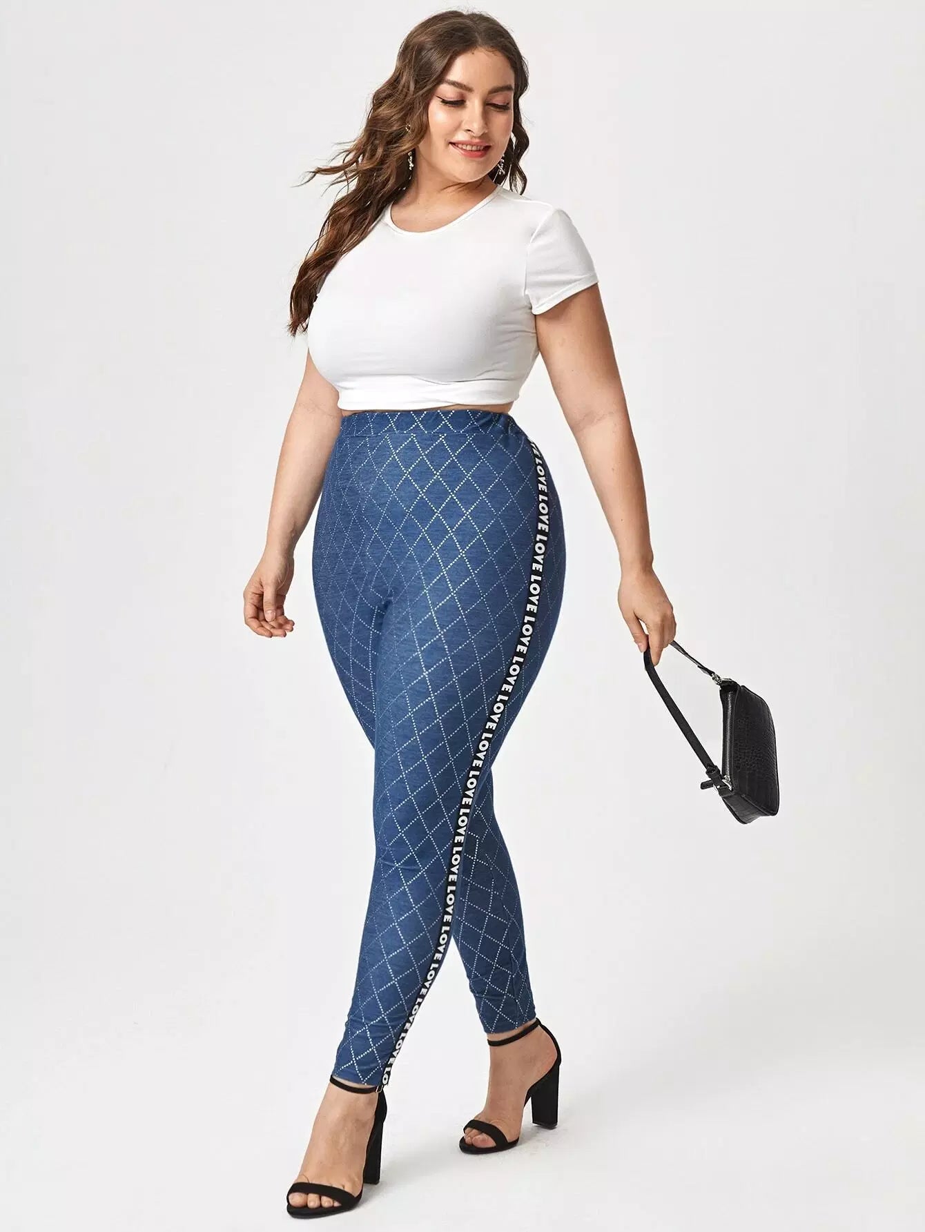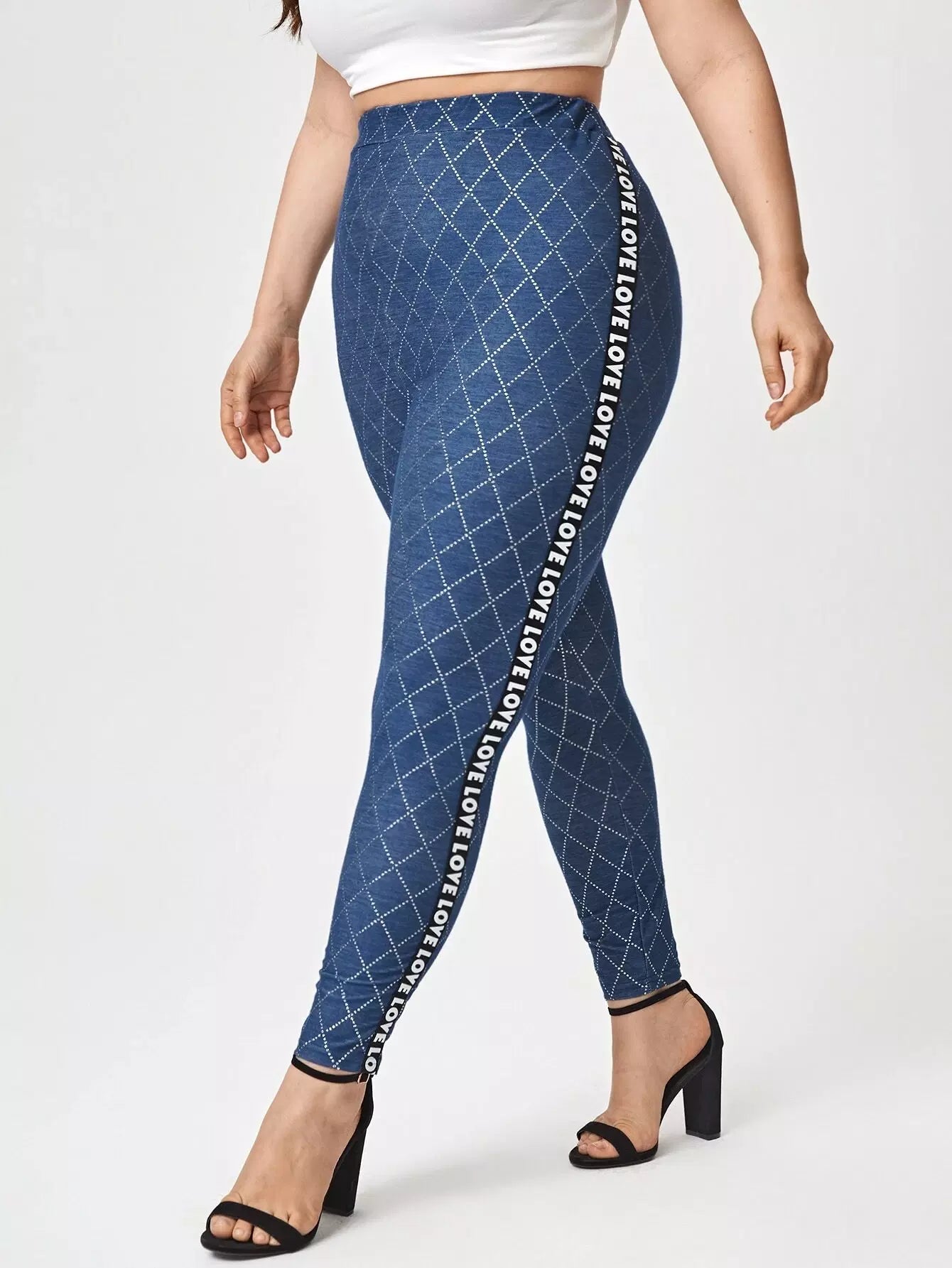 بنطلون ضيق منقوش بحروف منقوشة على الجانبين