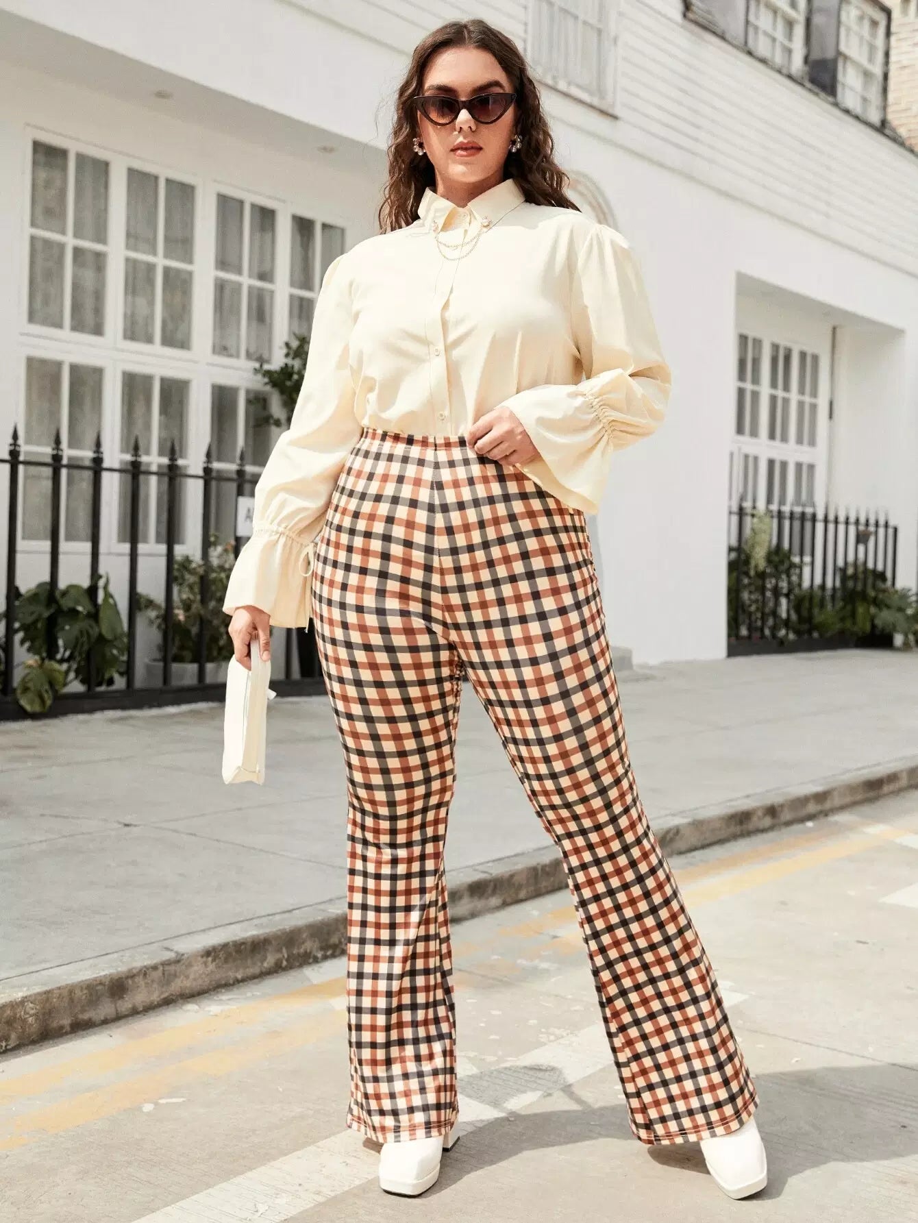 بنطلون بطبعة منقوشة منقوشة زائد واسع الساقين