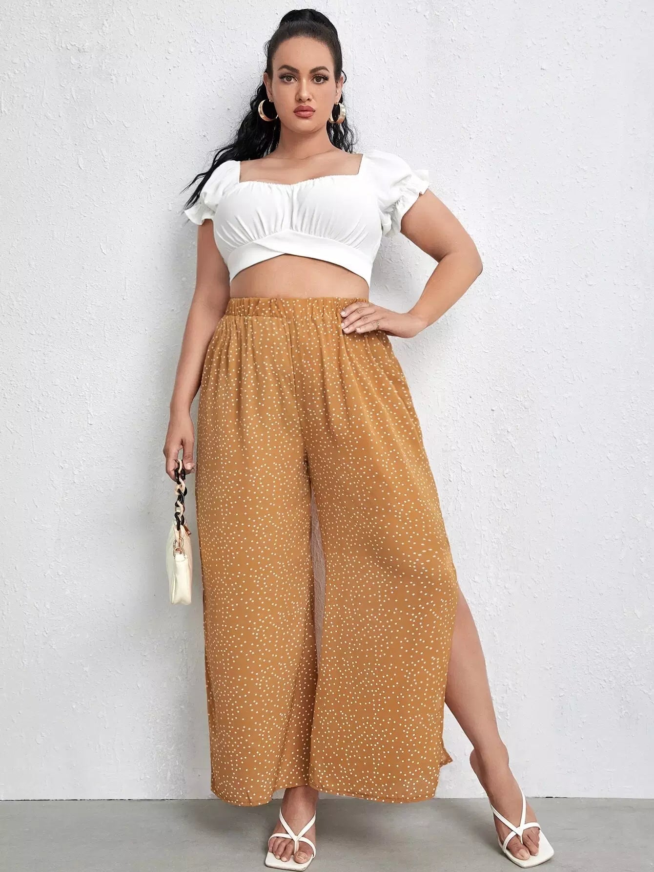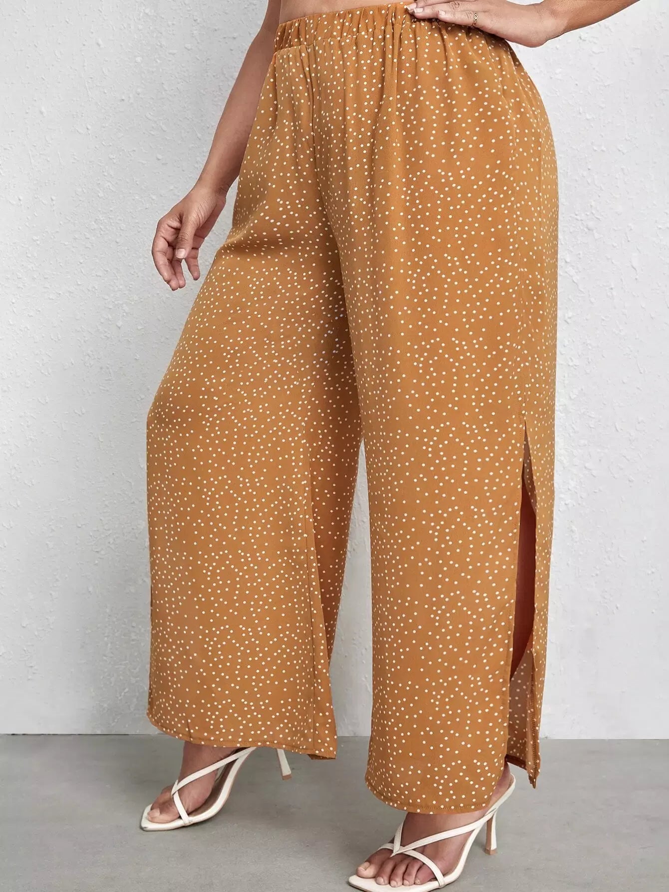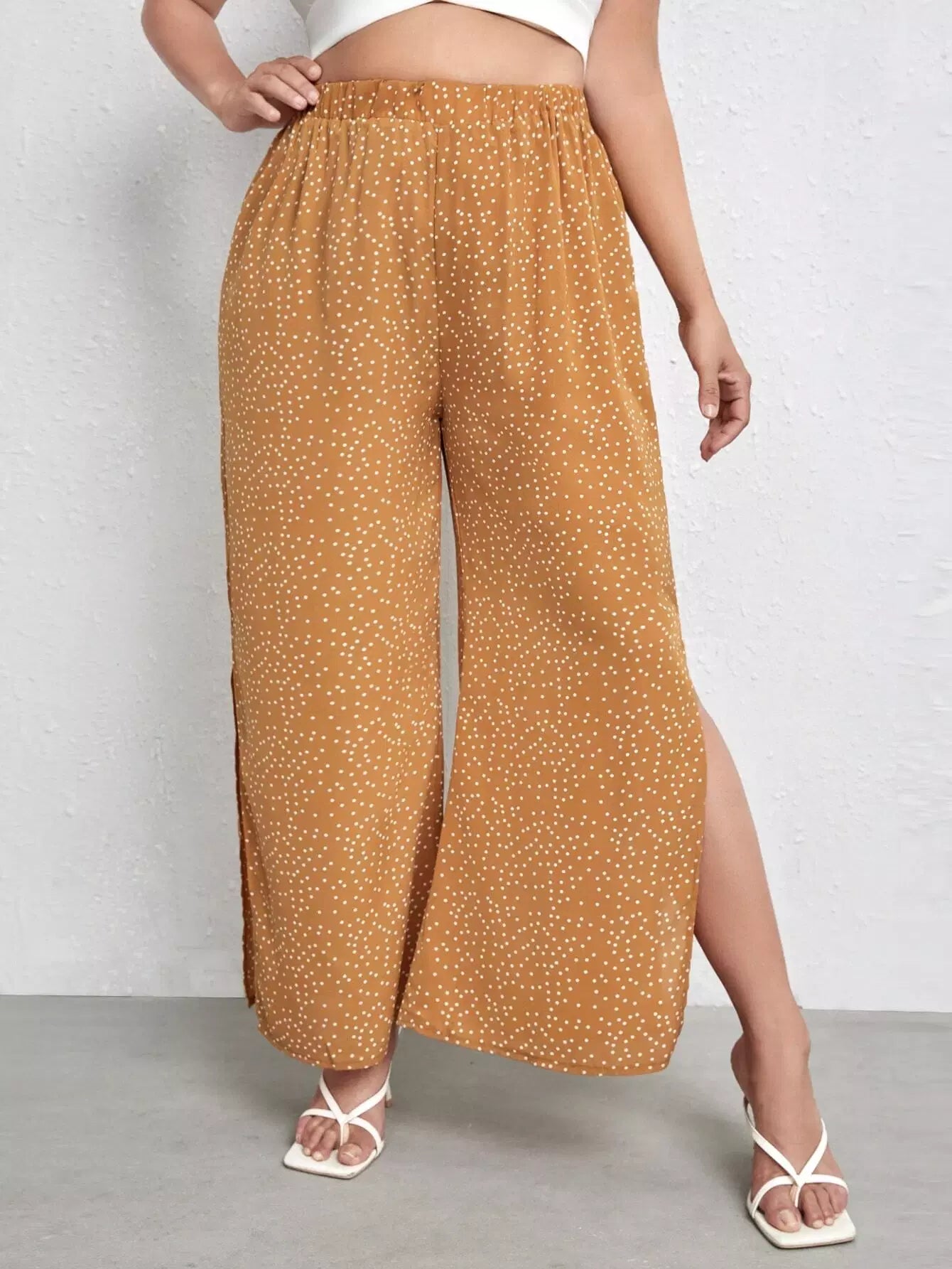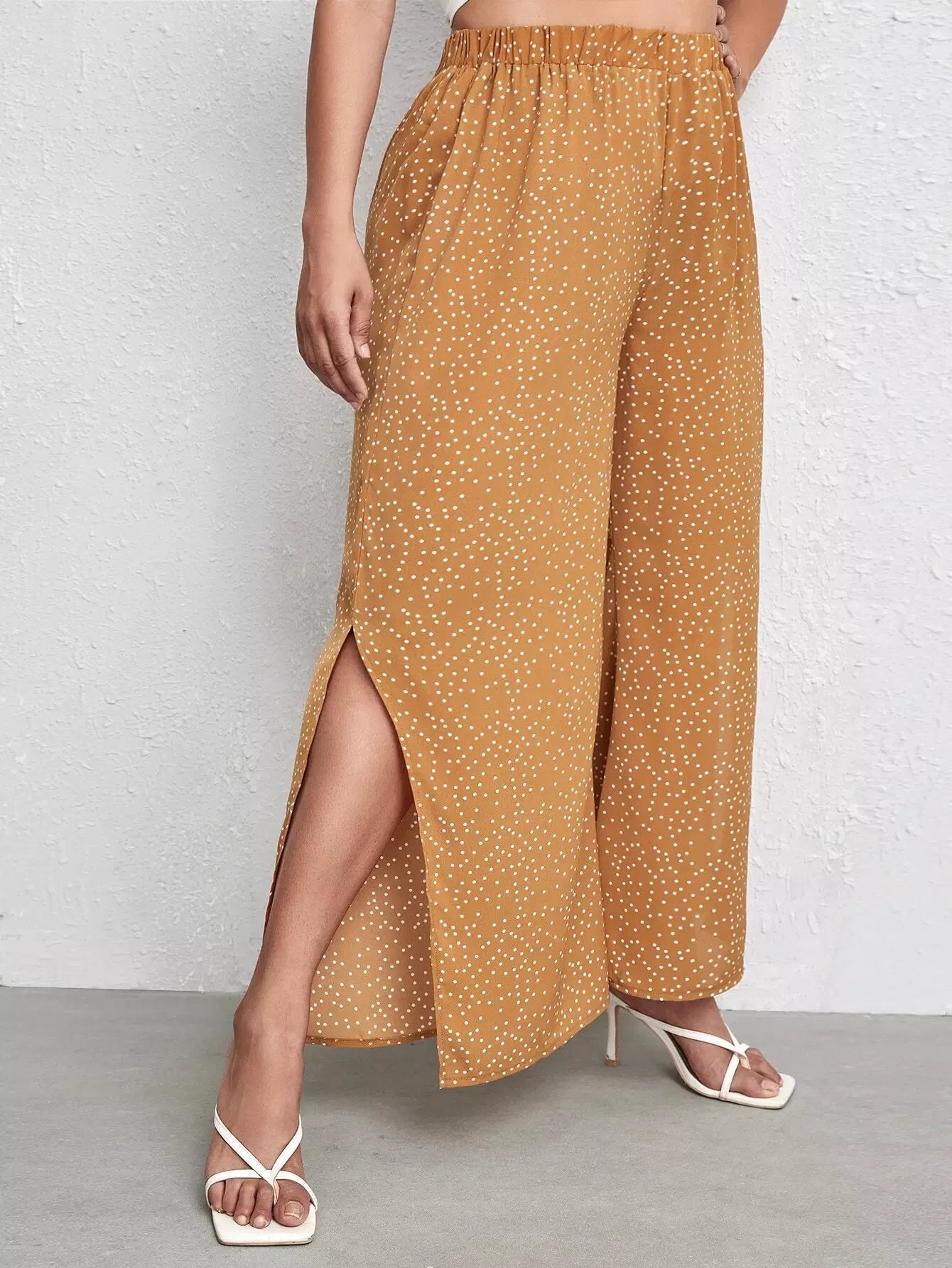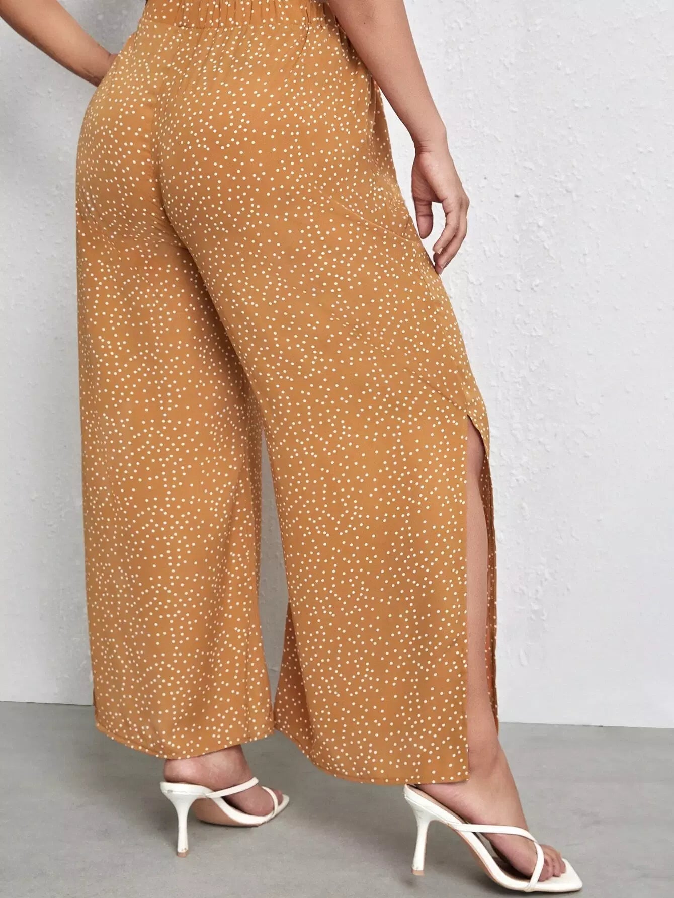 بنطلون برقع منقّطة منقّطة منقسمة الحواف واسعة الساقين