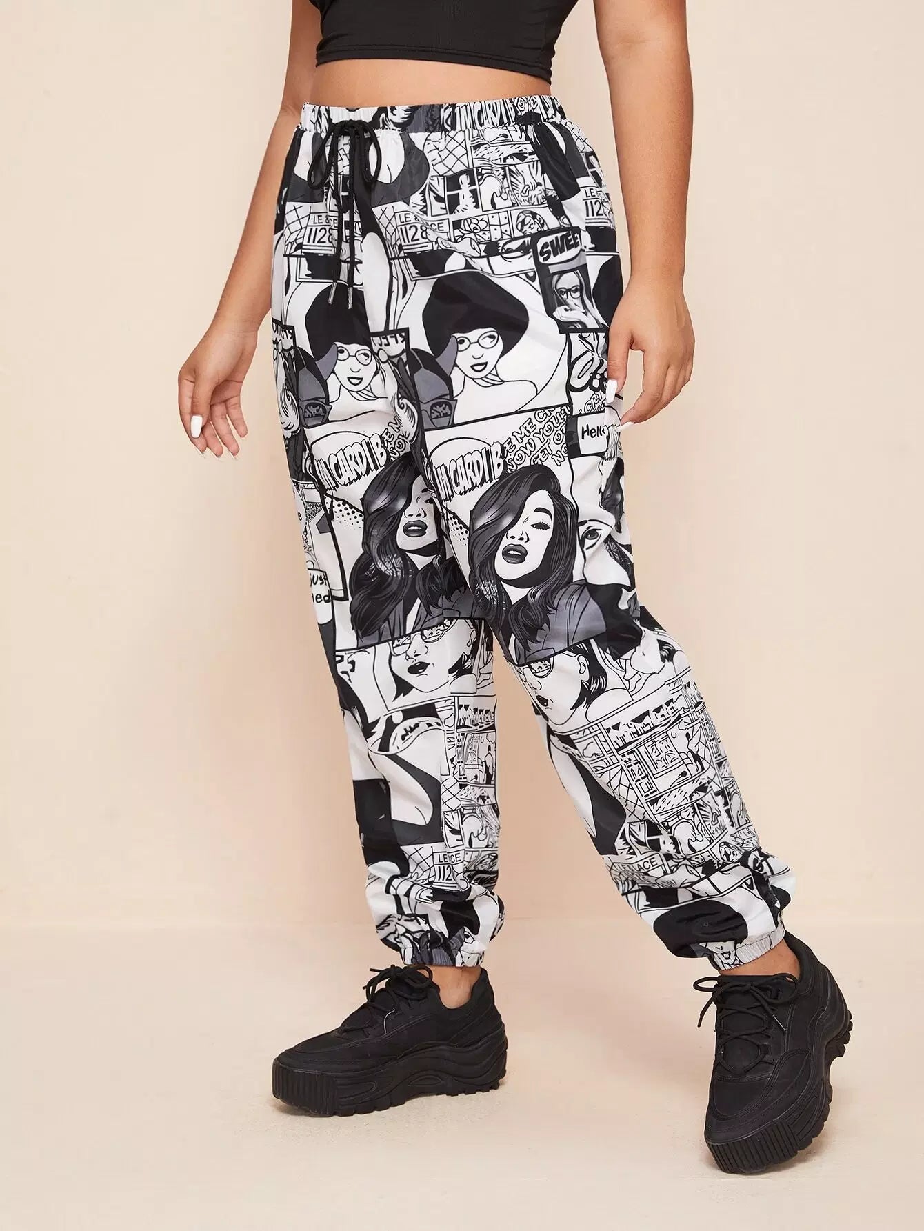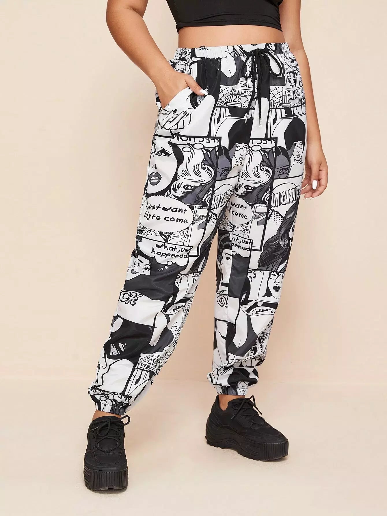 بنطلون رياح مائل الجيب مائل الجيب بطبعة فن البوب بلس