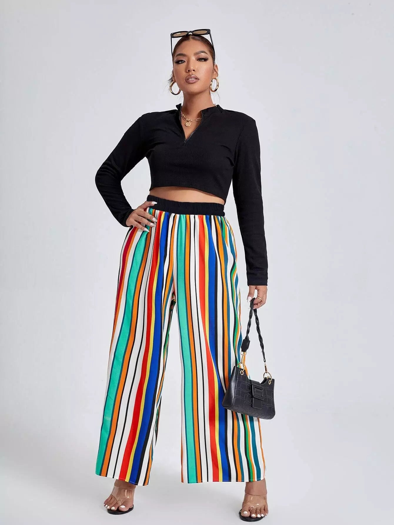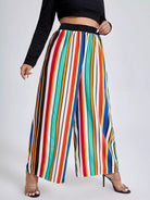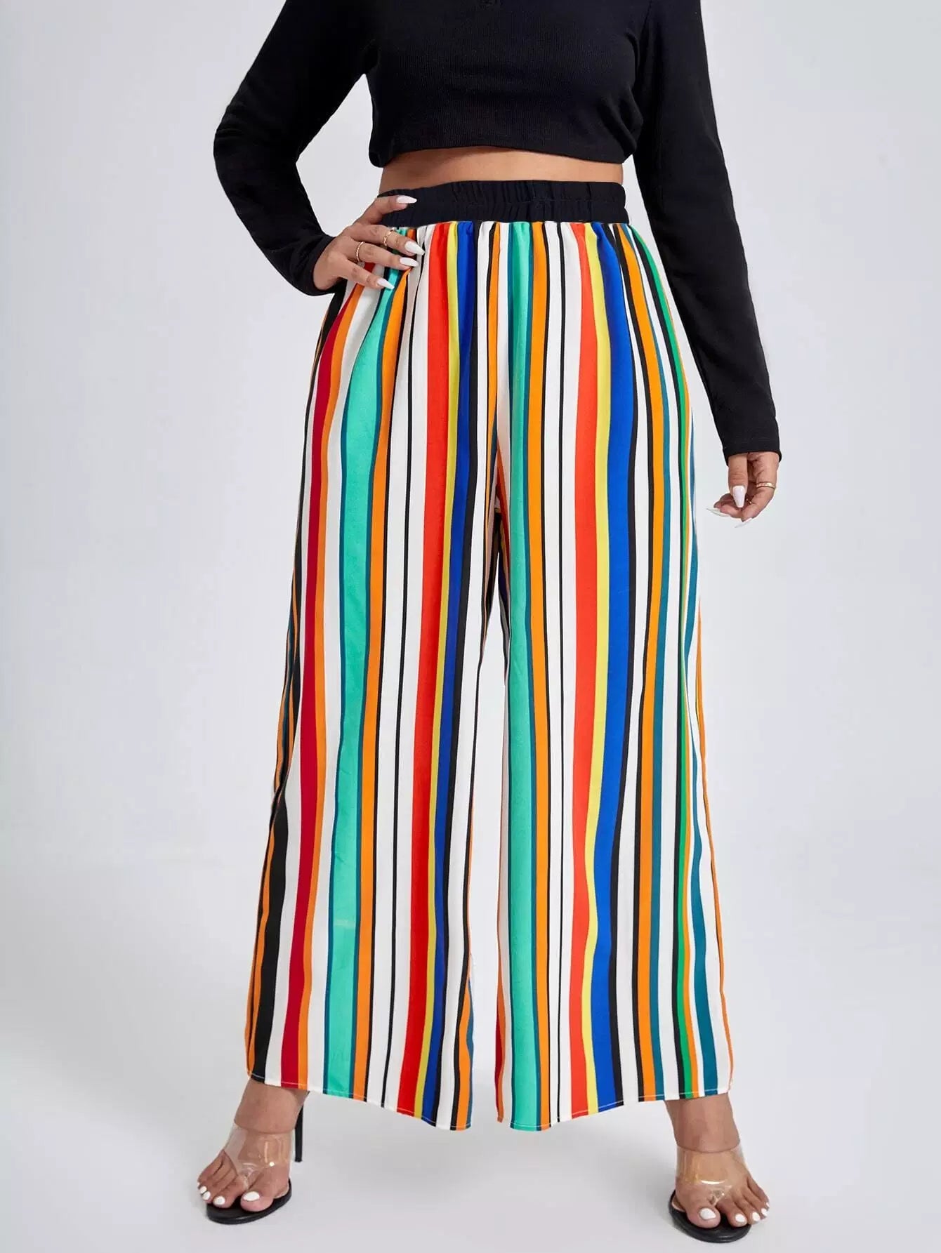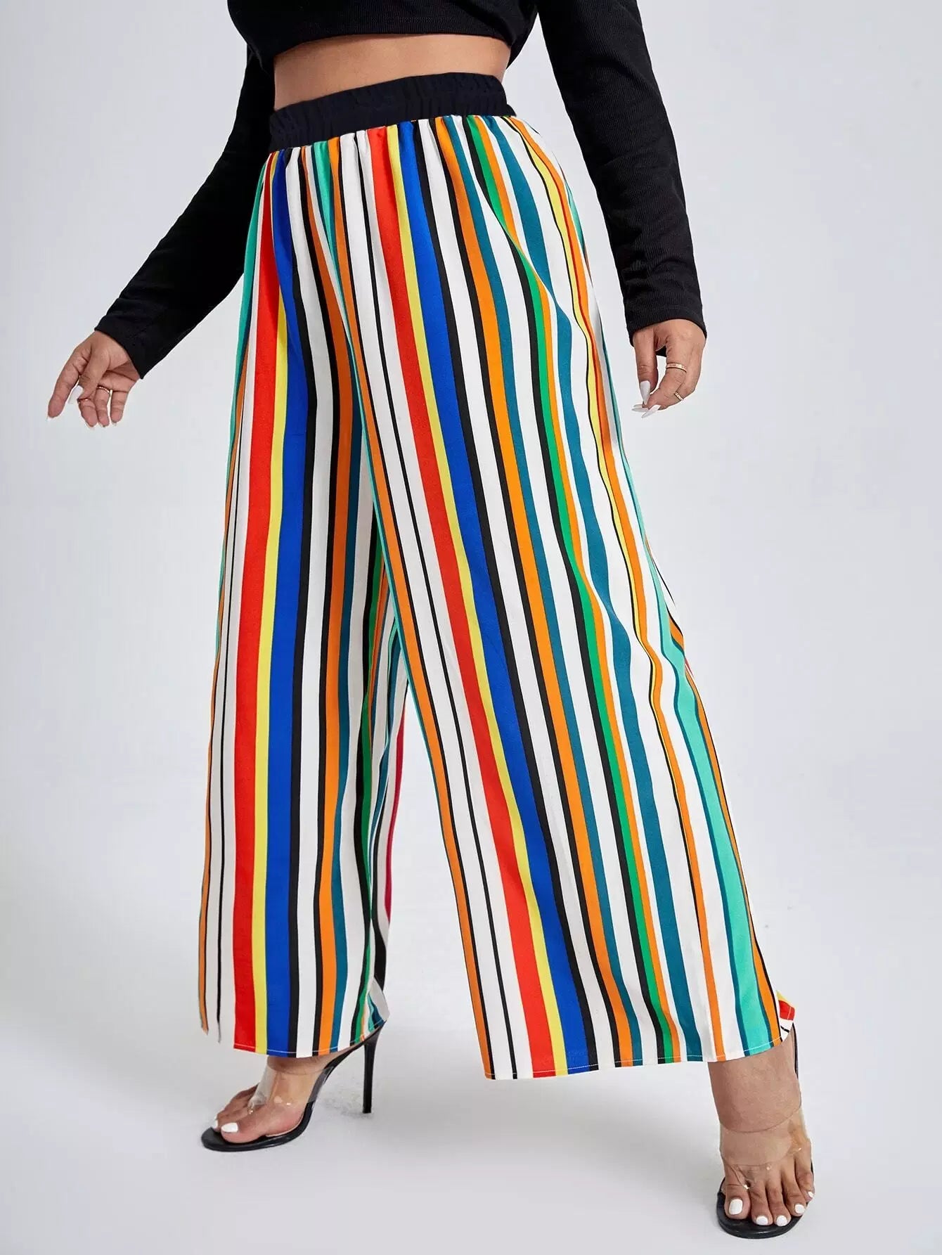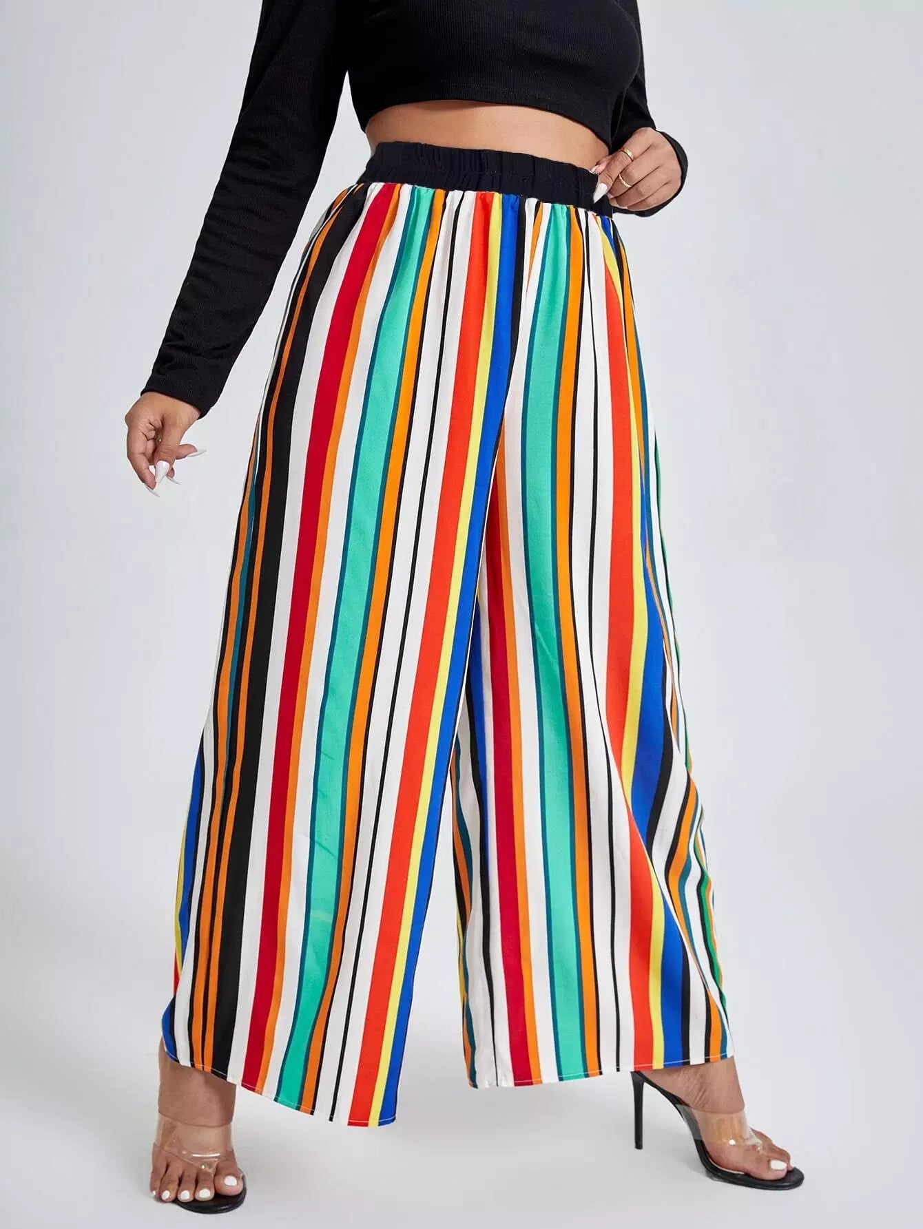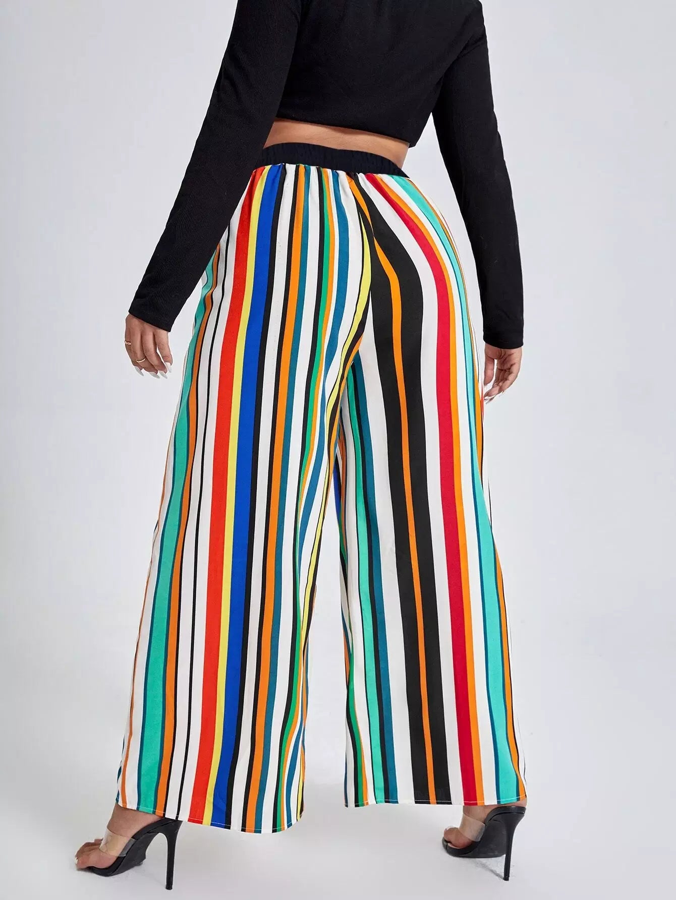 بنطلون واسع الساقين مخطط بألوان قوس قزح زائد
