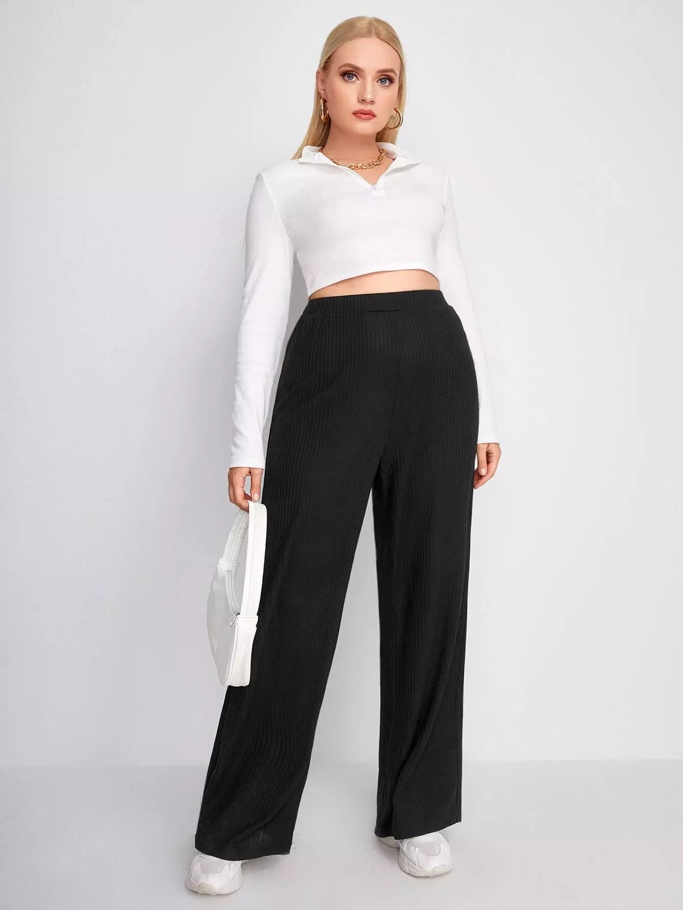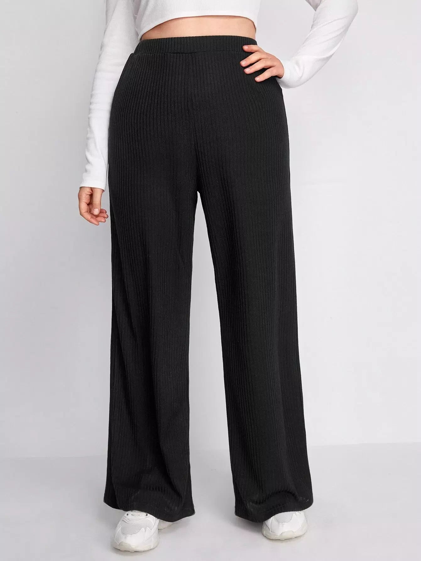 بنطلون واسع الساقين محبوك من نسيج مضلع زائد