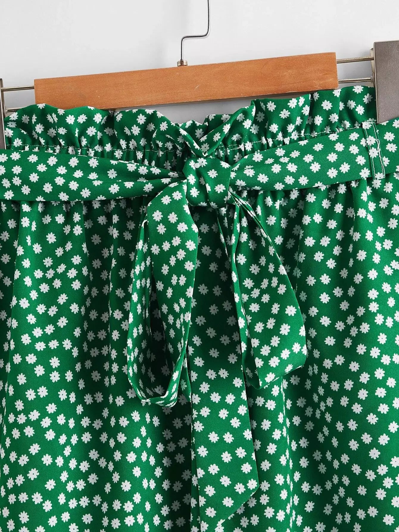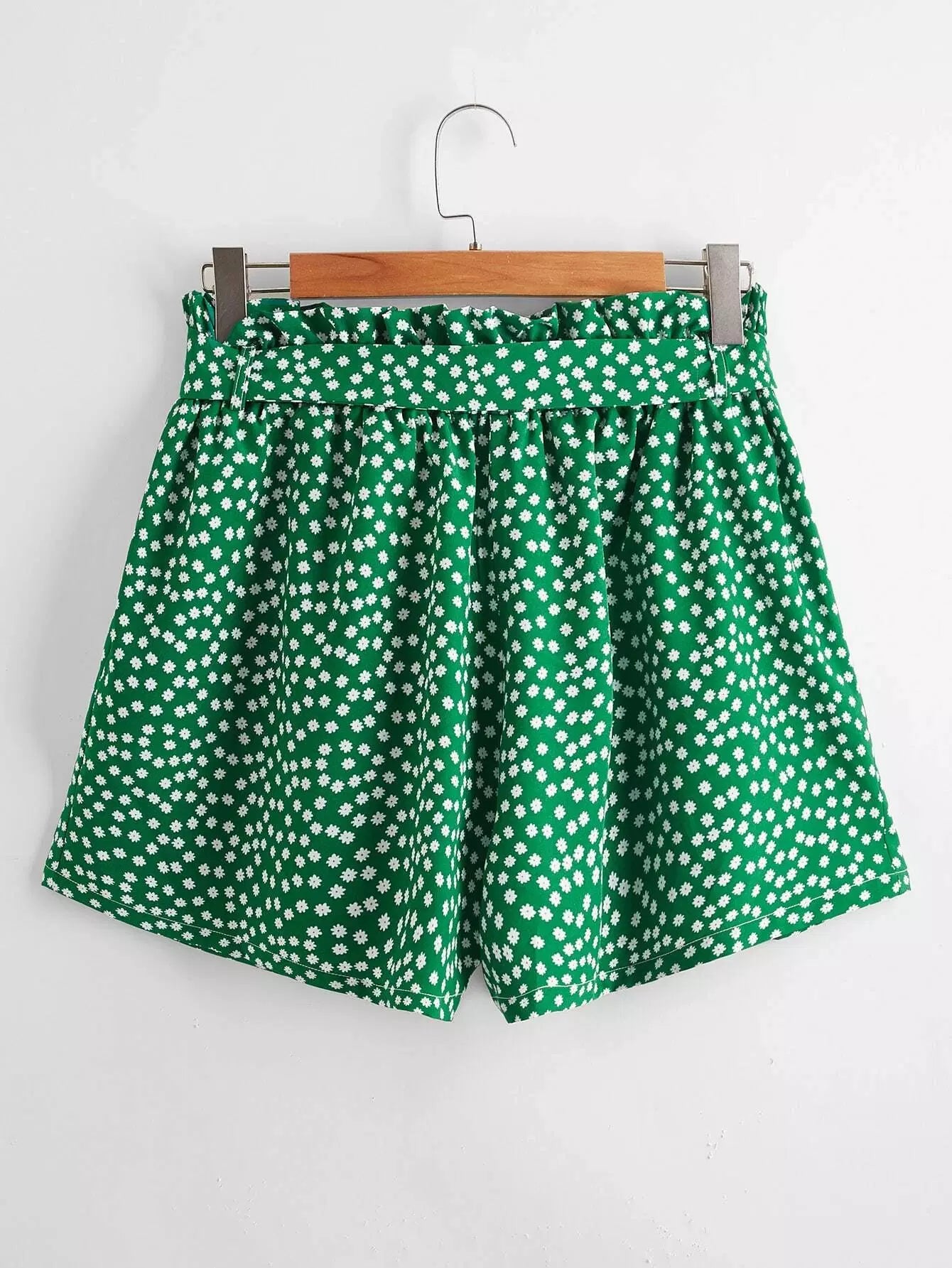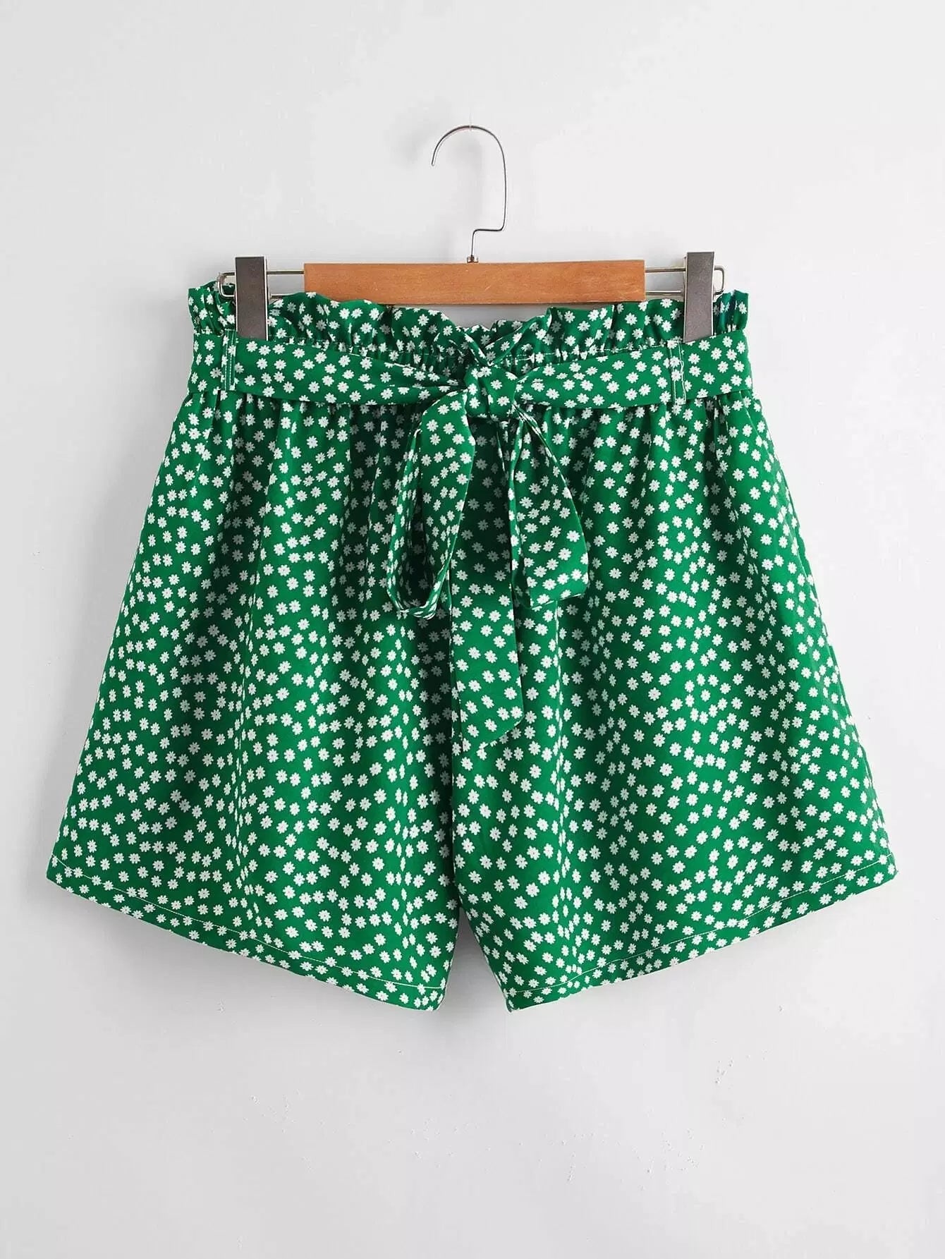 نحيف - مقاس كبير شورت خصر بحزام ورقي متين