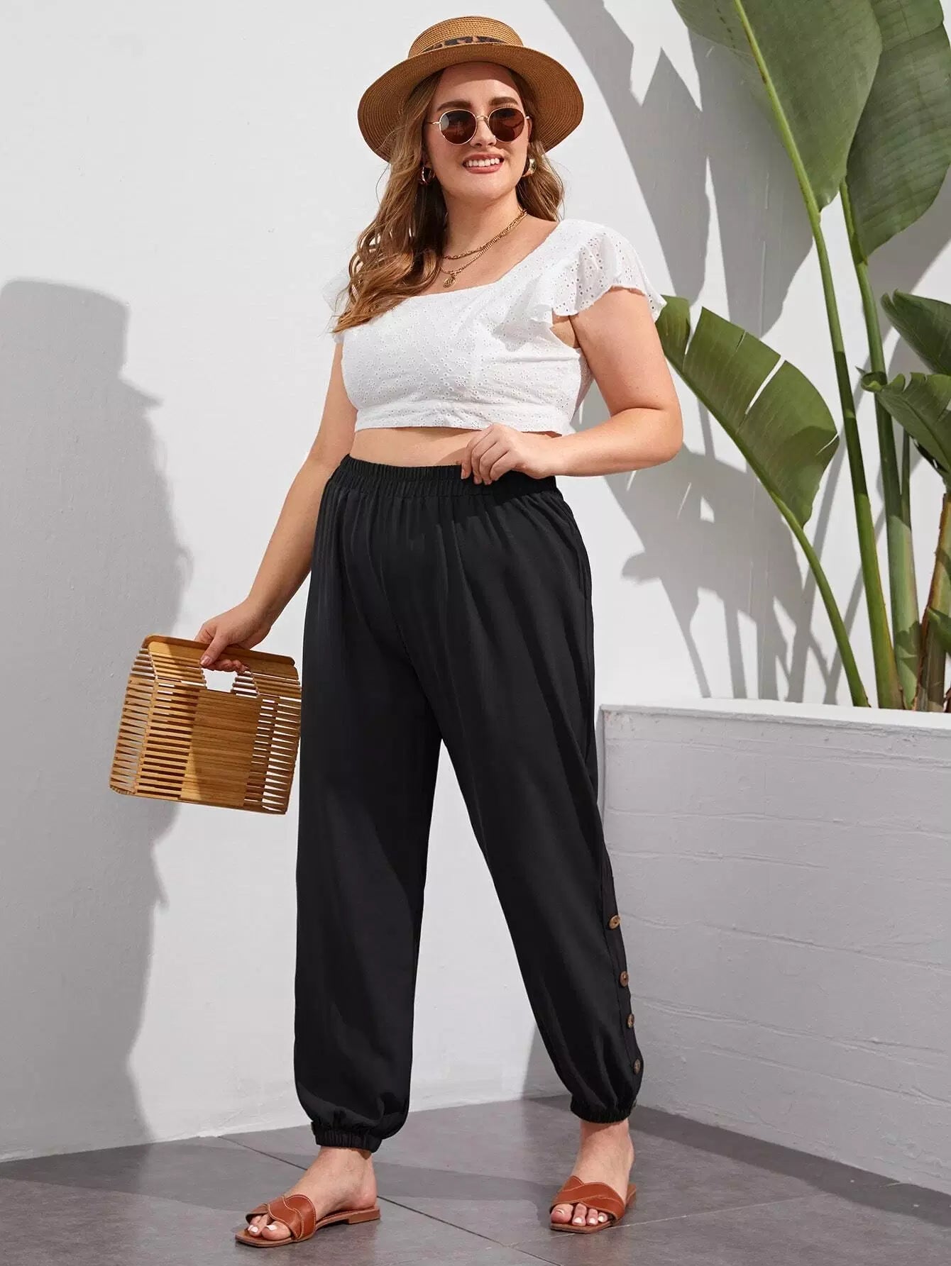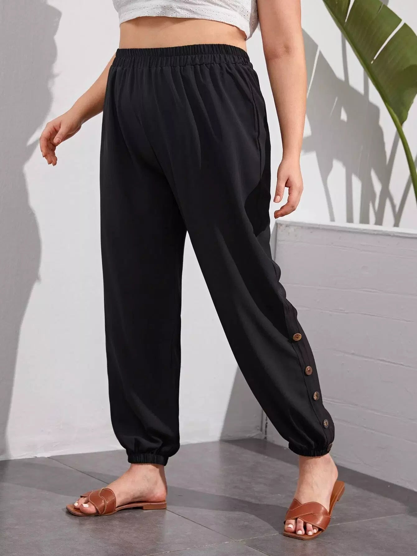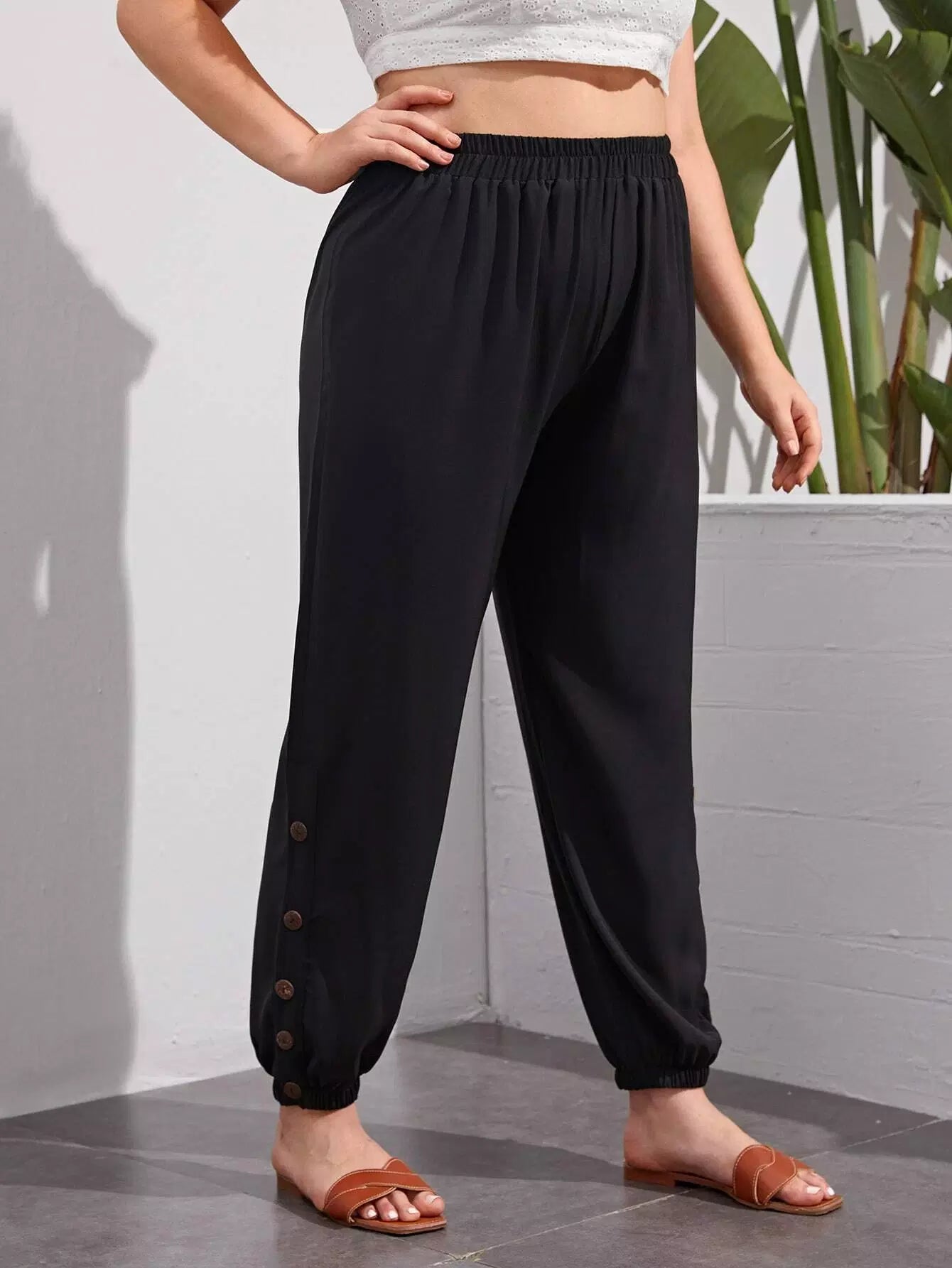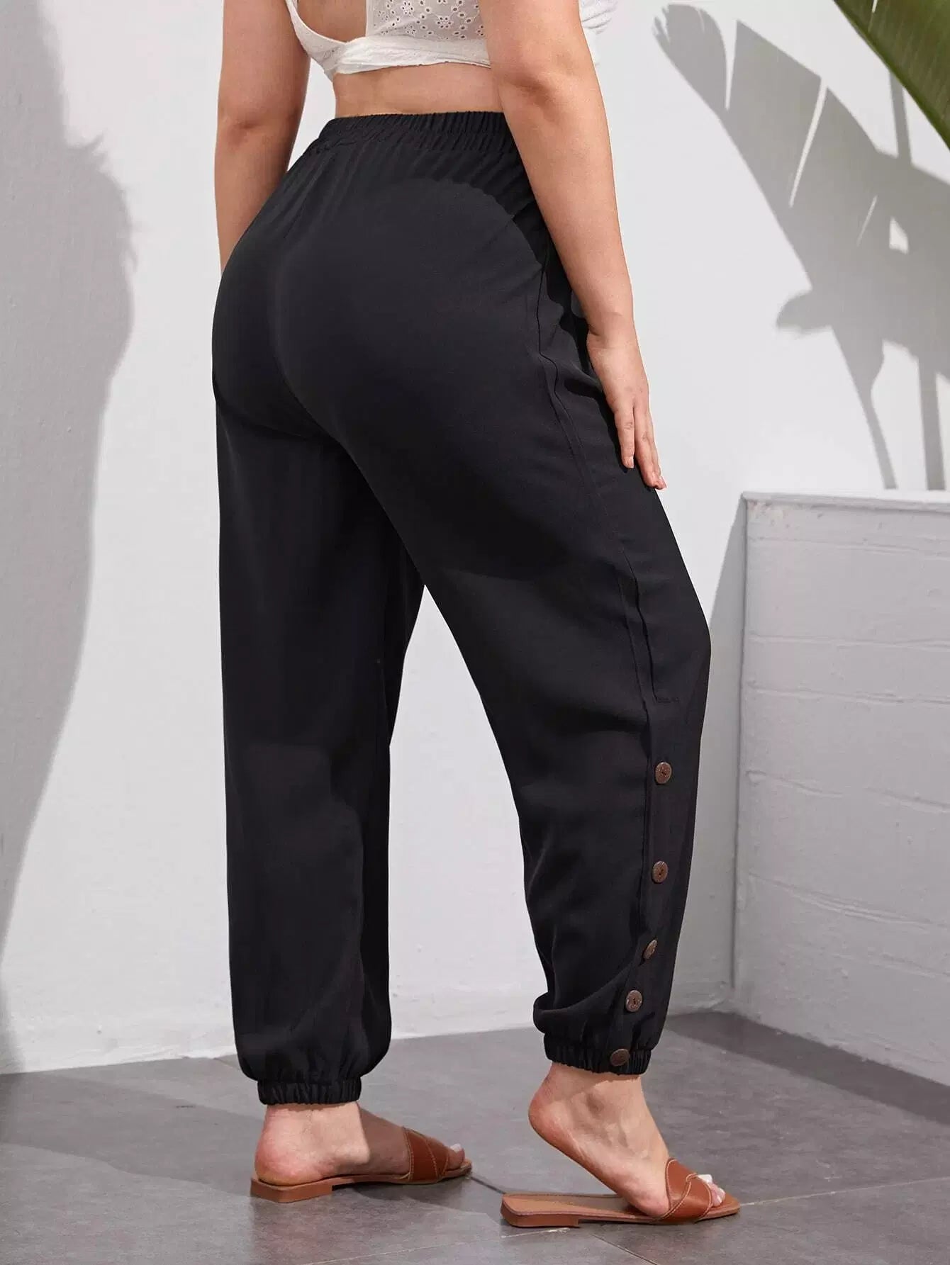 بنطلون سادة بأزرار جانبية سادة بلاس