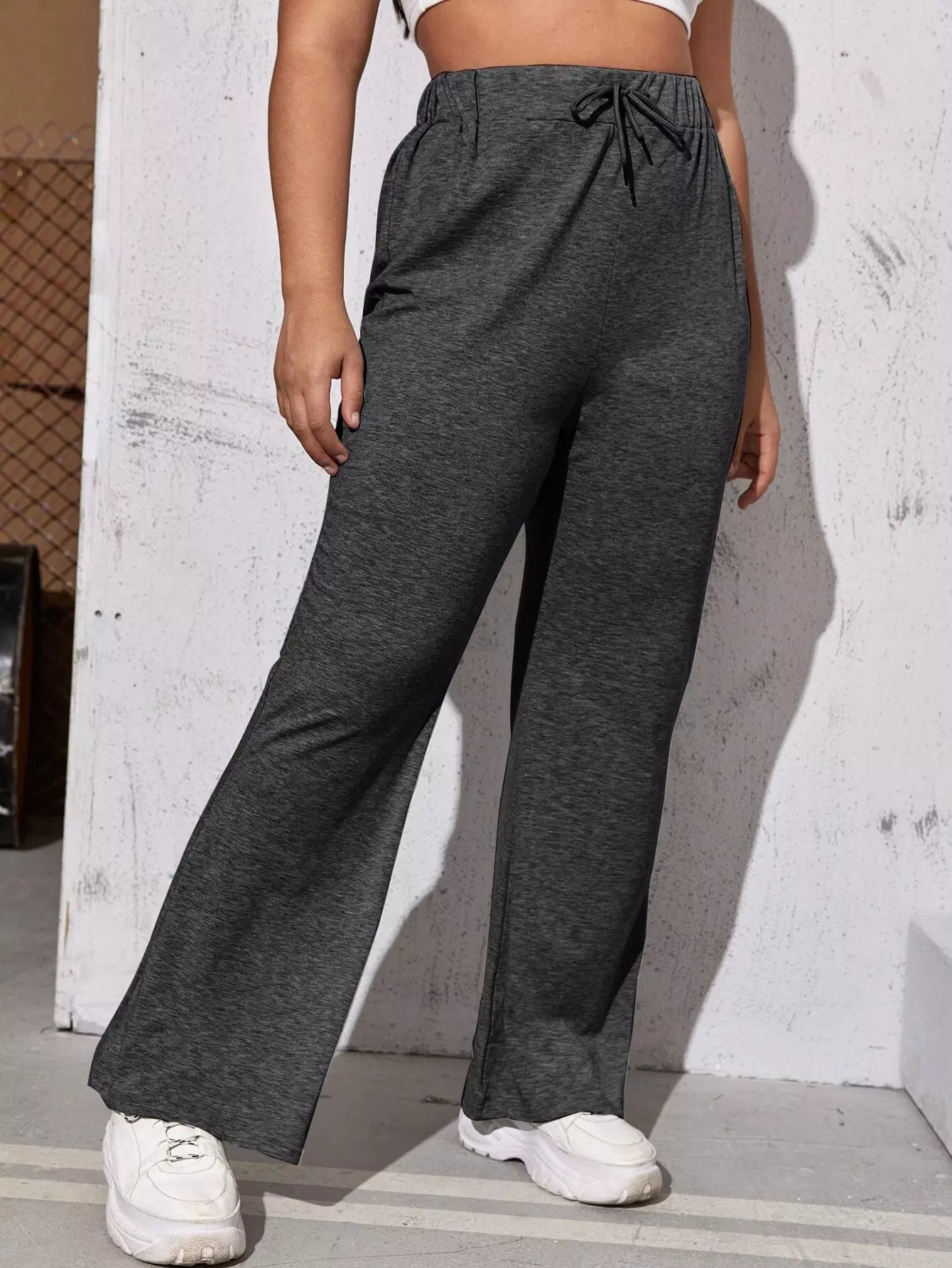 بنطال رياضي ضيق الخصر برباط خصر سادة بلس