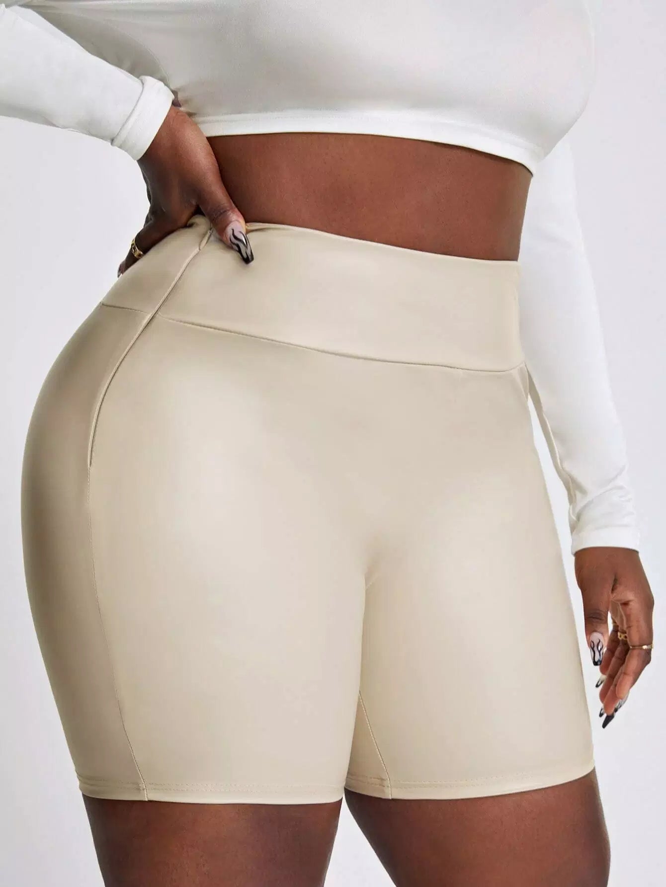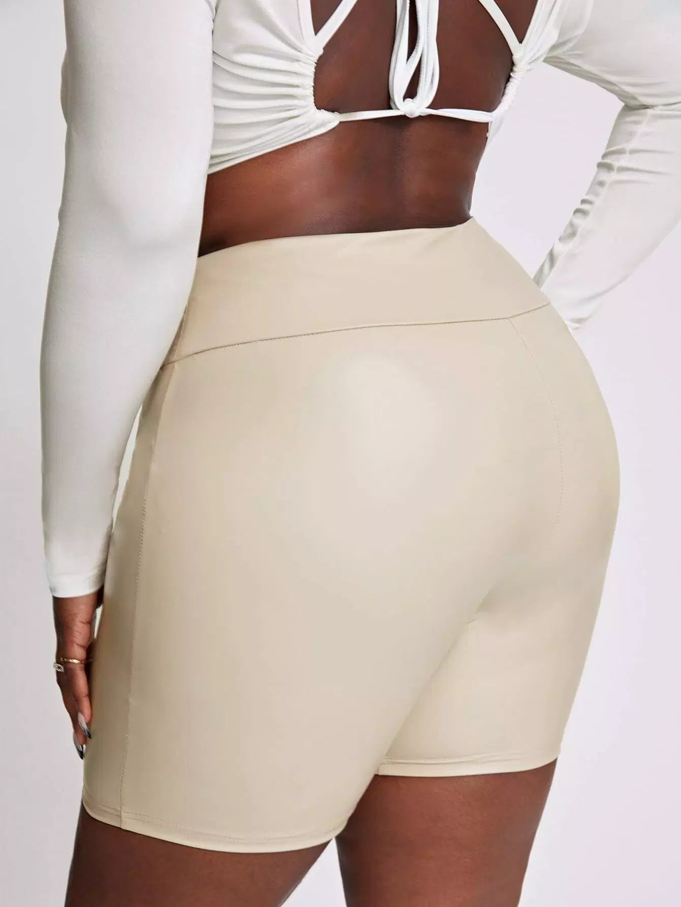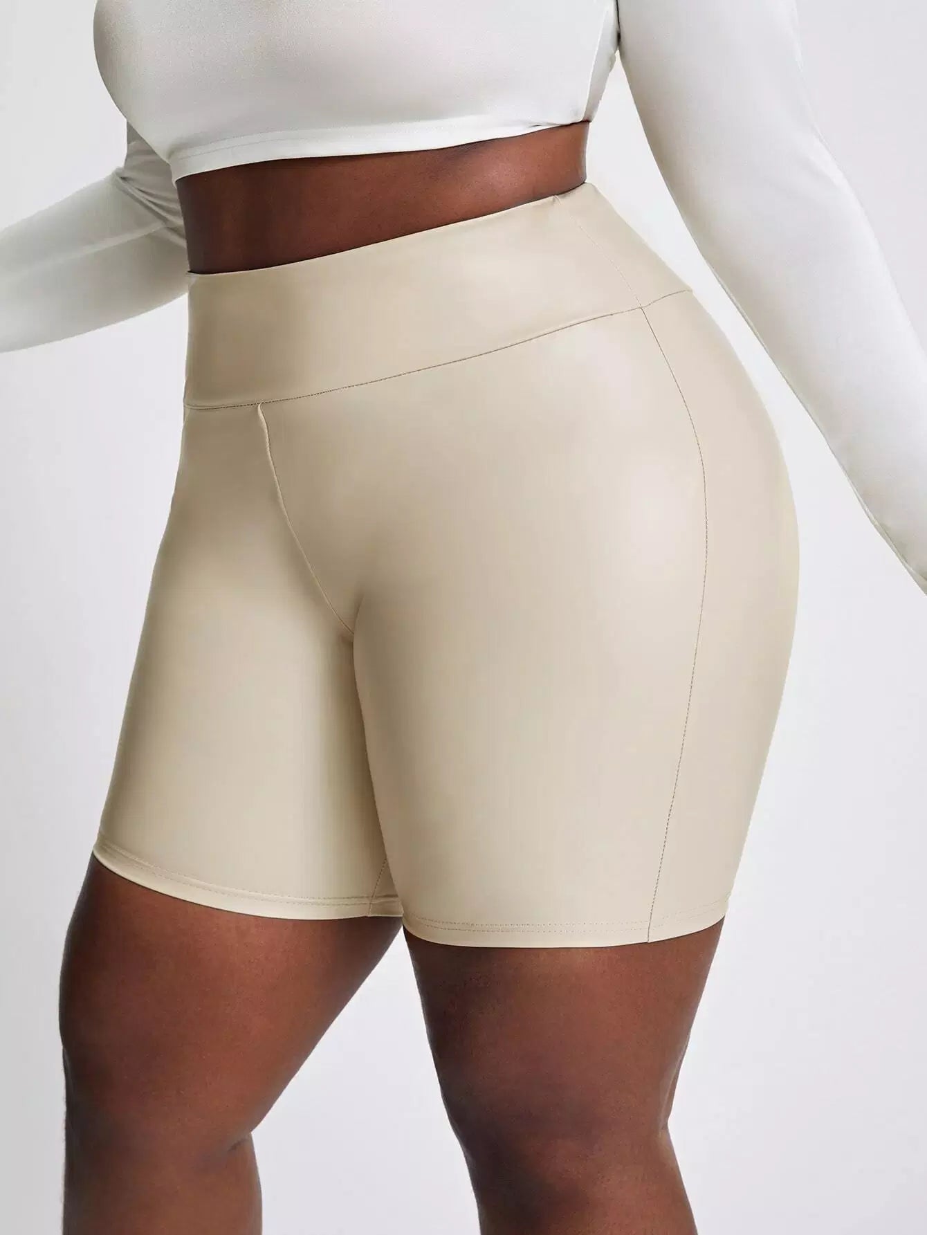 سروال قصير من جلد البولي يوريثان السادة بلس