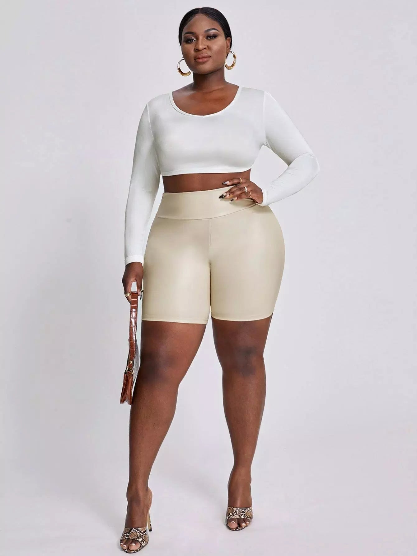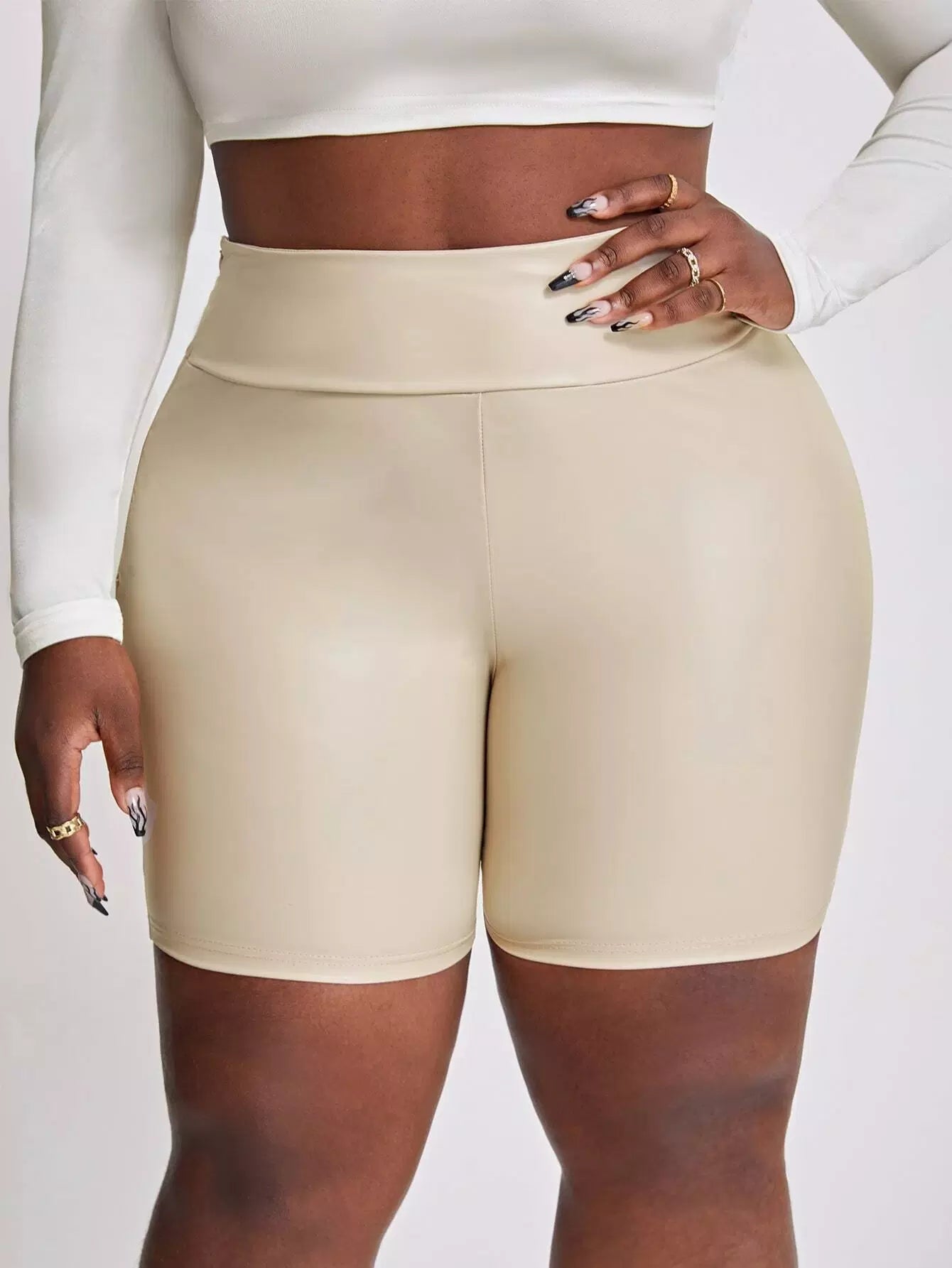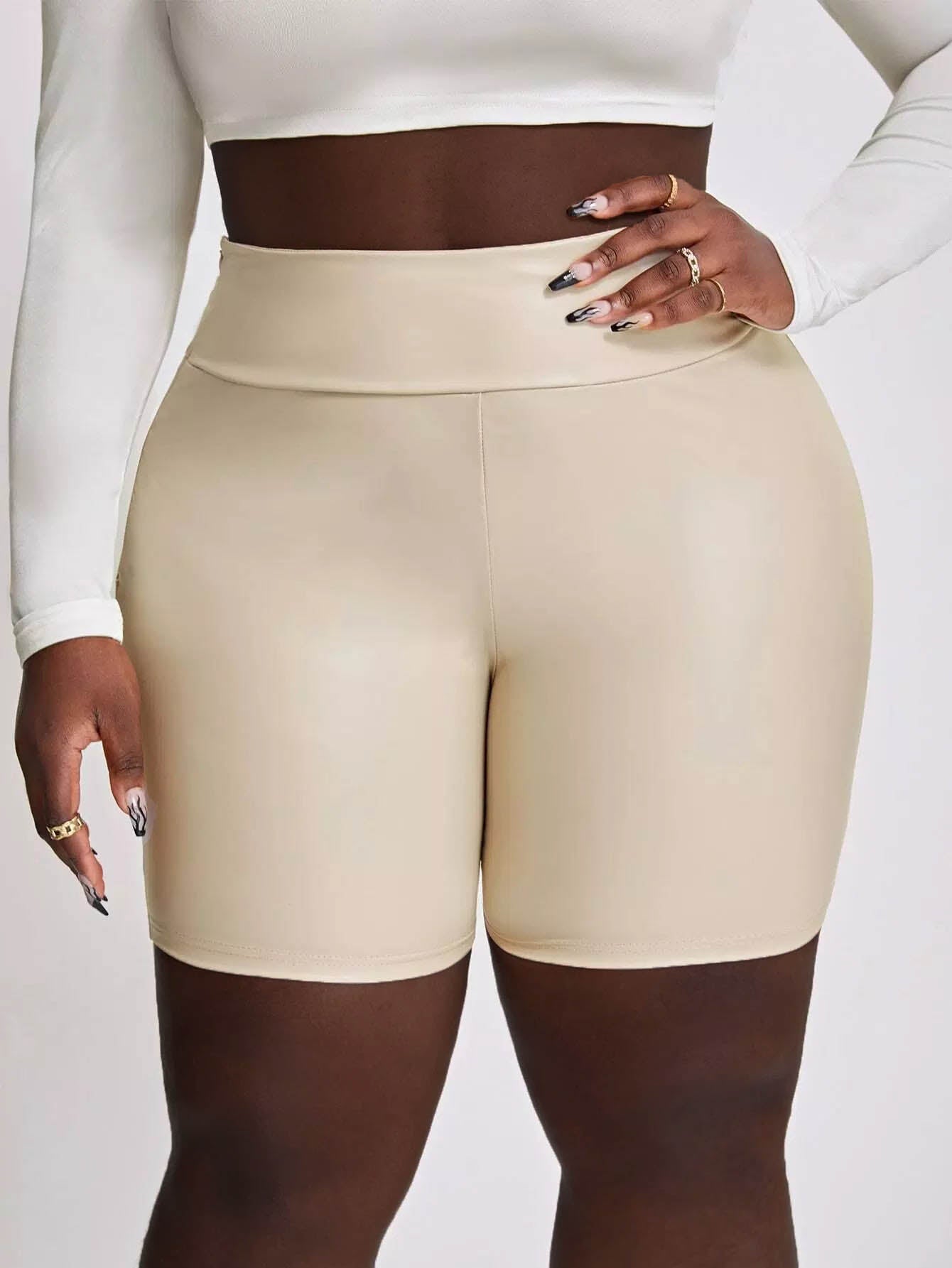 سروال قصير من جلد البولي يوريثان السادة بلس