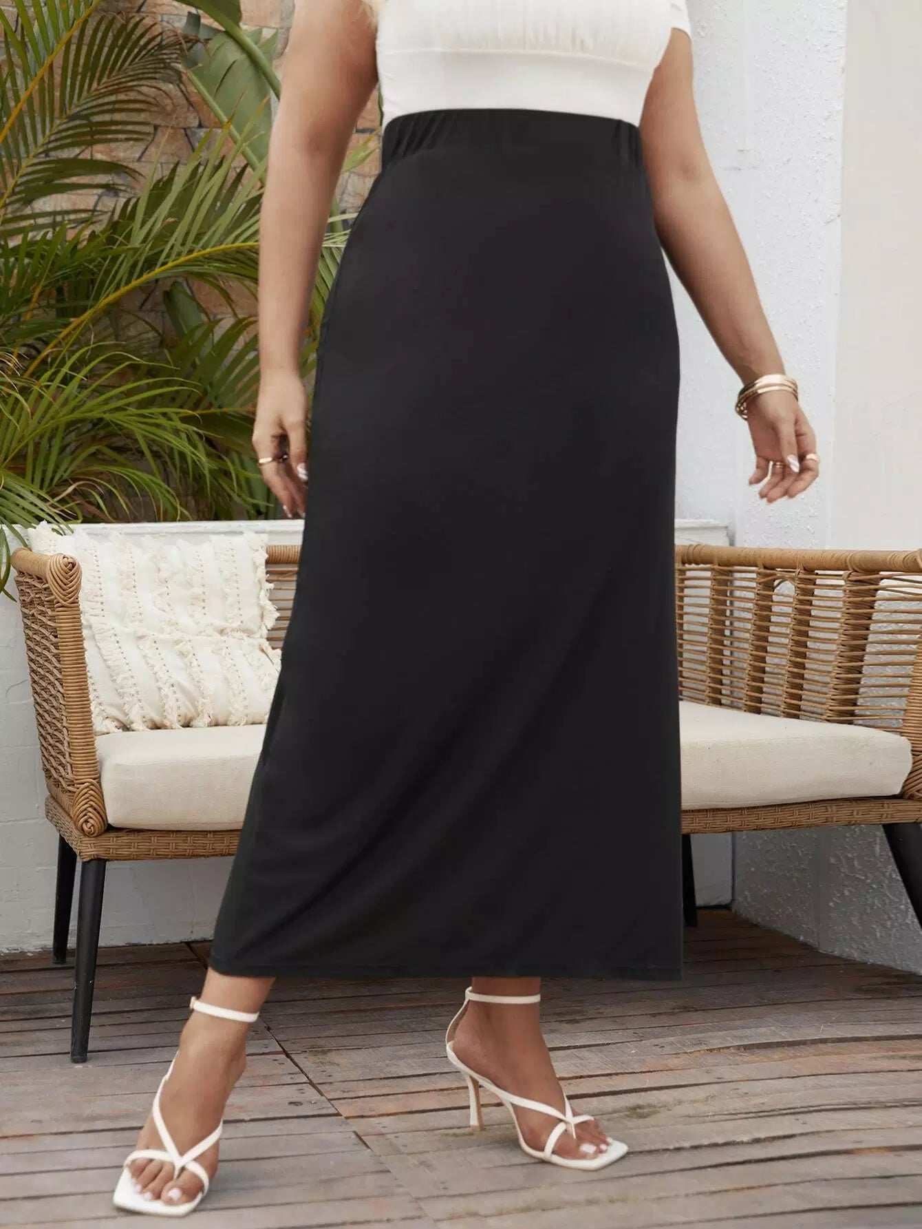تنورة بلاس سادة ذات حافة مشقوقة بلاس