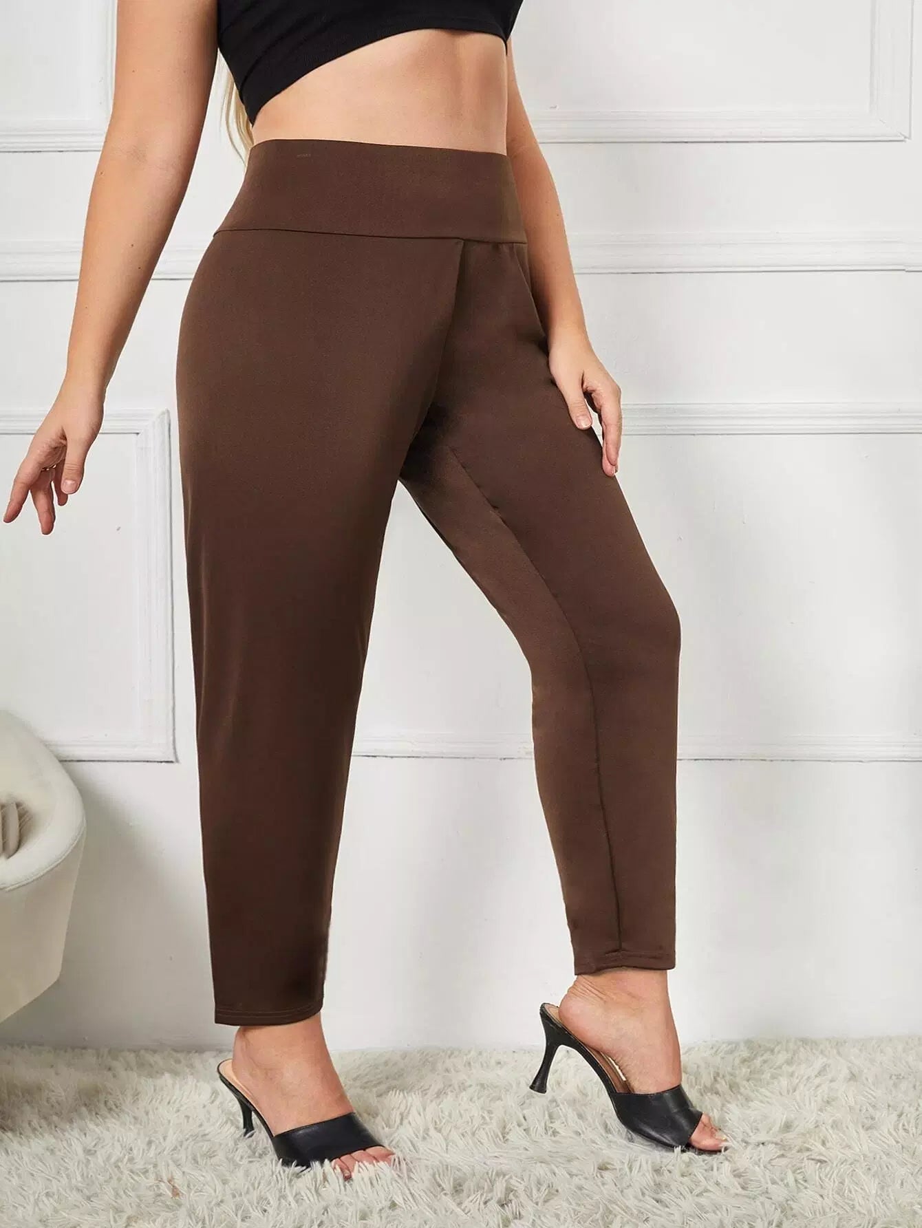 بنطلون ضيق بخصر عريض الخصر سادة بلس