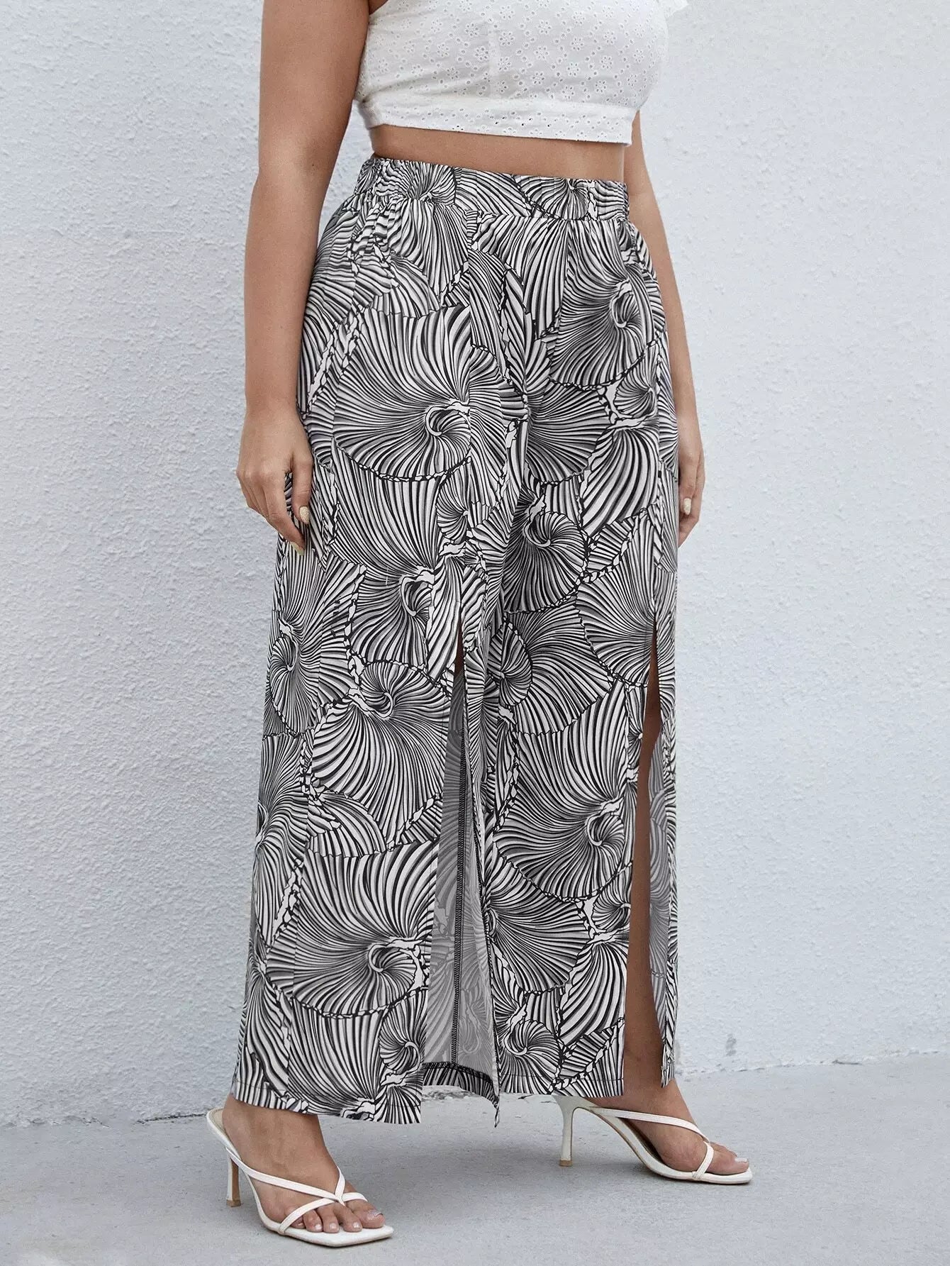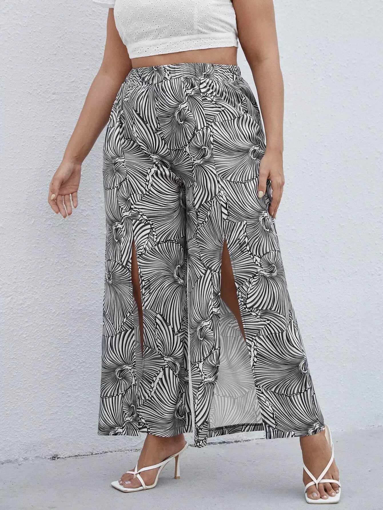 بنطلون بطبعة فوق الفخذين منقسمة على الفخذين