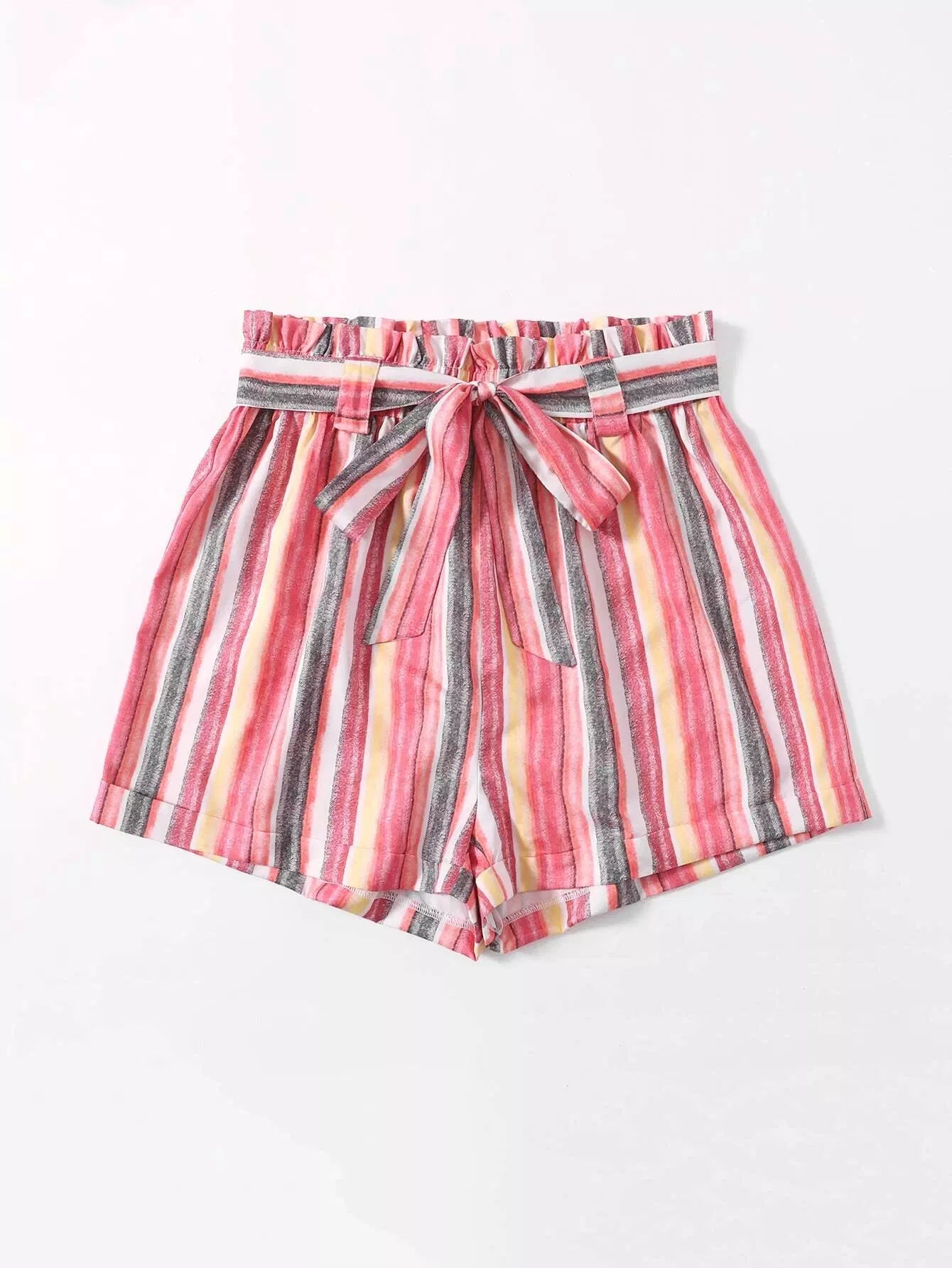 بالإضافة إلى شورت Paperbag مخطط بدون حزام
