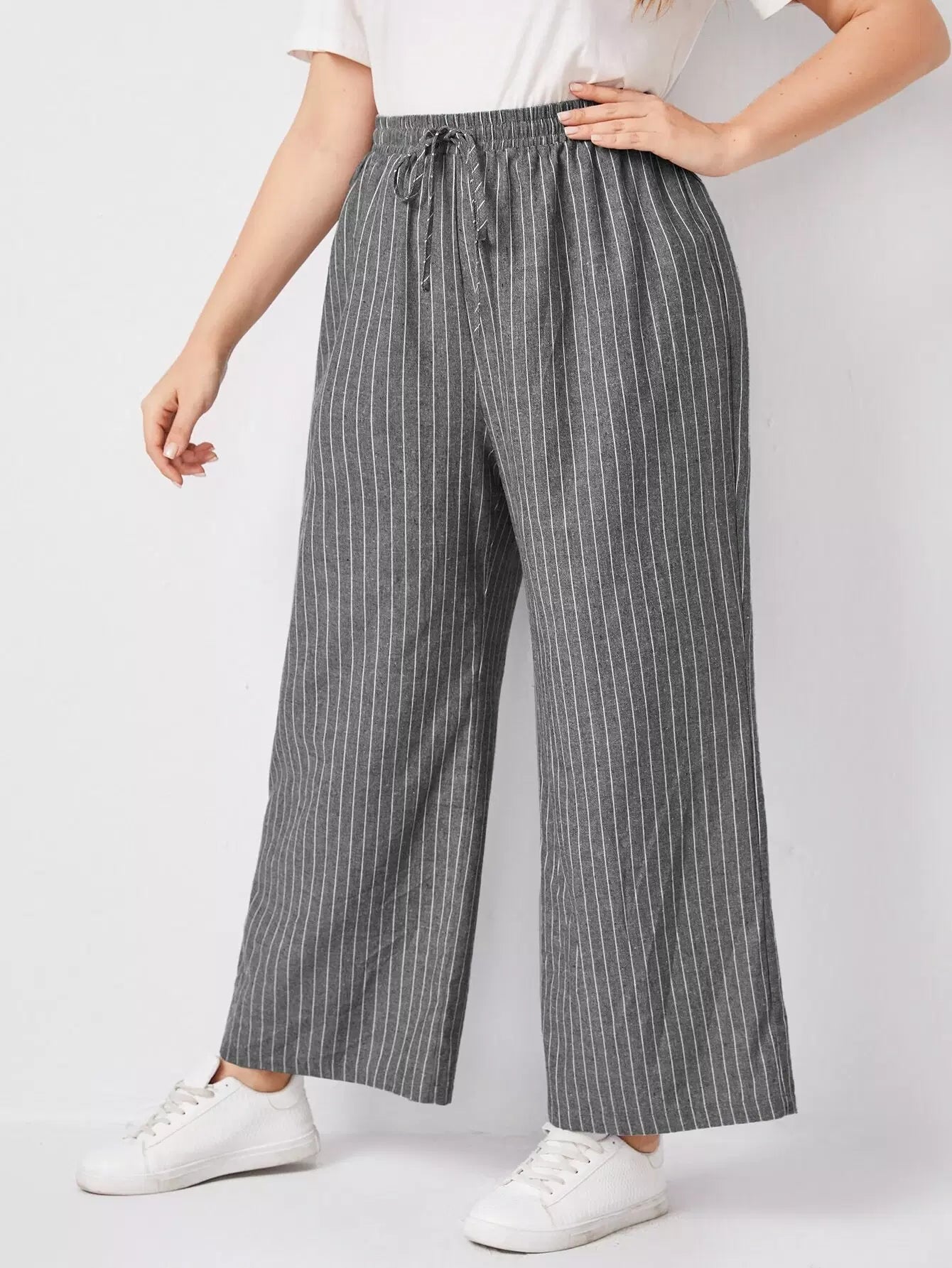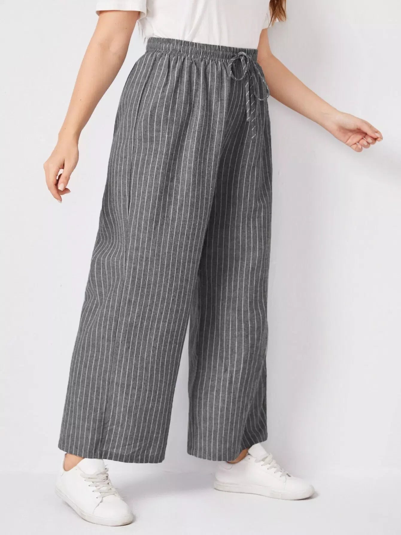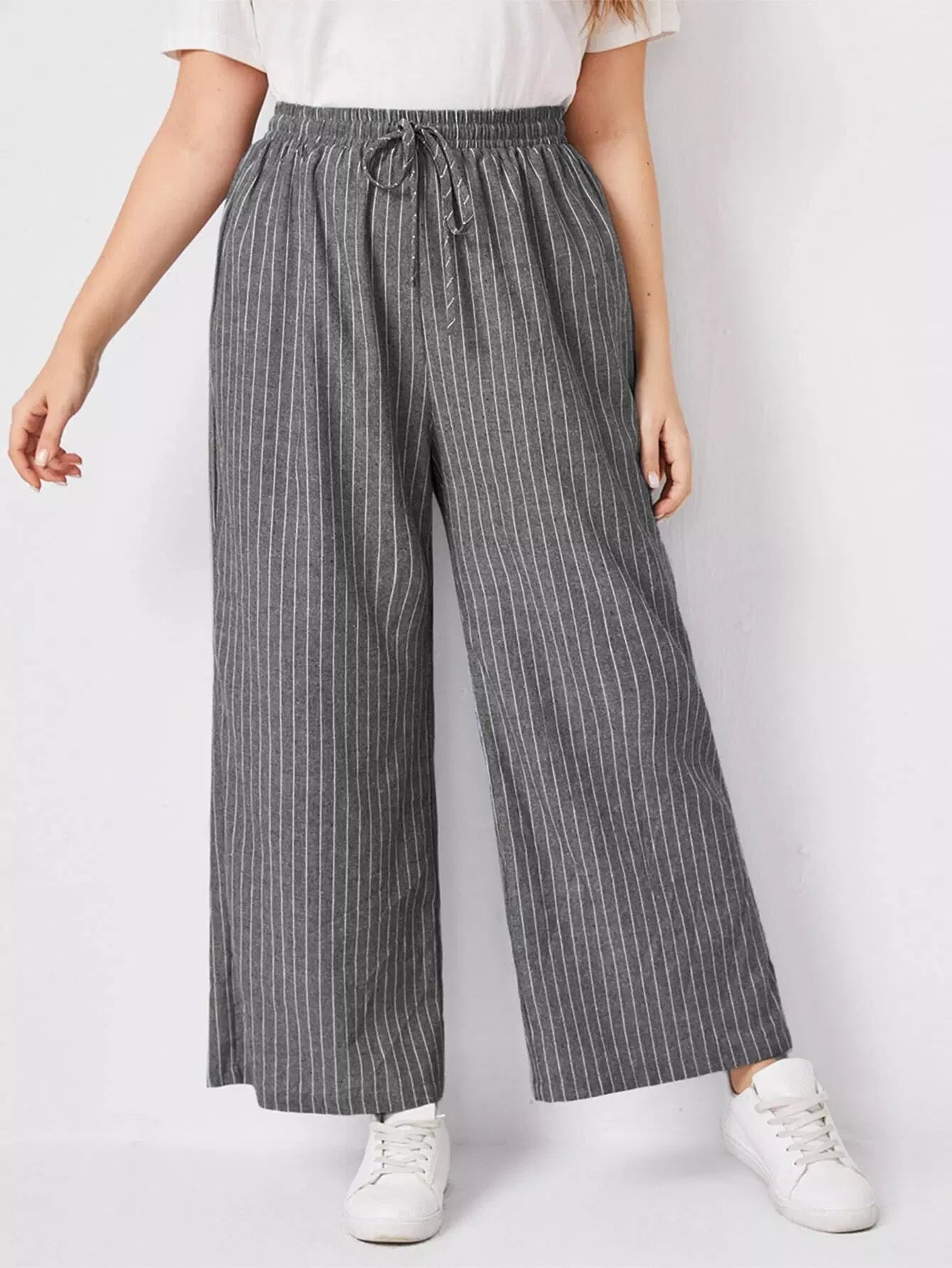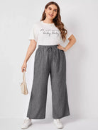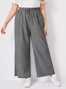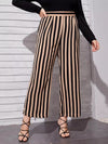 بنطلون مخطط عريض الساقين مخطط زائد