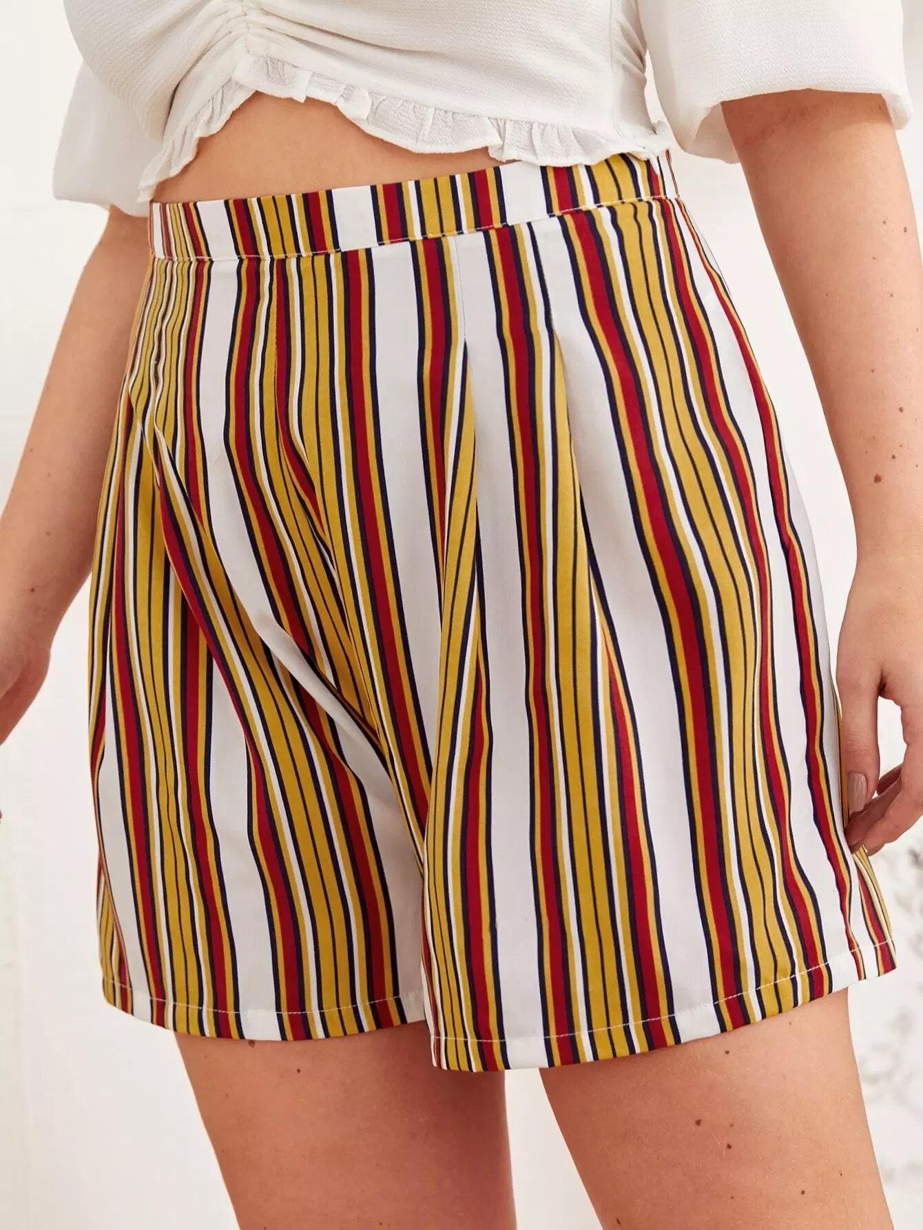 شورت قصير مخطط عريض الساقين عريض الساقين بلس