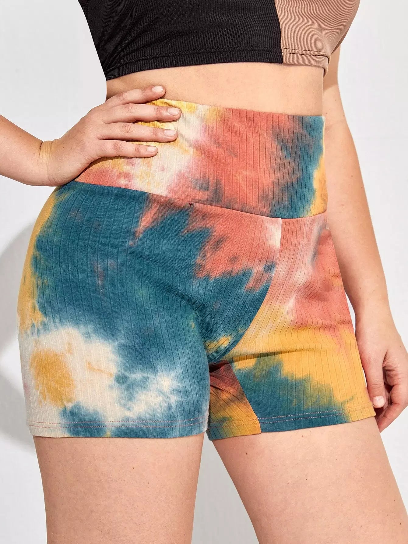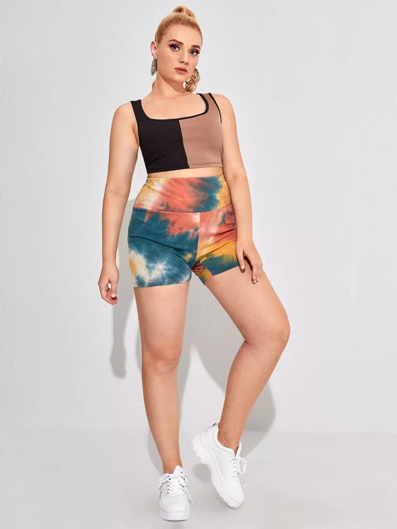 شورت بحزام خصر عريض مصبوغ بربطة عنق عريضة بلس