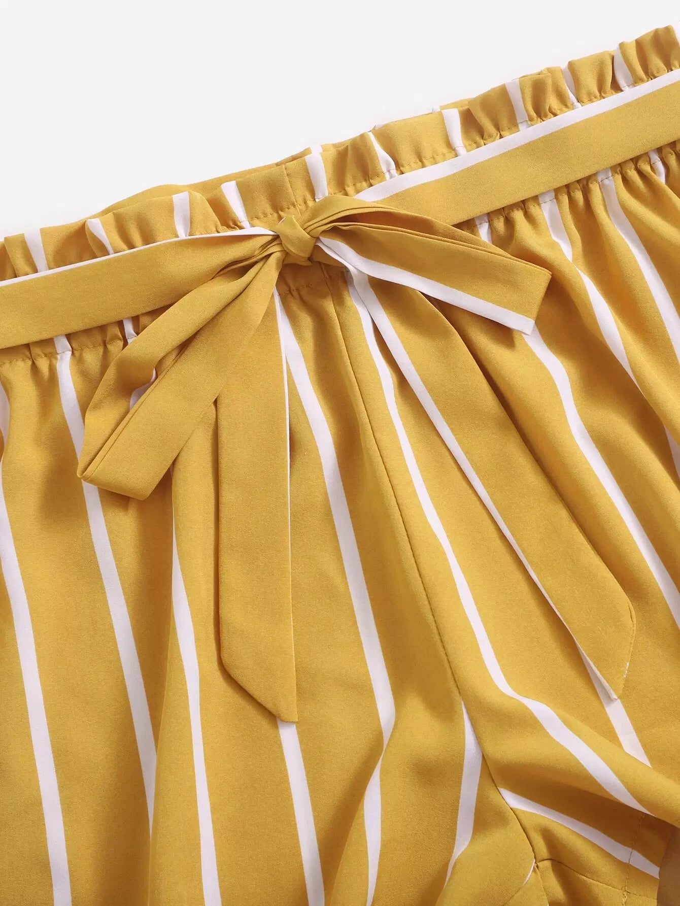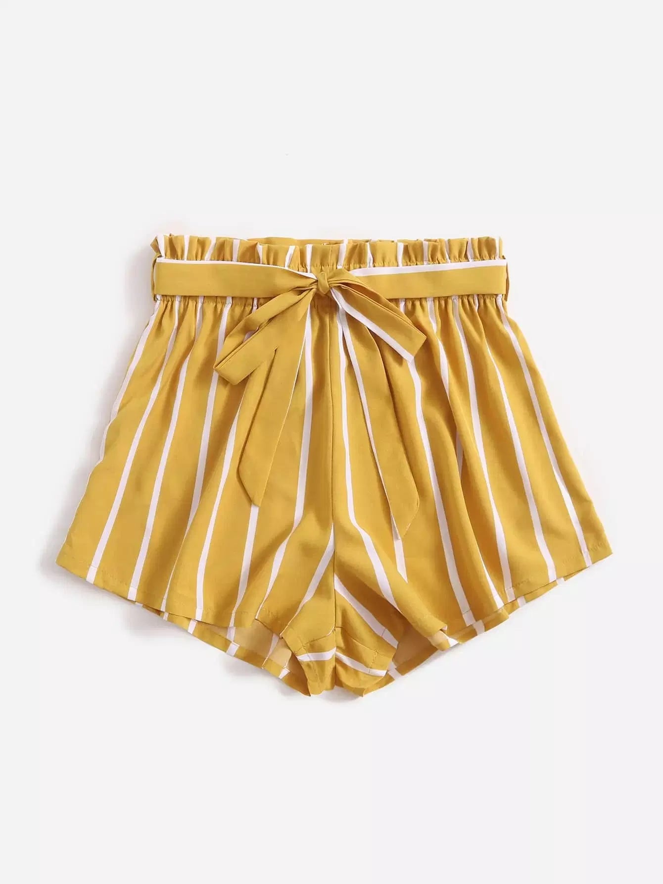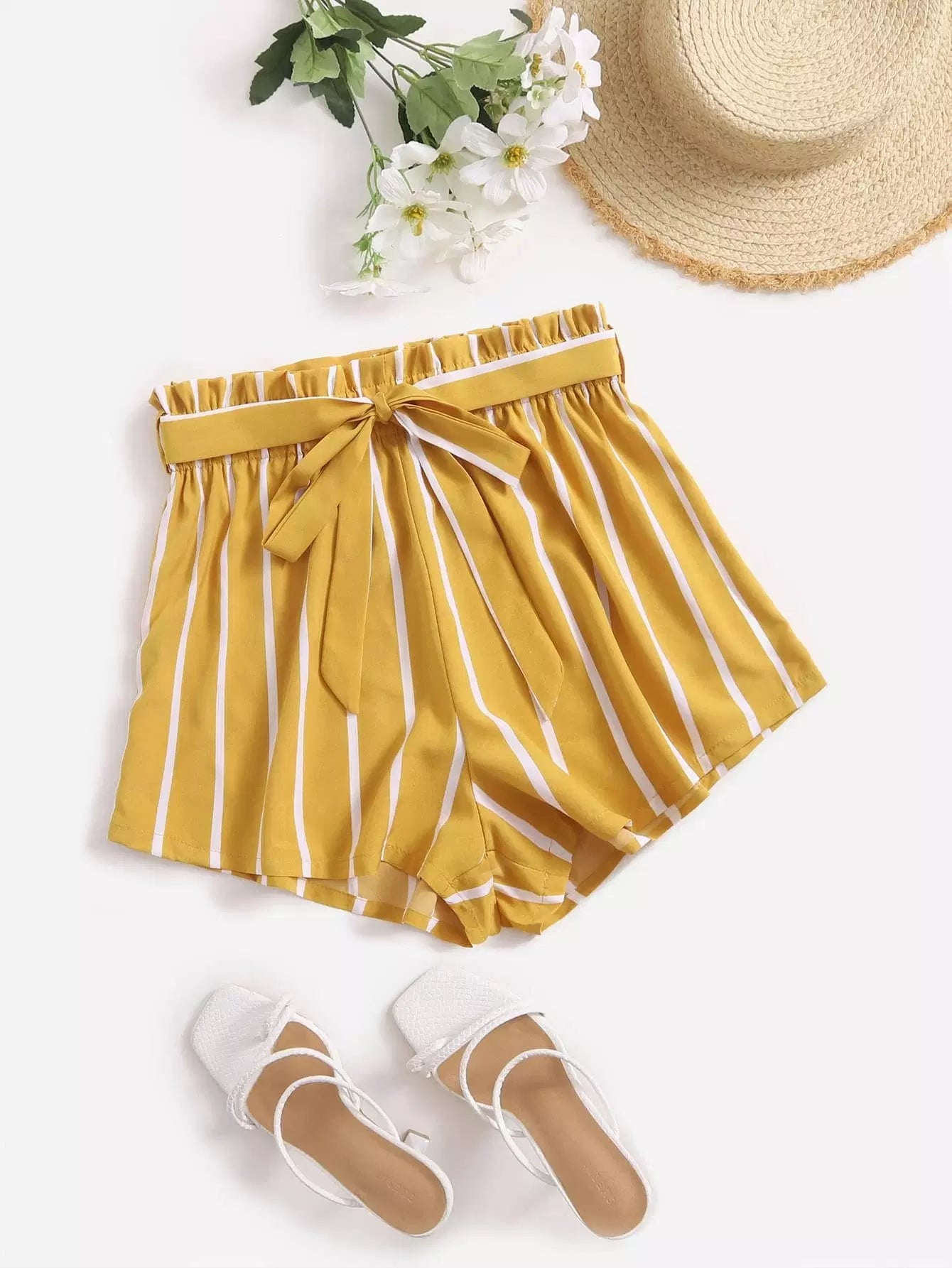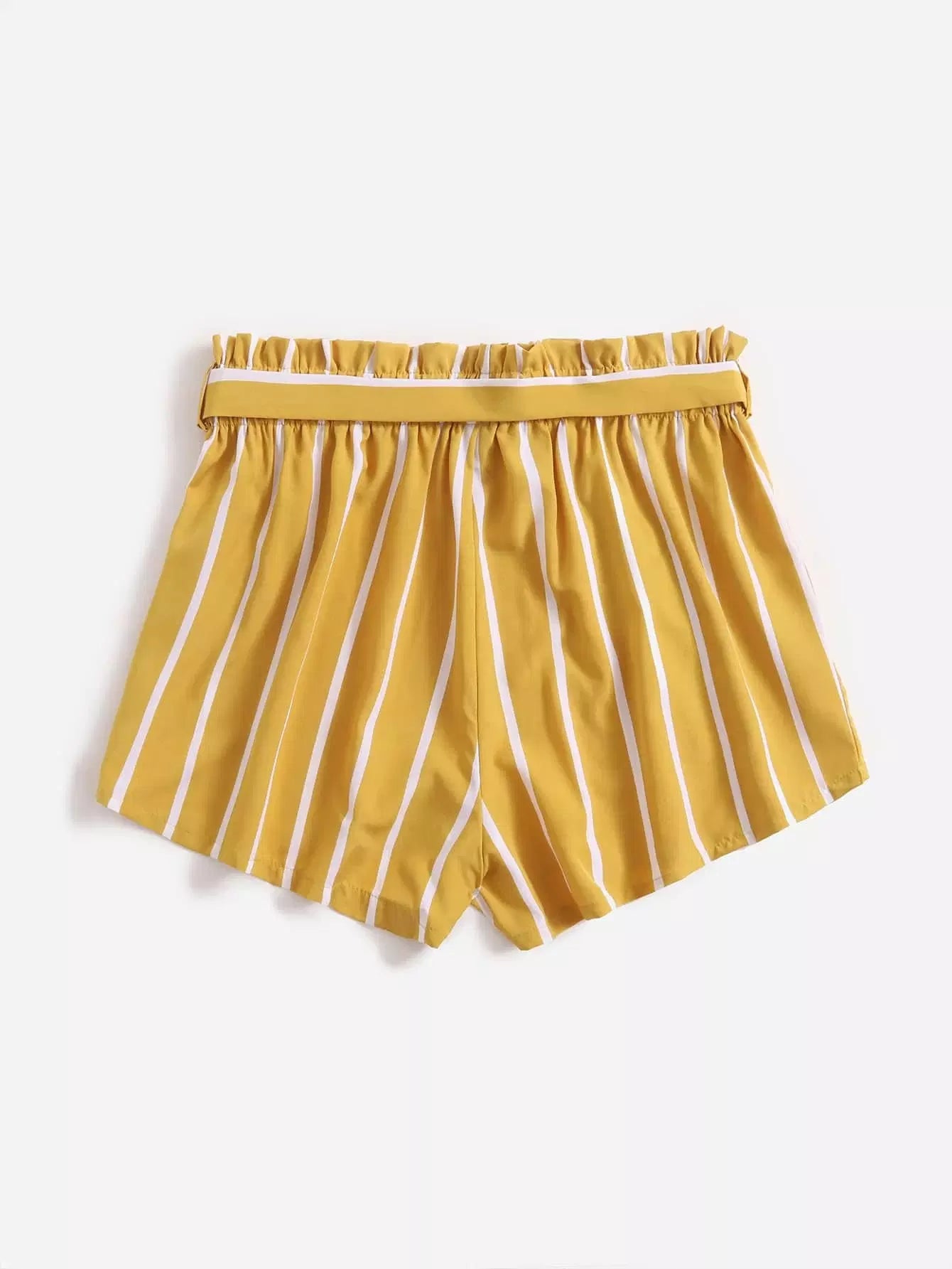 بالإضافة إلى شورت مخطط عمودي بدون حزام