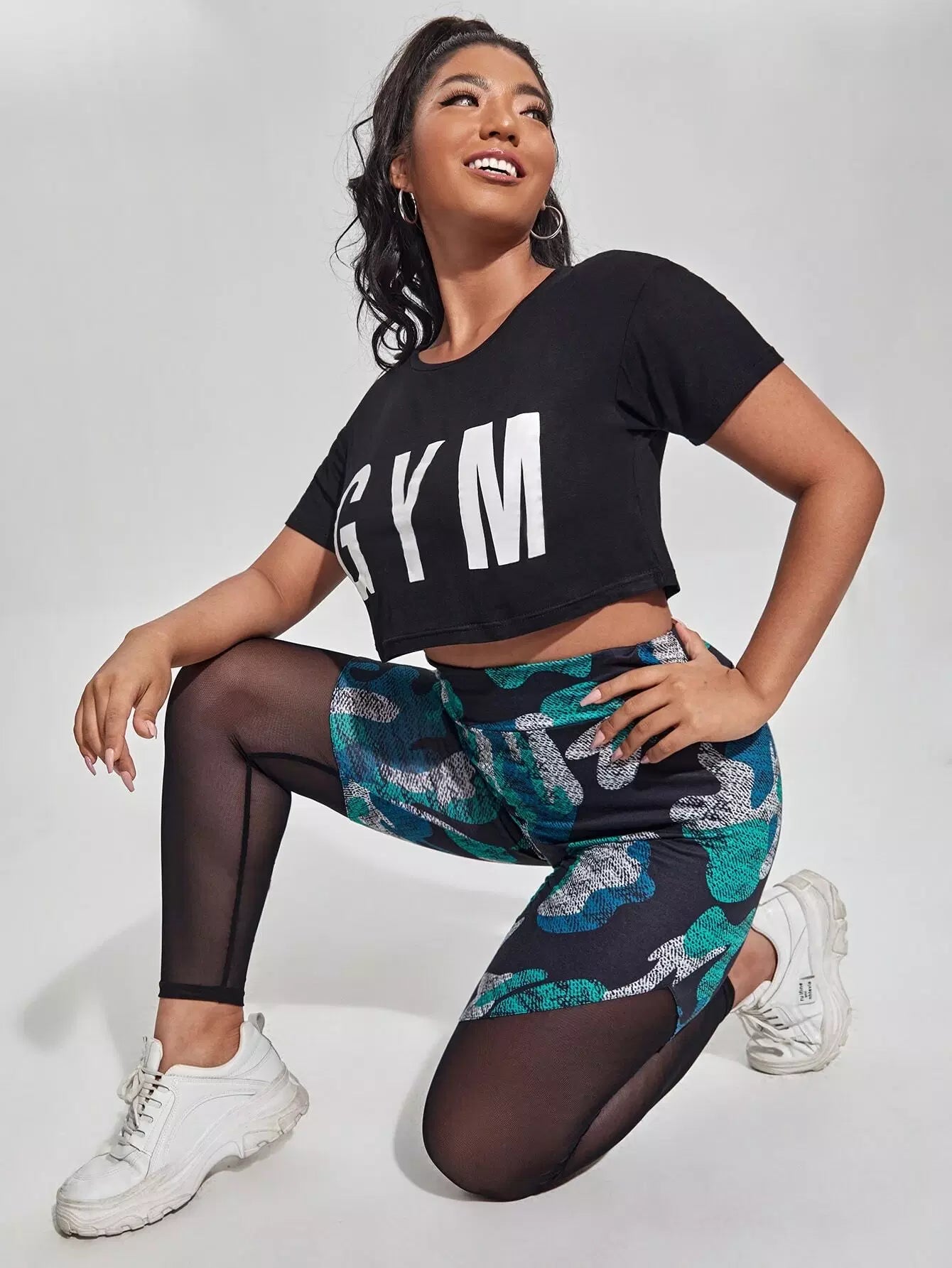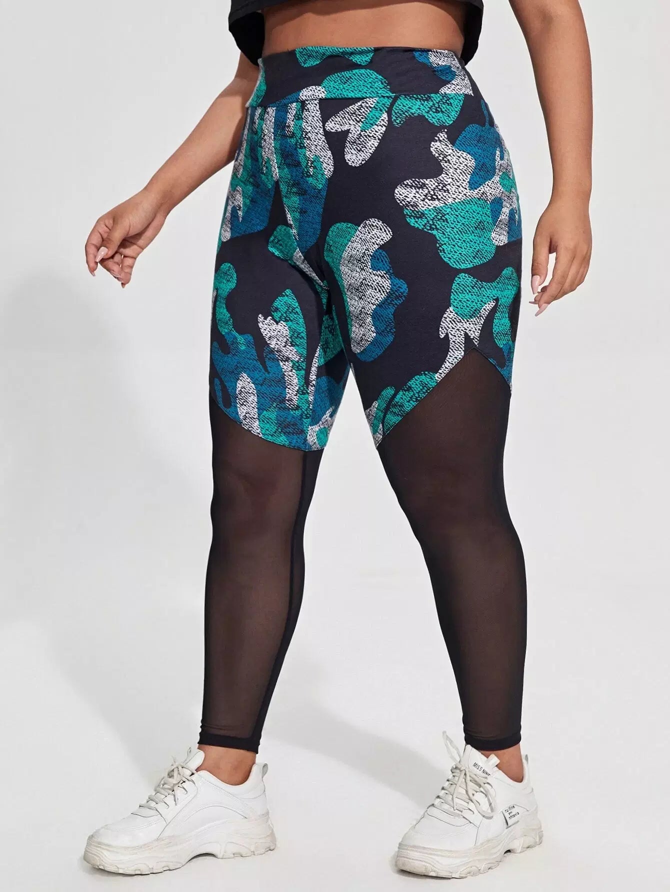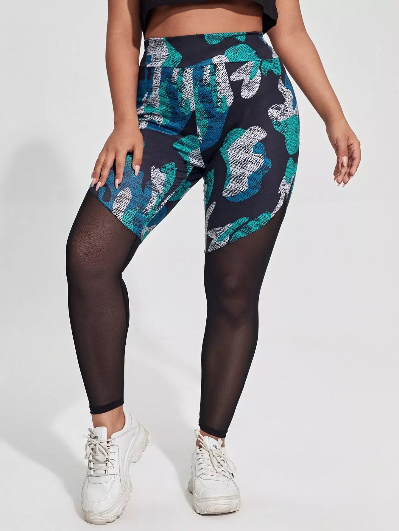 بنطلون ضيق بطبعة كامو مموّهة شفافة ذات نسيج شبكي شفاف