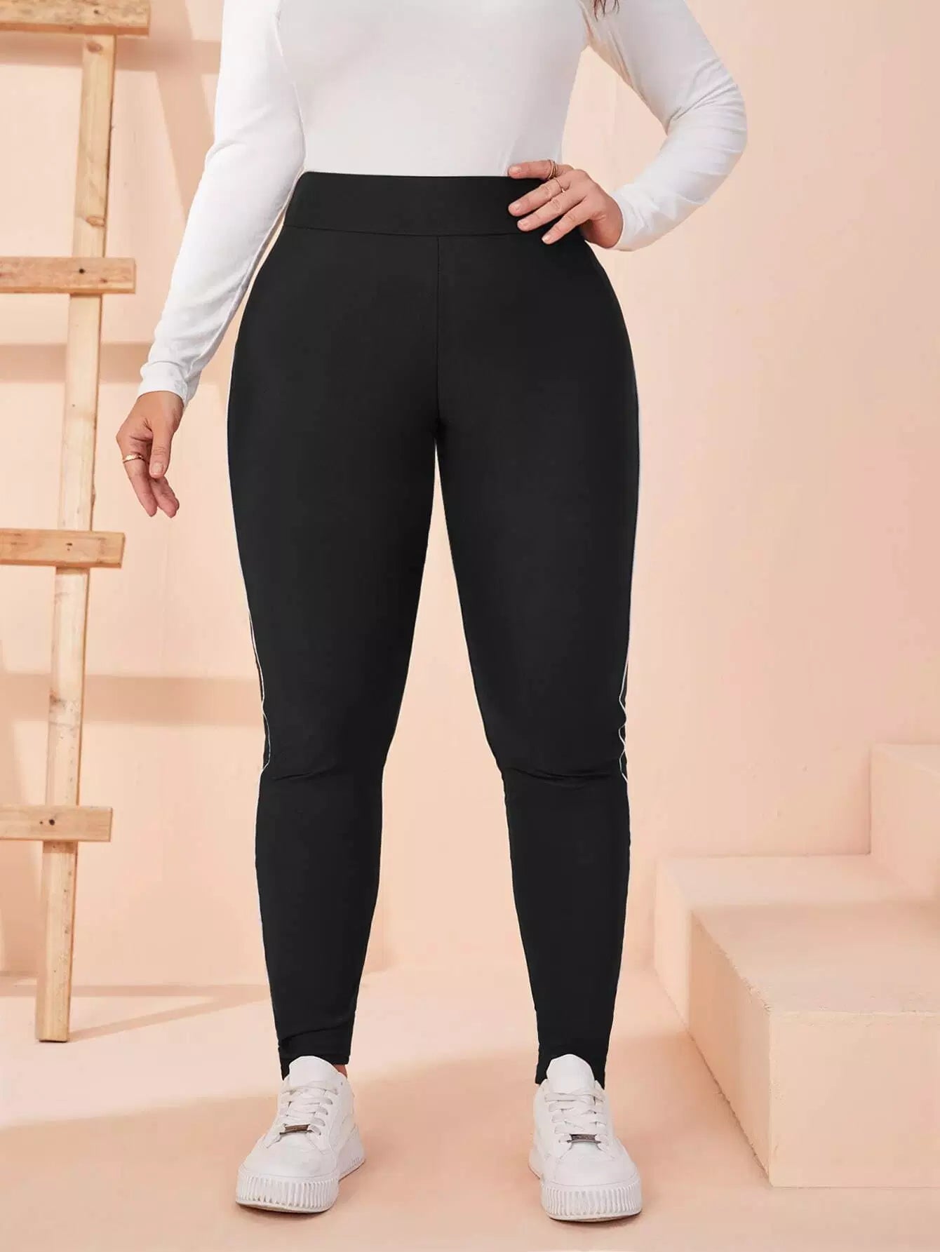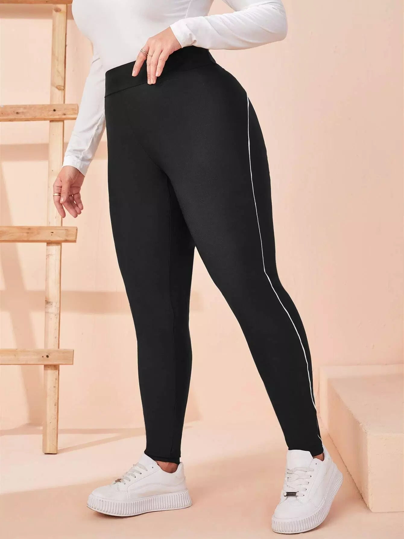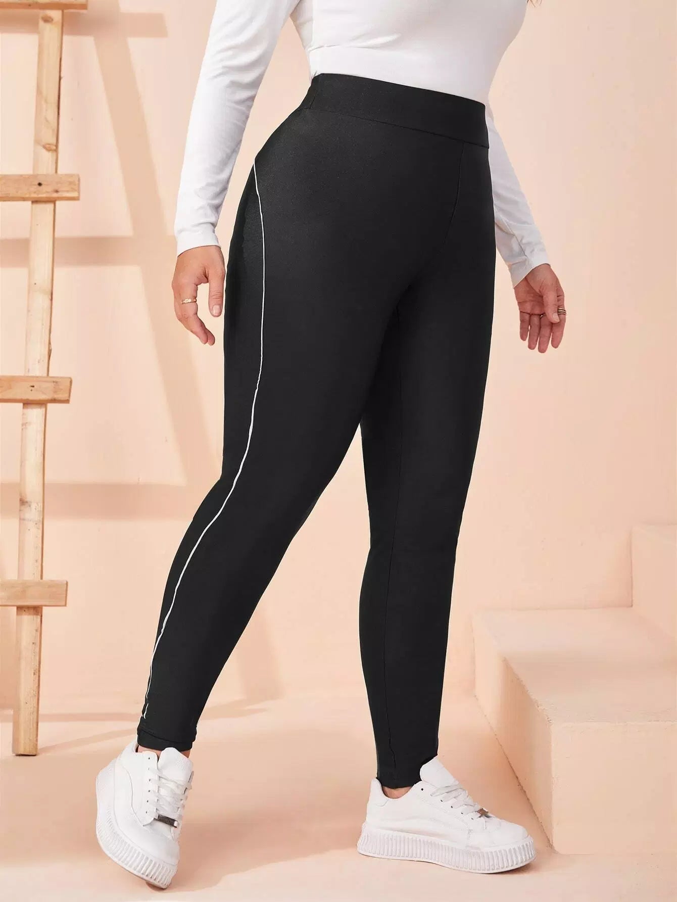 بنطال ضيق بخصر عالي الخصر بلون مغاير بلون مغاير