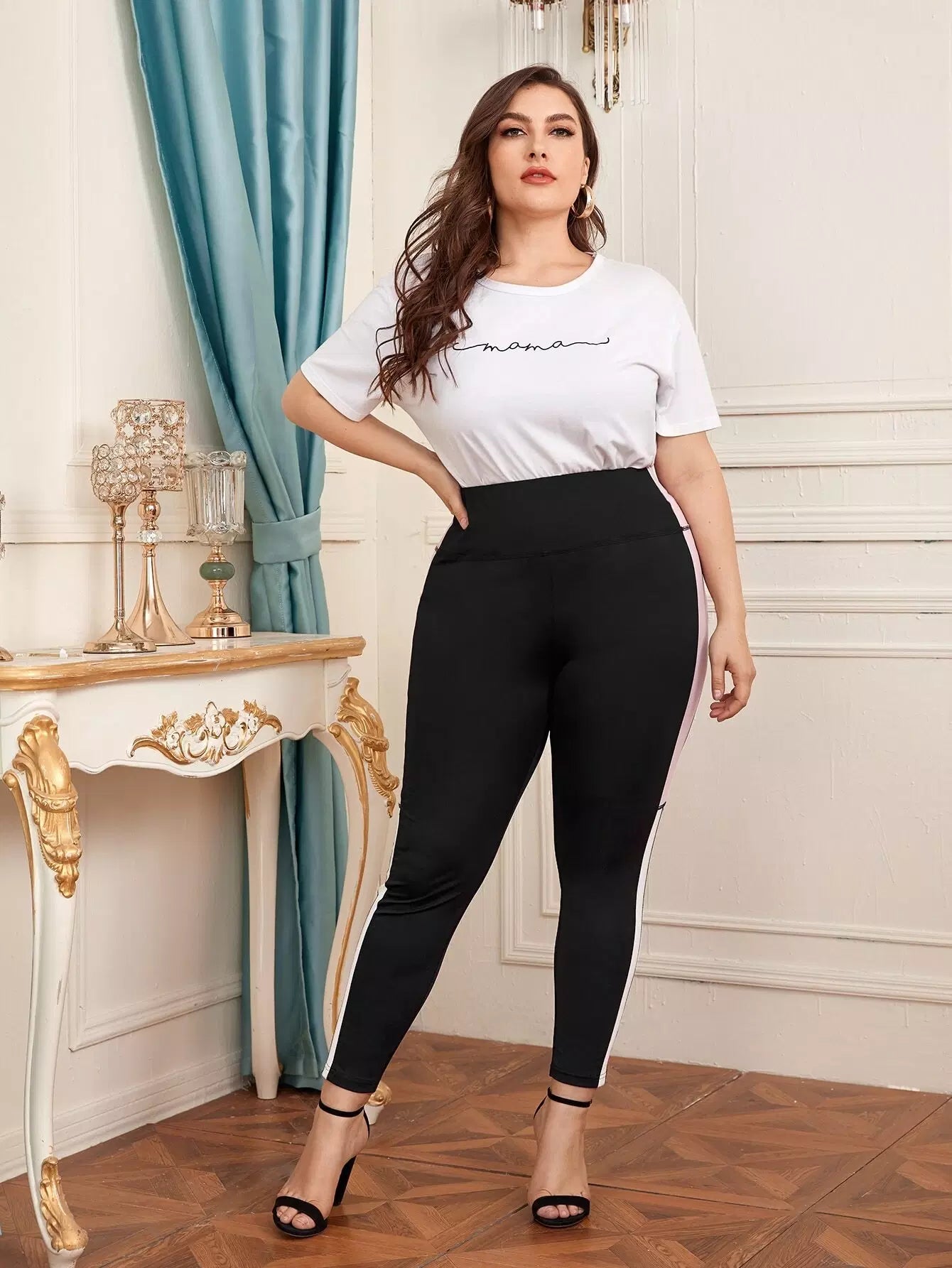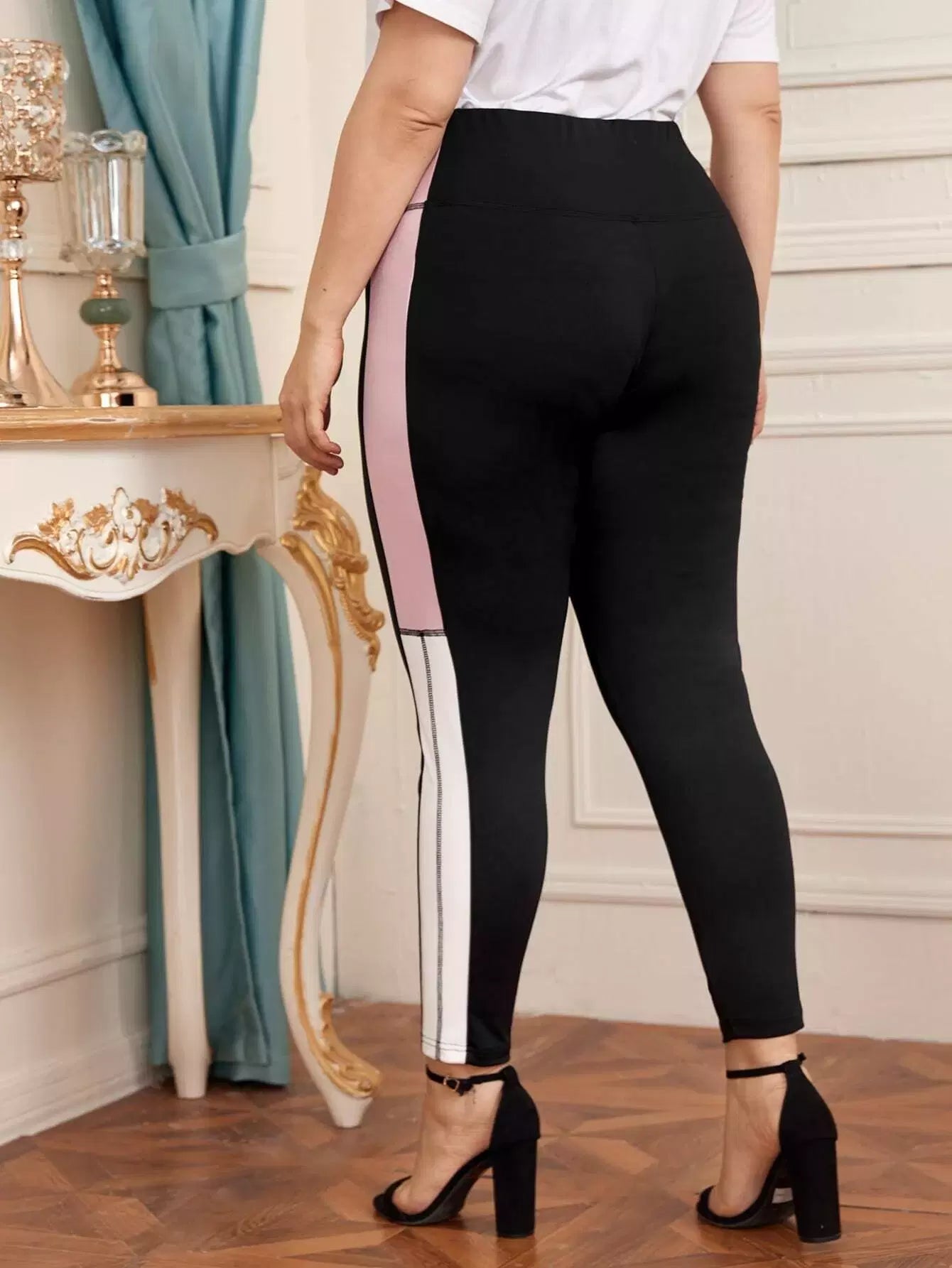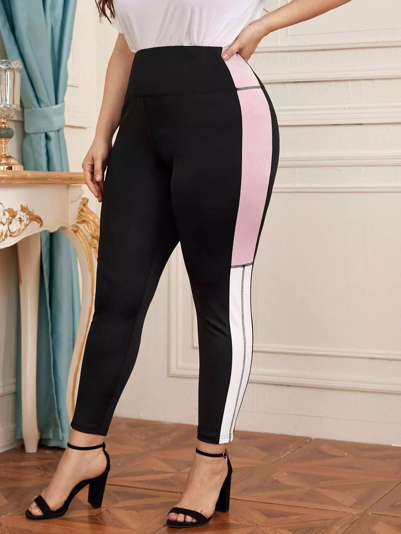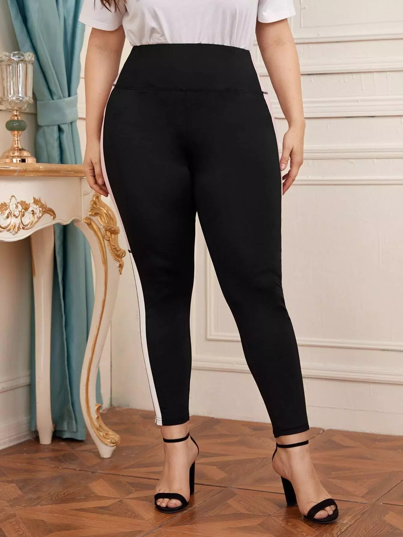 بنطلون ضيق بخطوط جانبية بلون مغاير بلون مغاير