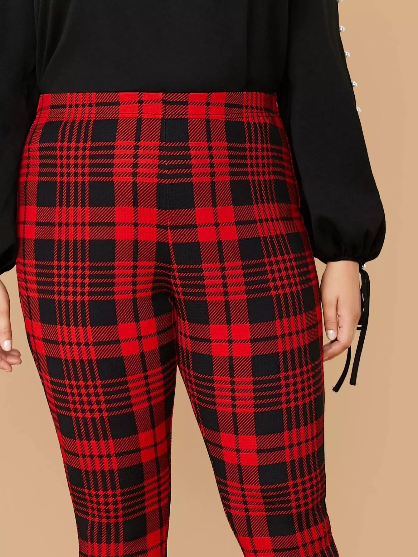 بنطال ضيق منقوش منقوش بخصر مطاطي بلايزر