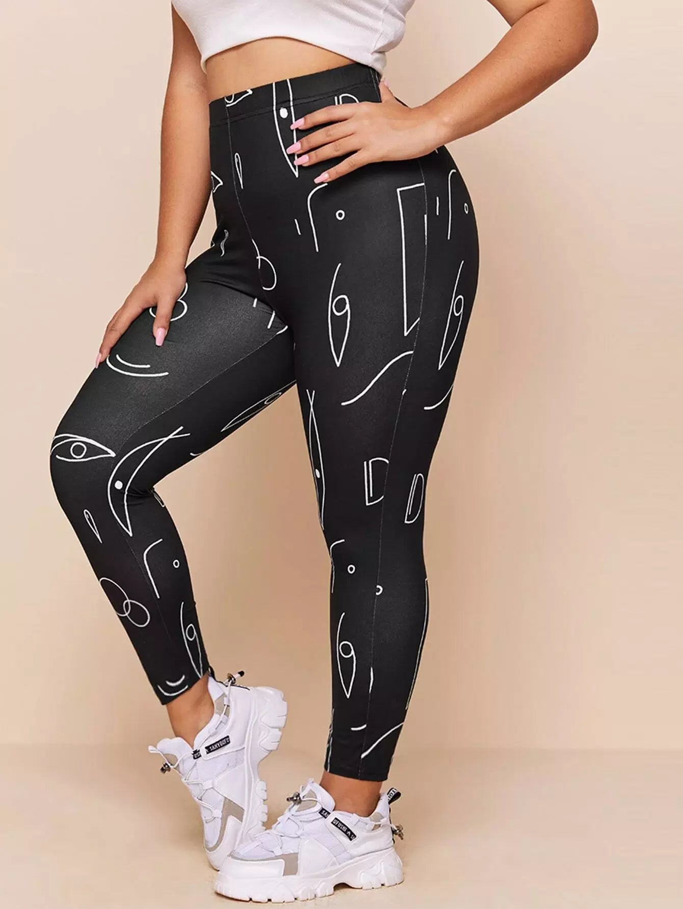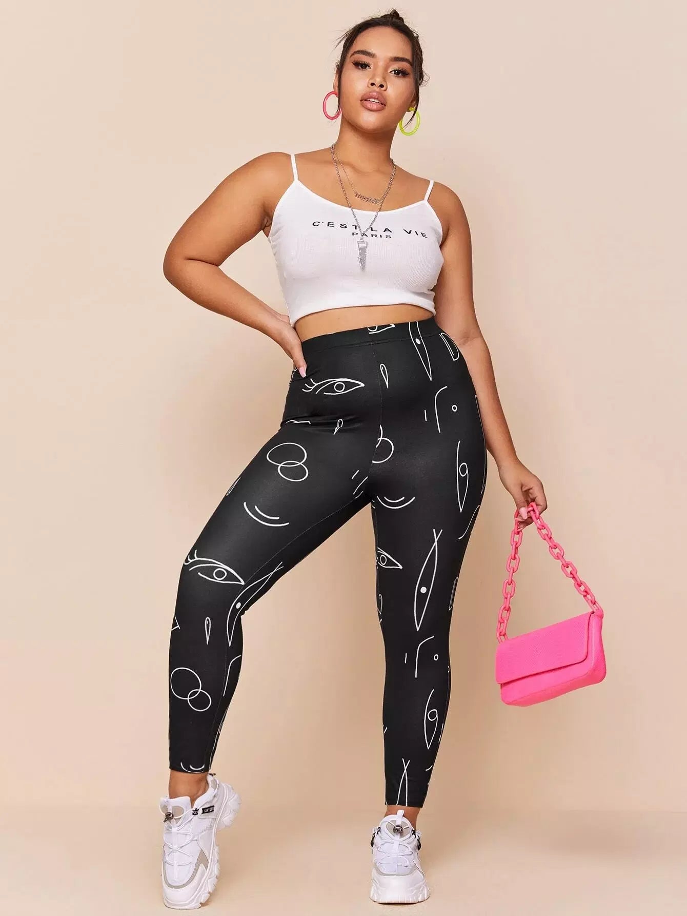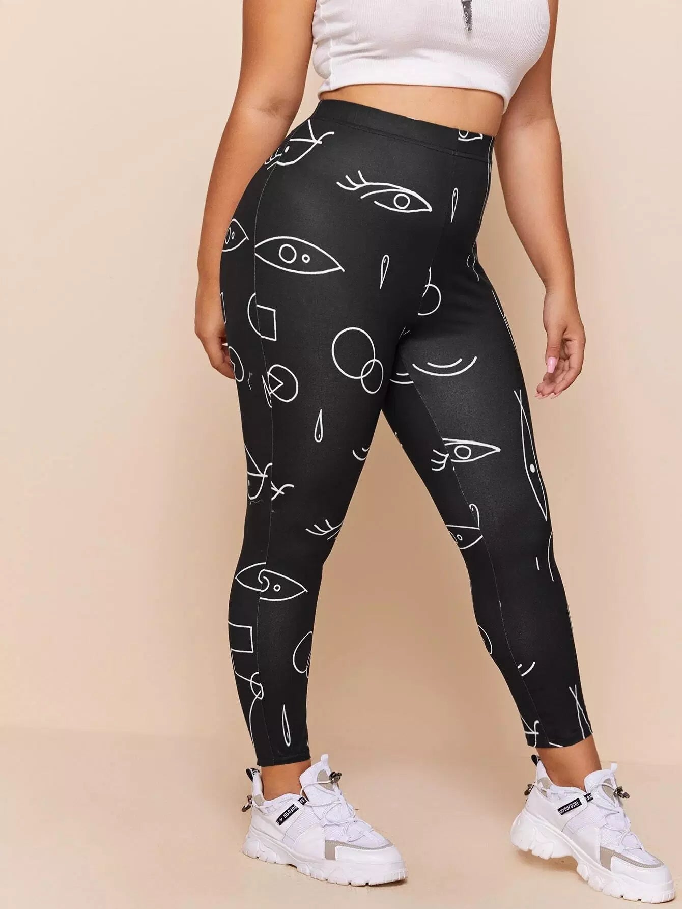 ليقنز بطبعة جرافيك عالية الخصر زائد