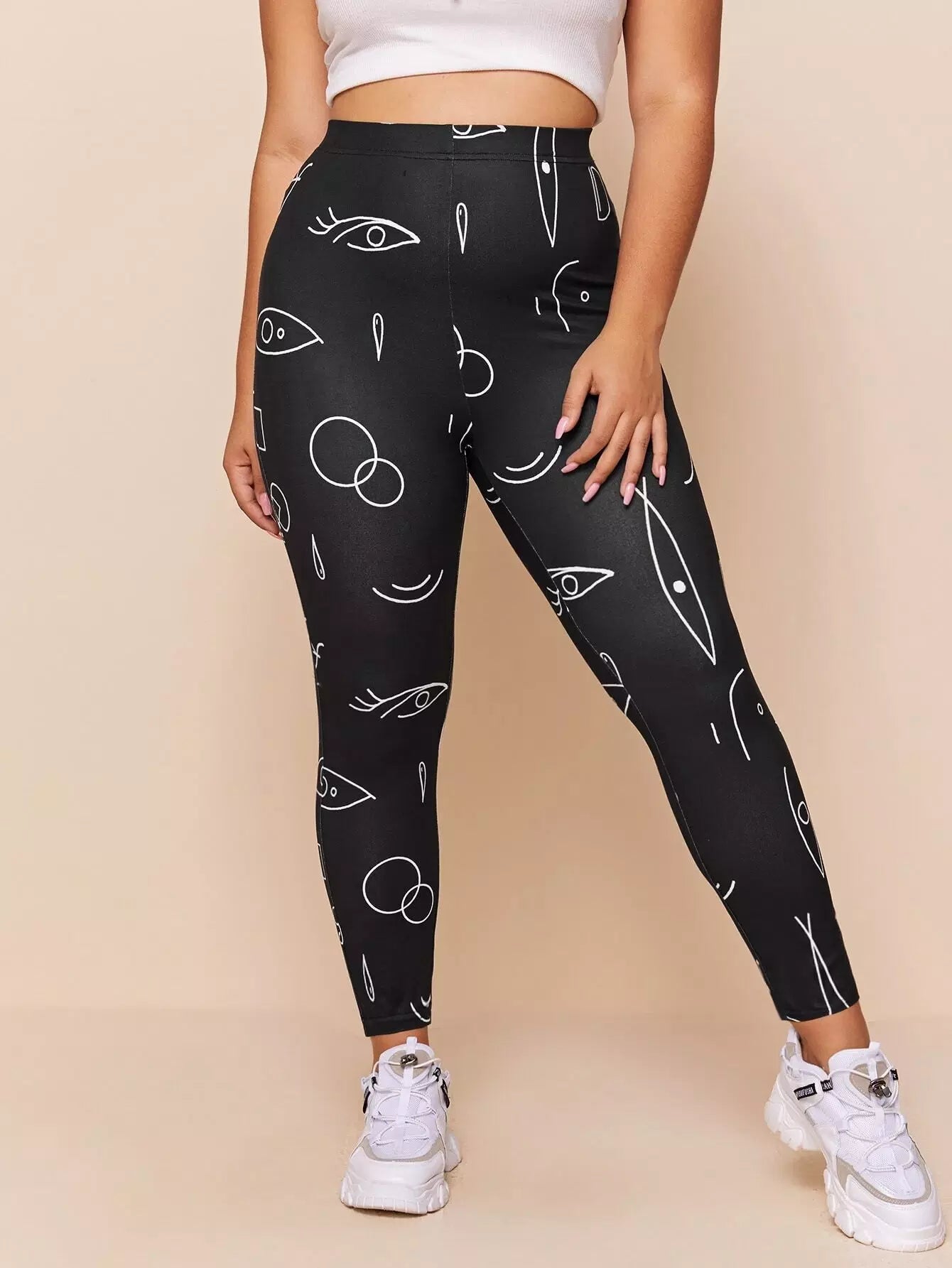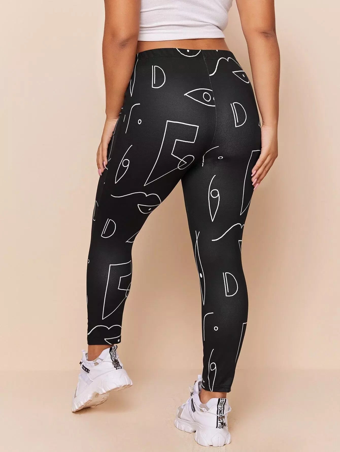 نحيف - مقاس كبير طباعة جرافيك طماق عالية الخصر