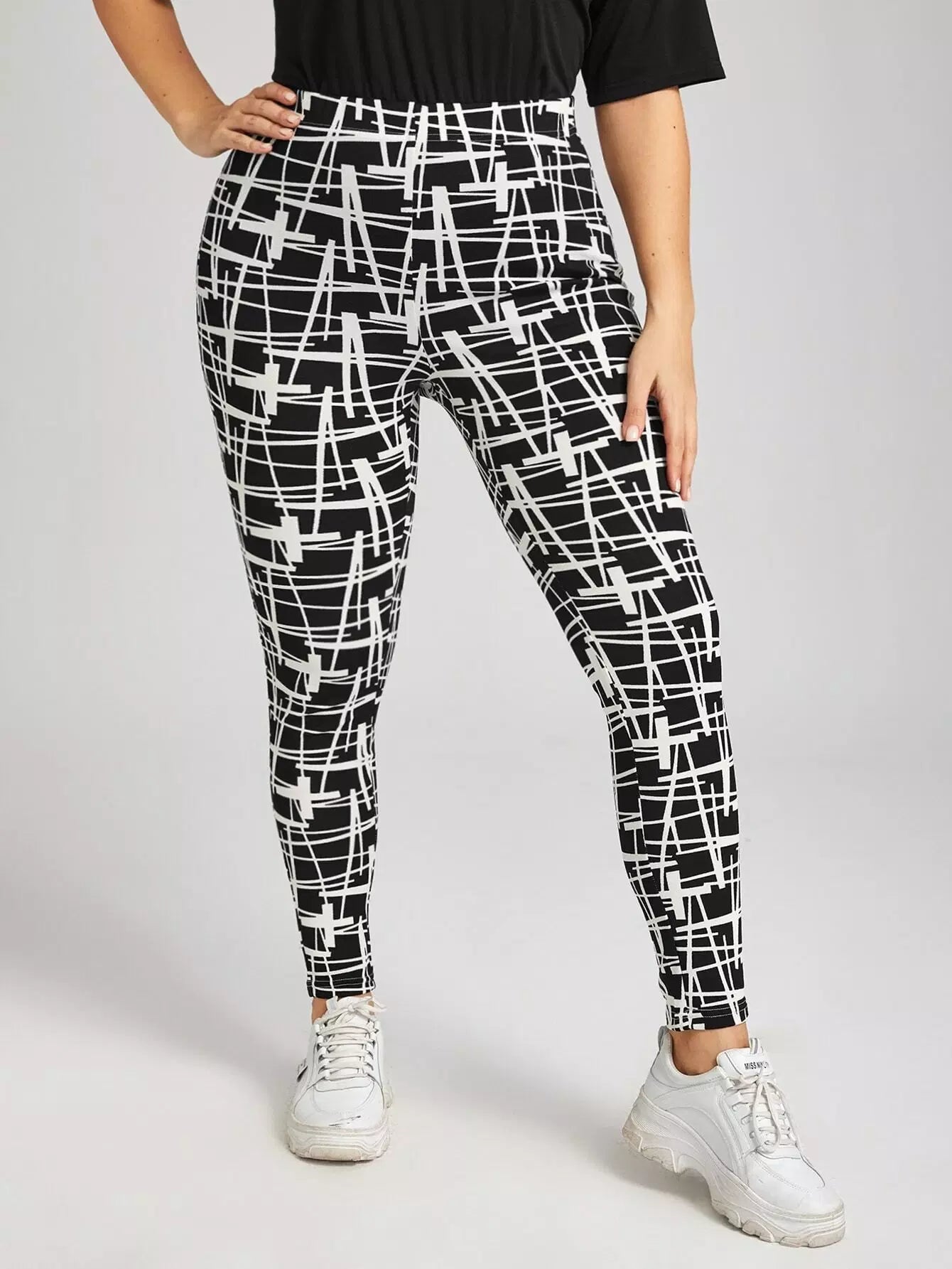 بنطلون ضيق عالي الخصر بطبعة جرافيك بلس